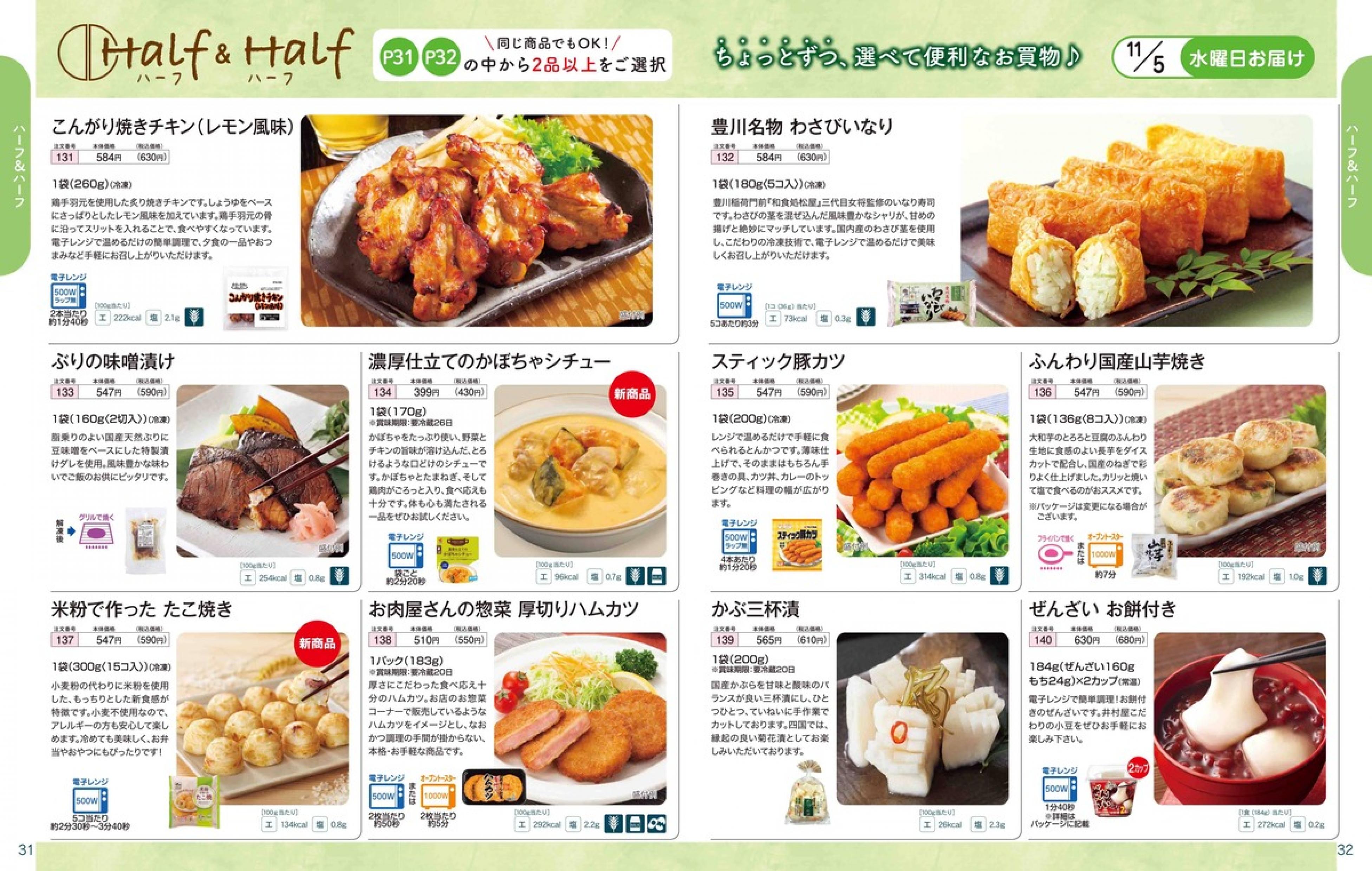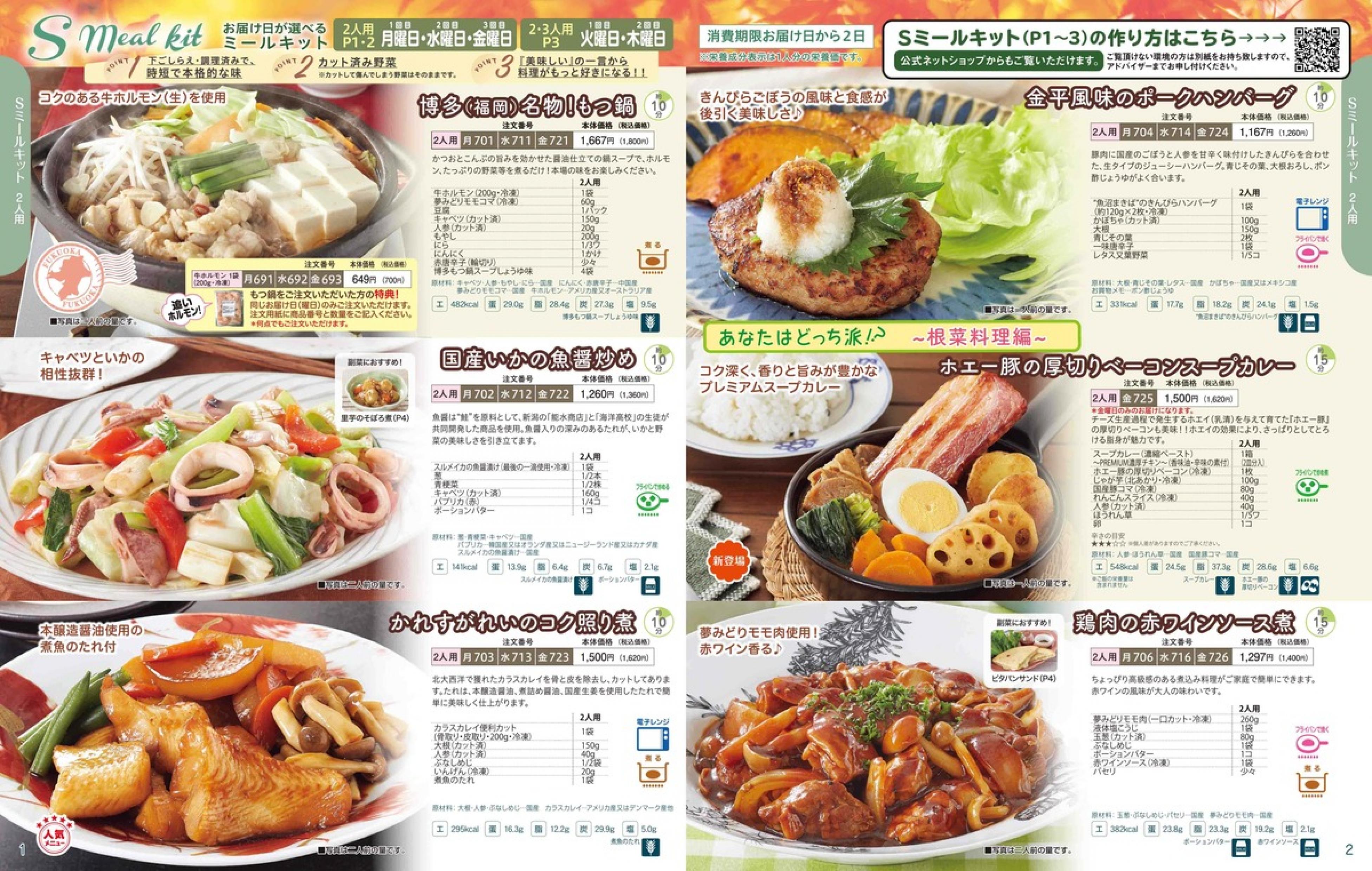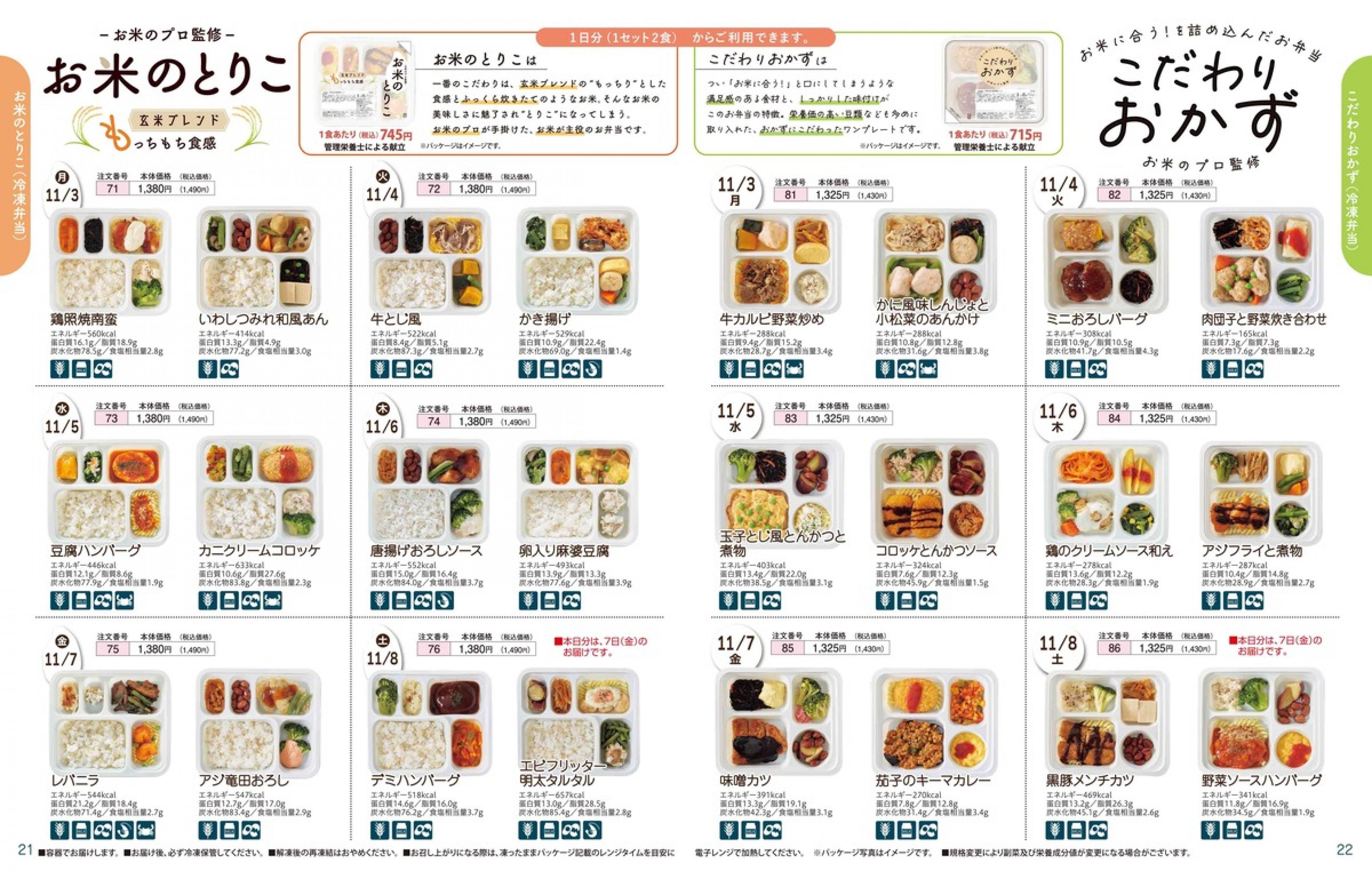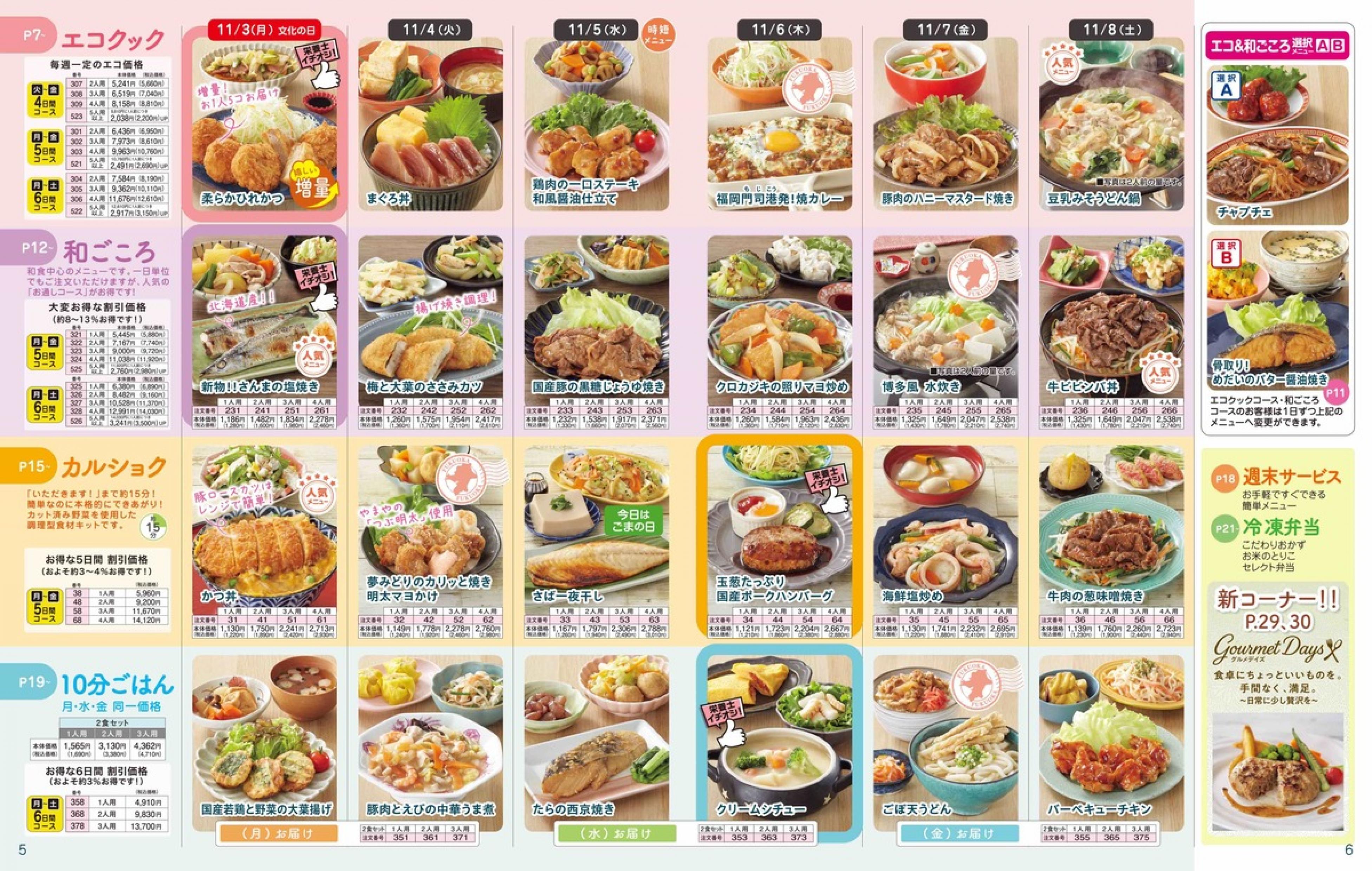 ▶2025年11月3日週 <10/29(水)締切> トップページカタログメニュー▶2025年11月3日週 <10/29(水)締切> 全商品一覧 Sミールキット 副菜プラス SpeeDish エコクック エコクック特典 選択メニュー特典 和ごころ カルショク 週末サービス 10分ごはん 冷凍弁当 栄養コントロールお弁当 生活応援 パン・乳製品・お米・調味料 リクエスト グルメデイズ HALF&HALF 特集 美味しいもん特集 雑貨 カタログ一覧へ戻る