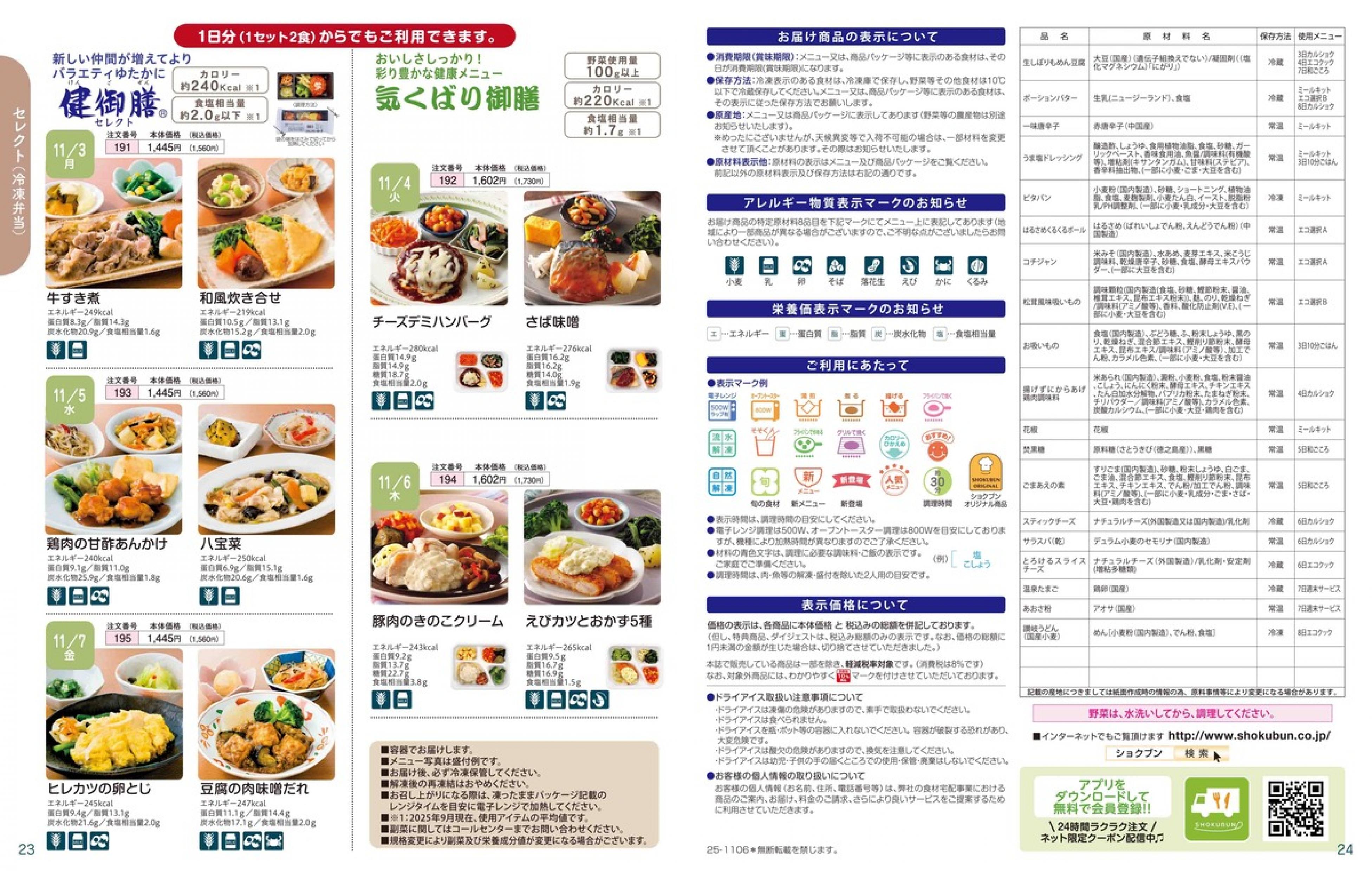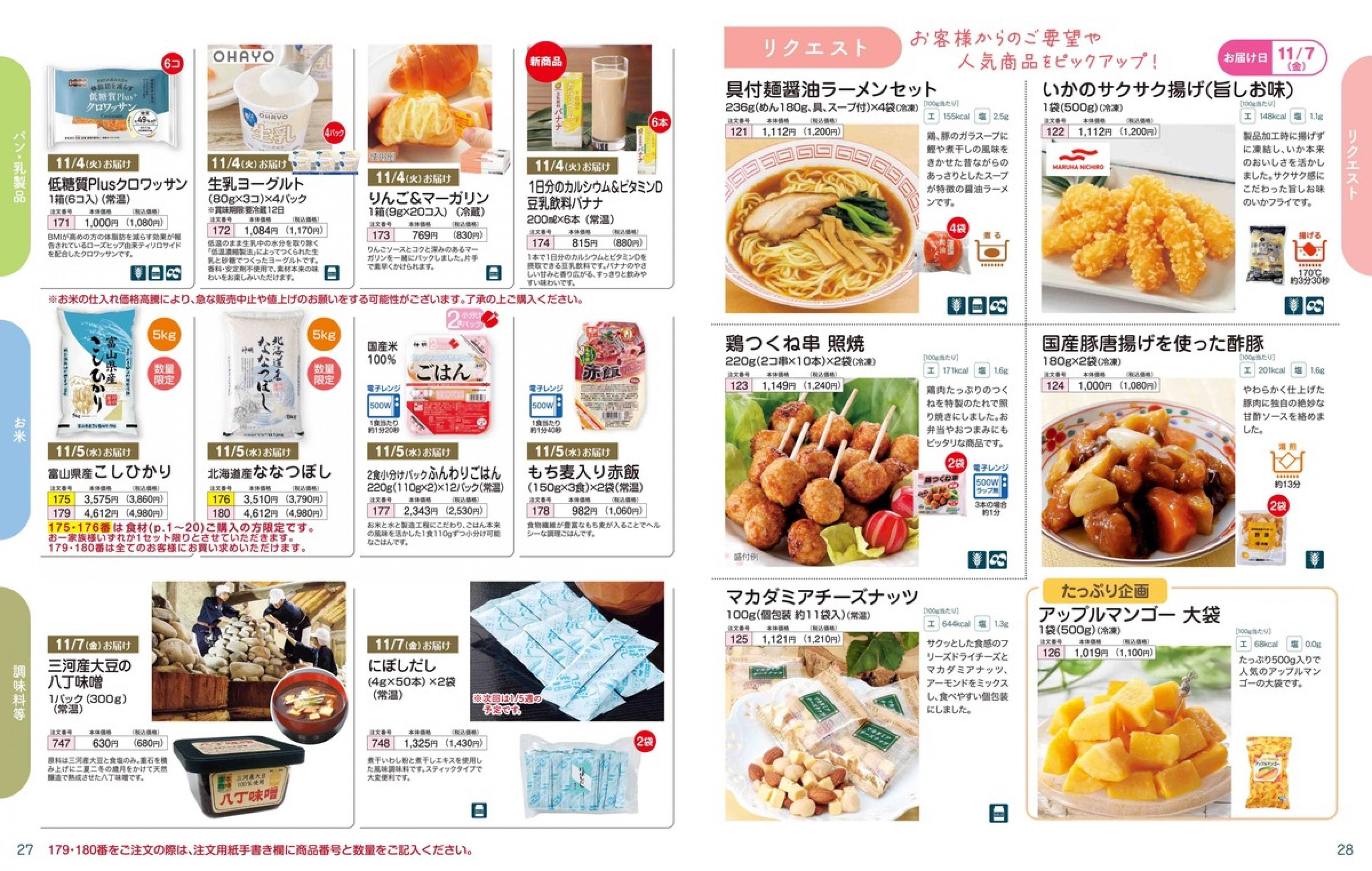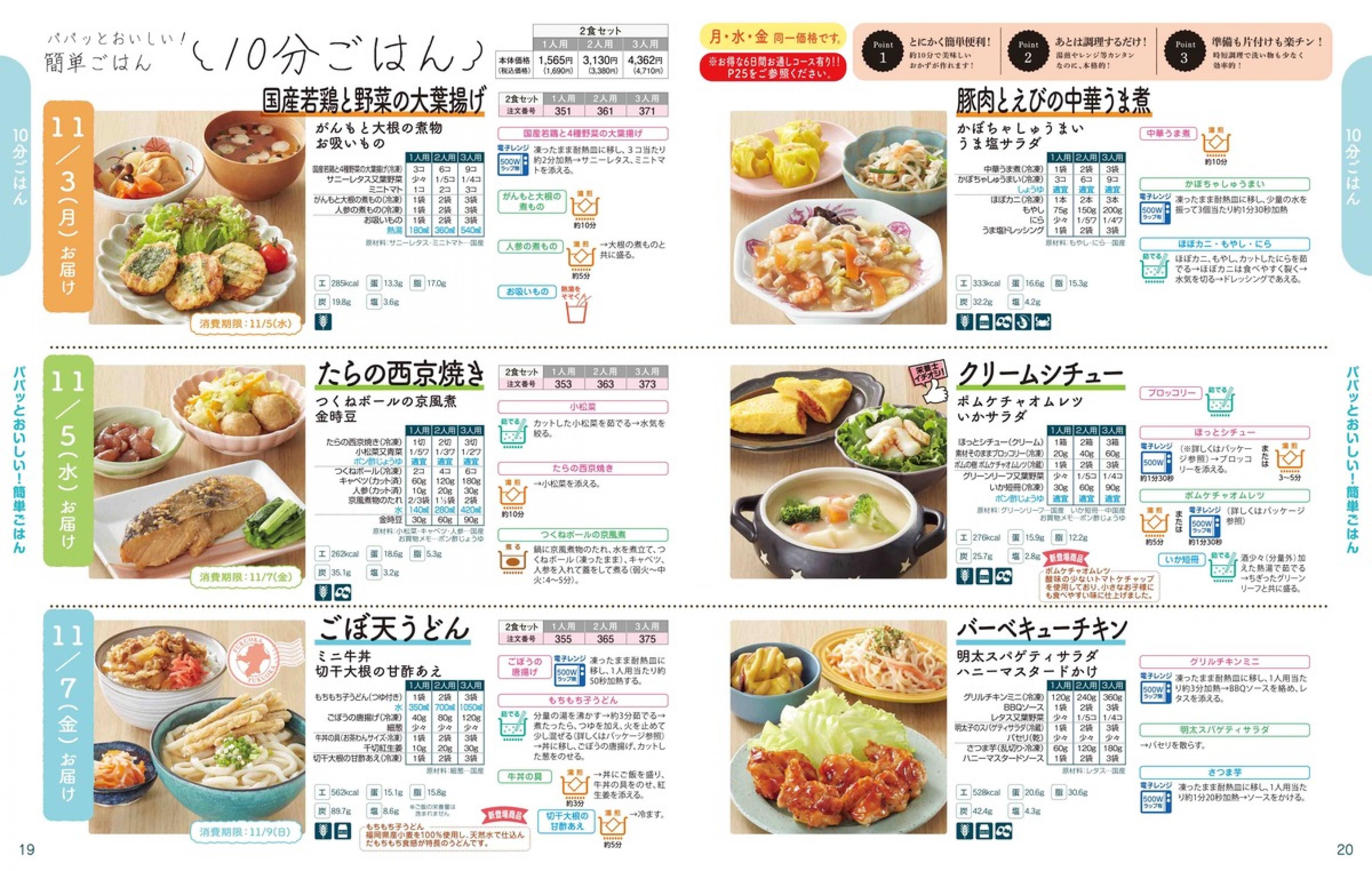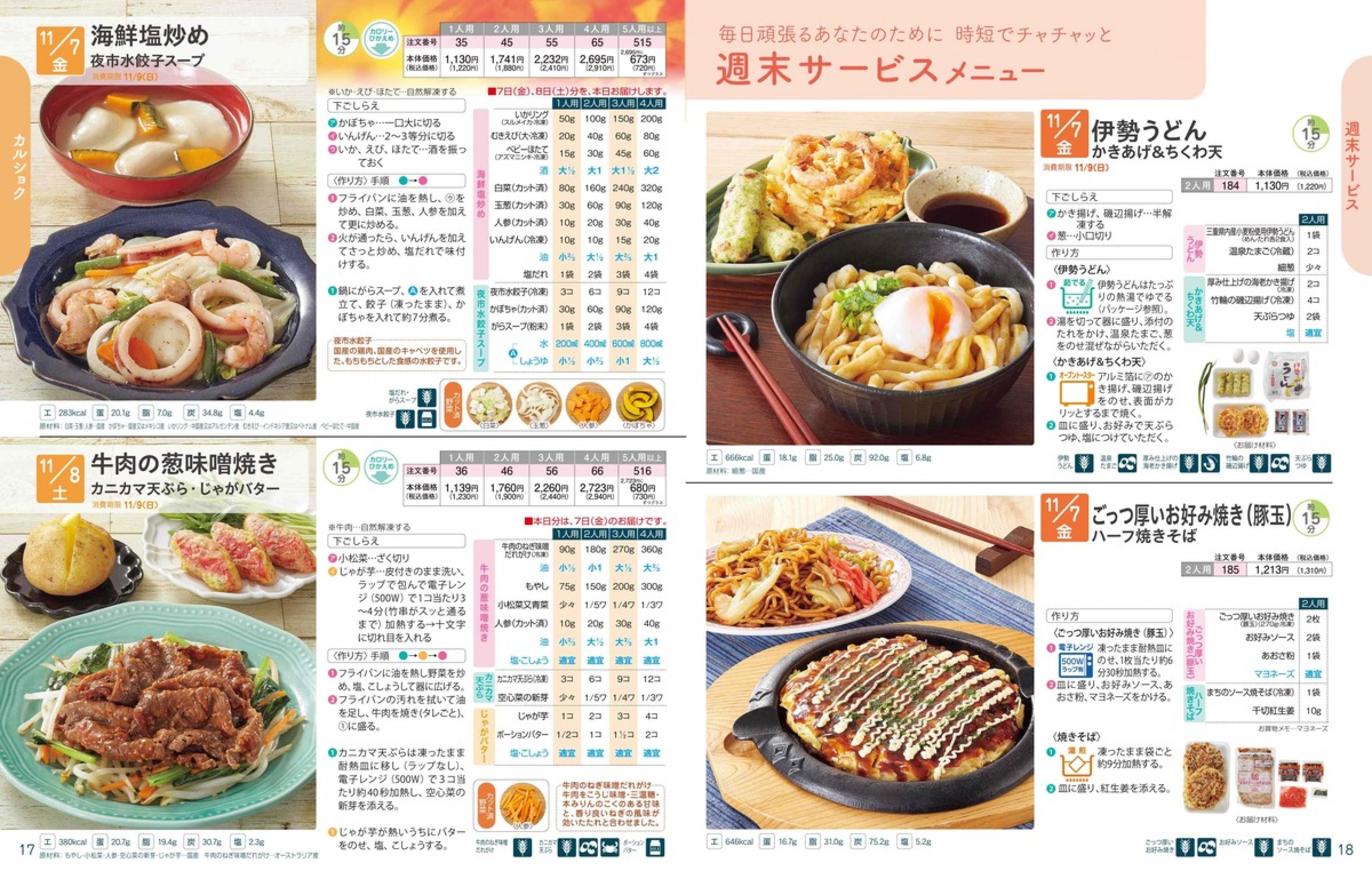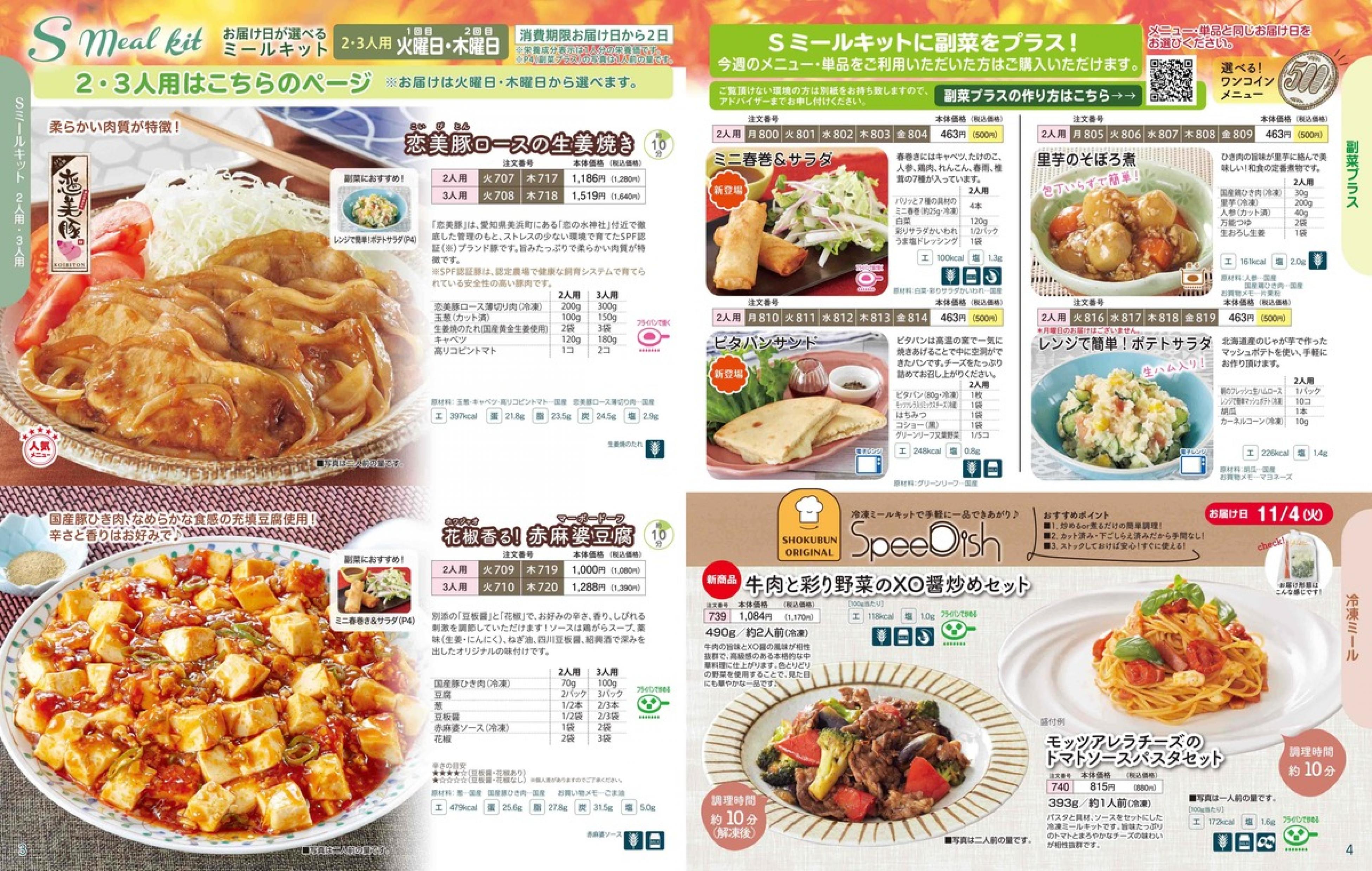 ▶2025年11月3日週 <10/29(水)締切> トップページカタログメニュー▶2025年11月3日週 <10/29(水)締切> 全商品一覧 Sミールキット 副菜プラス SpeeDish エコクック エコクック特典 選択メニュー特典 和ごころ カルショク 週末サービス 10分ごはん 冷凍弁当 栄養コントロールお弁当 生活応援 パン・乳製品・お米・調味料 リクエスト グルメデイズ HALF&HALF 特集 美味しいもん特集 雑貨 カタログ一覧へ戻る