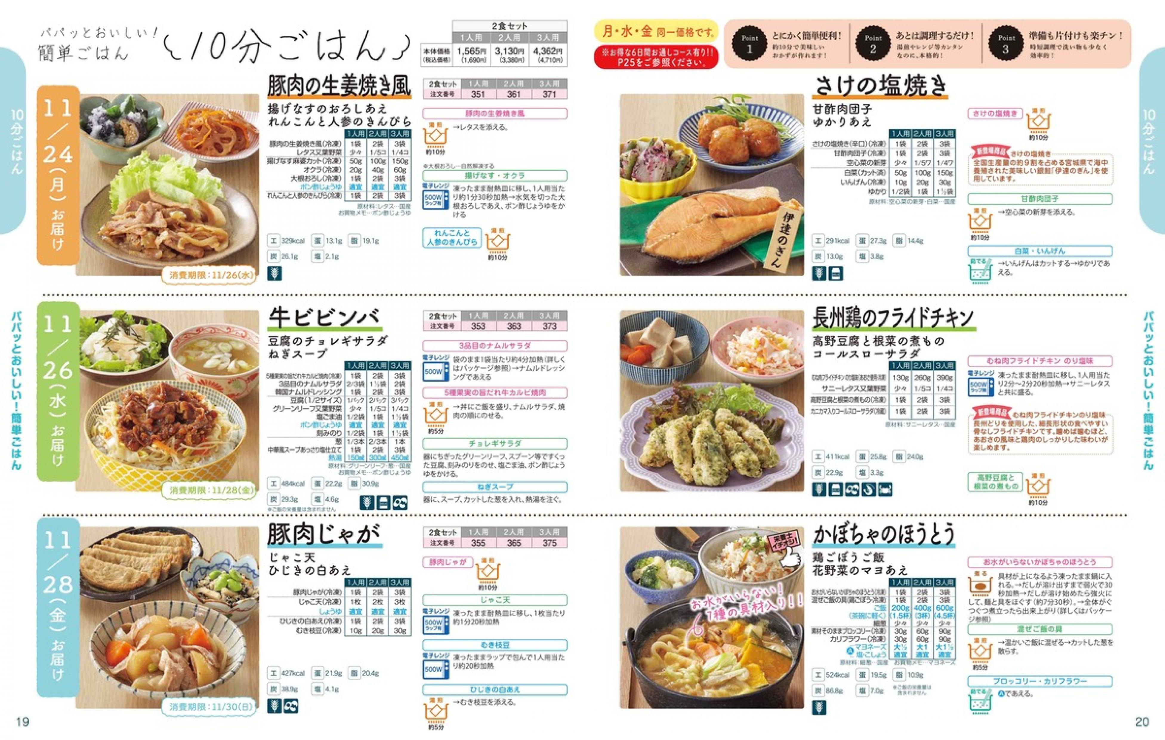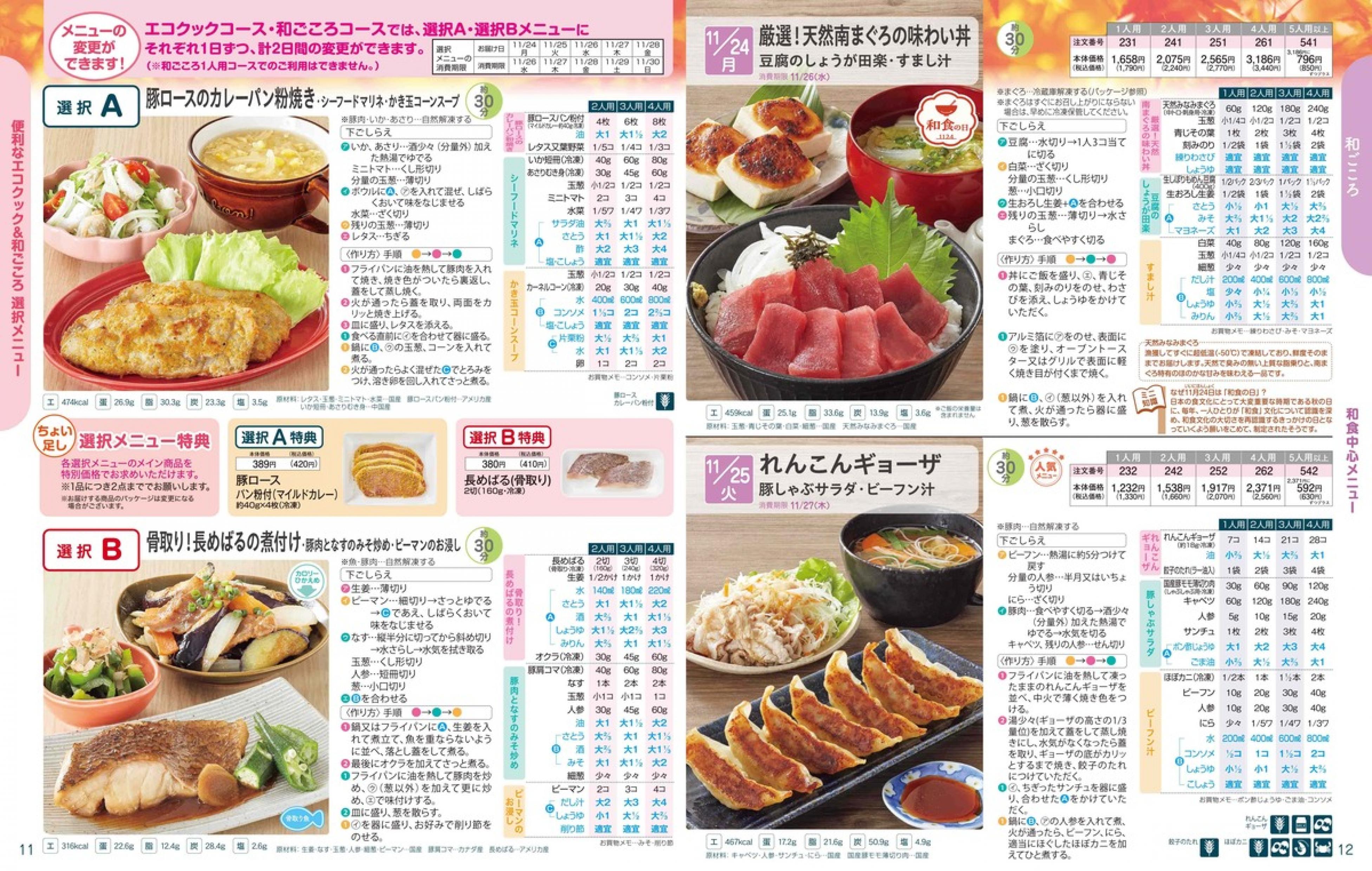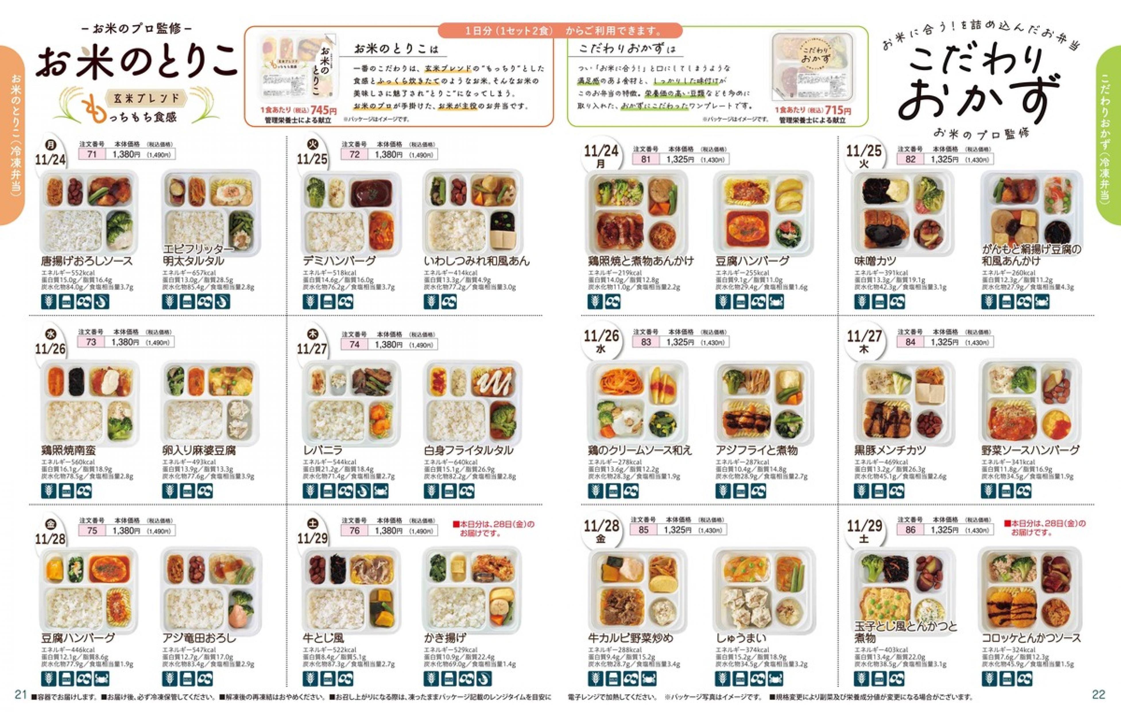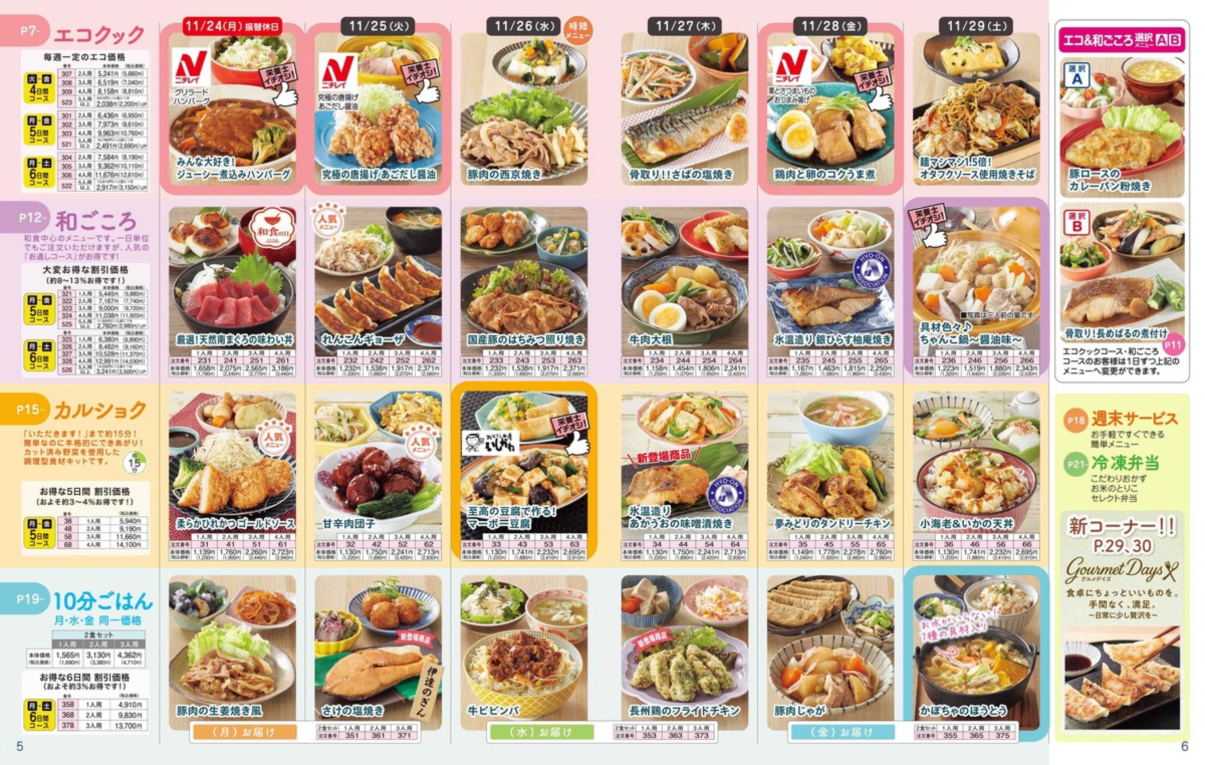 ▶2025年11月24日週 <11/19(水)締切> トップページカタログメニュー▶2025年11月24日週 <11/19(水)締切> 全商品一覧 Sミールキット 副菜プラス SpeeDish エコクック エコクック特典 選択メニュー特典 和ごころ カルショク 週末サービス 10分ごはん 冷凍弁当 栄養コントロールお弁当 生活応援 パン・乳製品・お米・調味料 リクエスト グルメデイズ HALF&HALF 特集 美味しいもん特集 カタログ一覧へ戻る