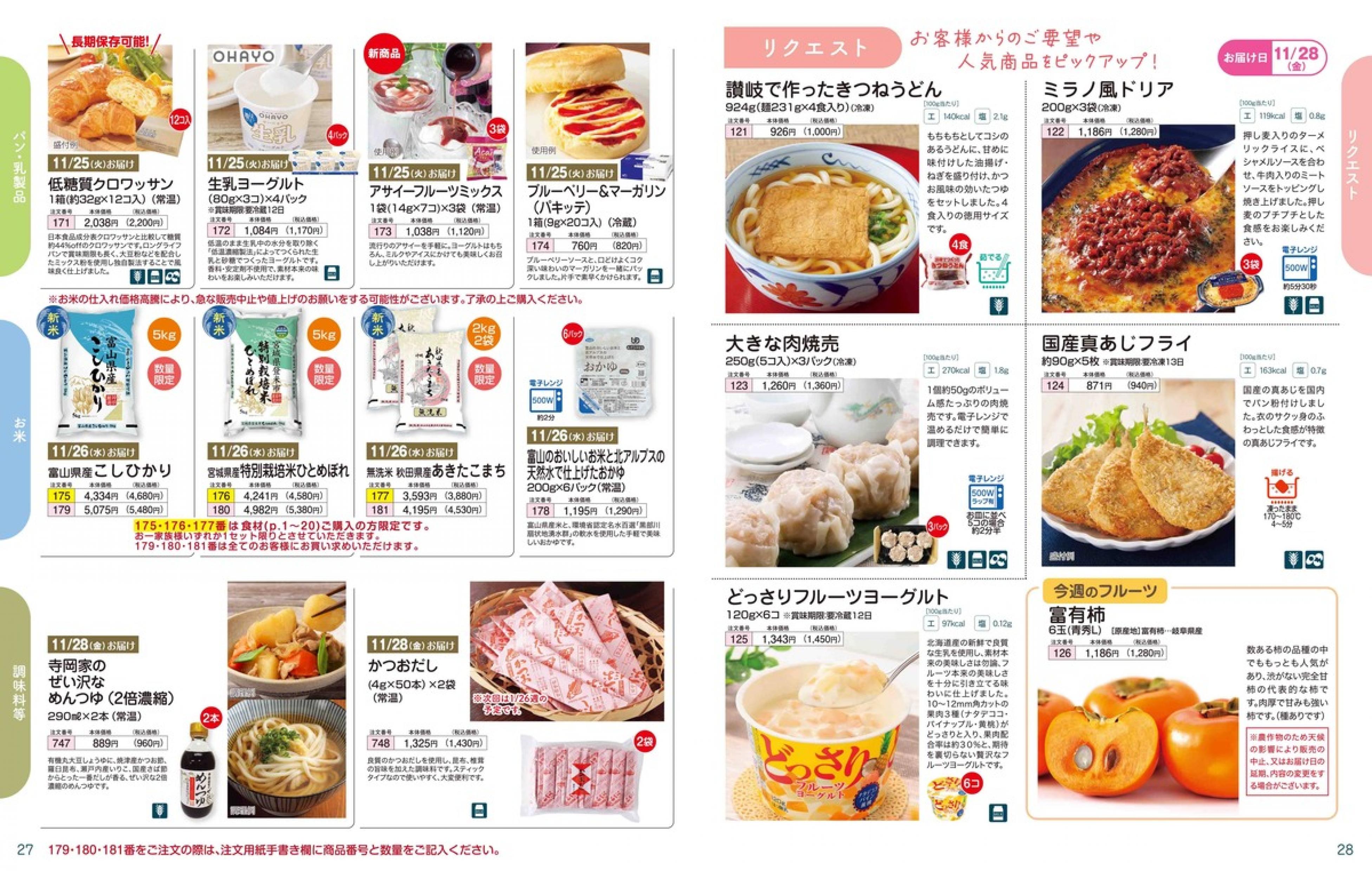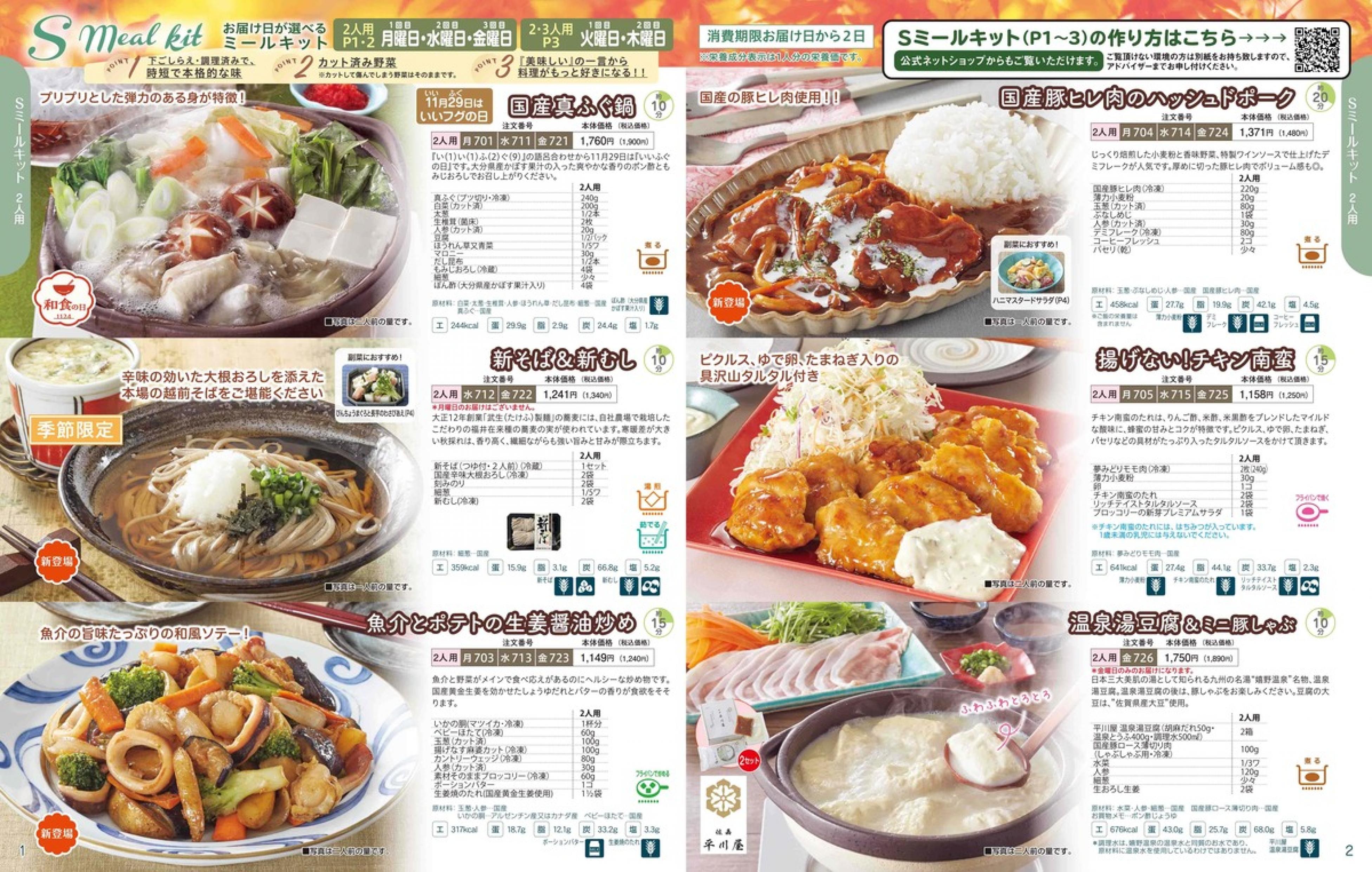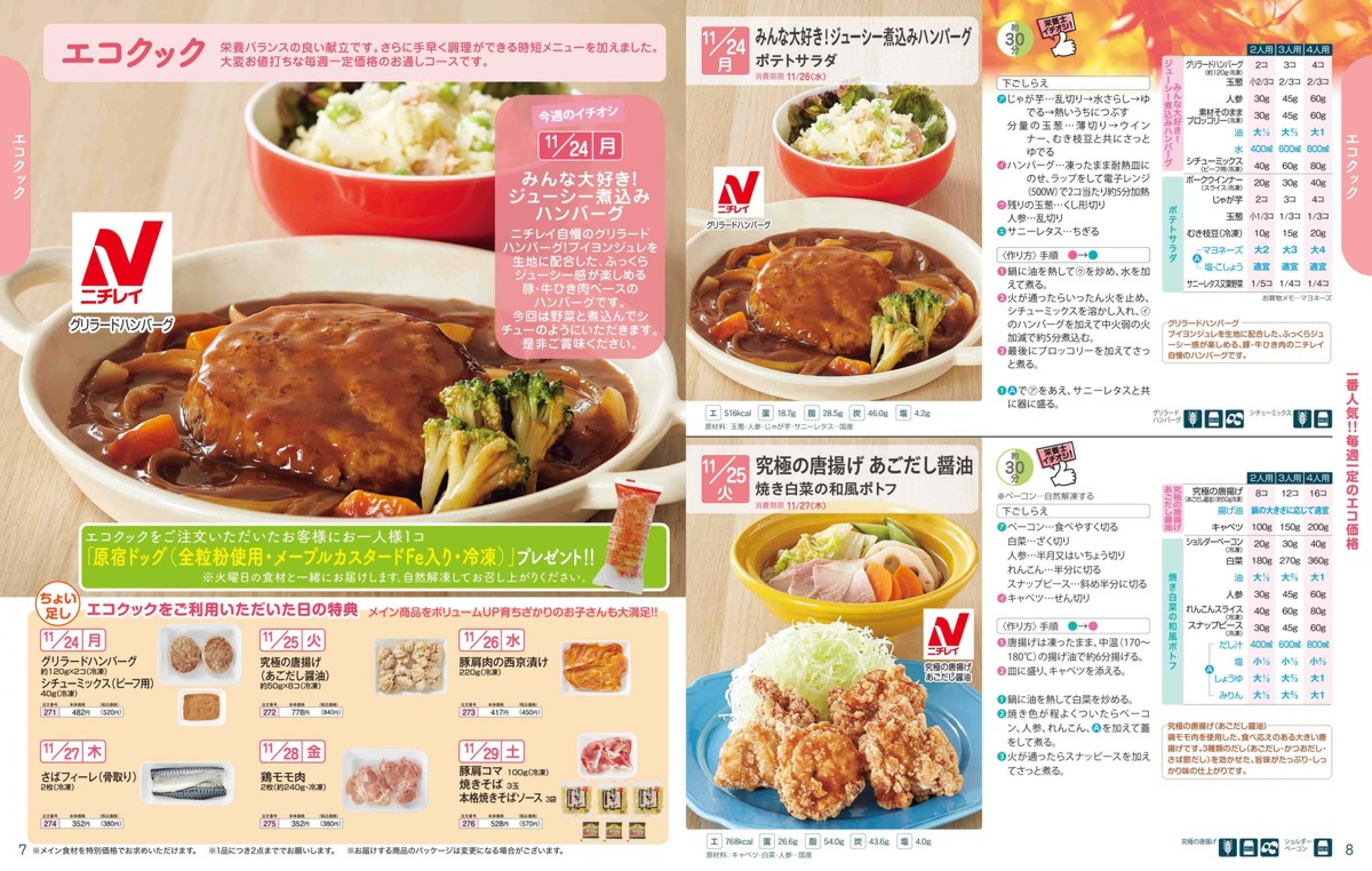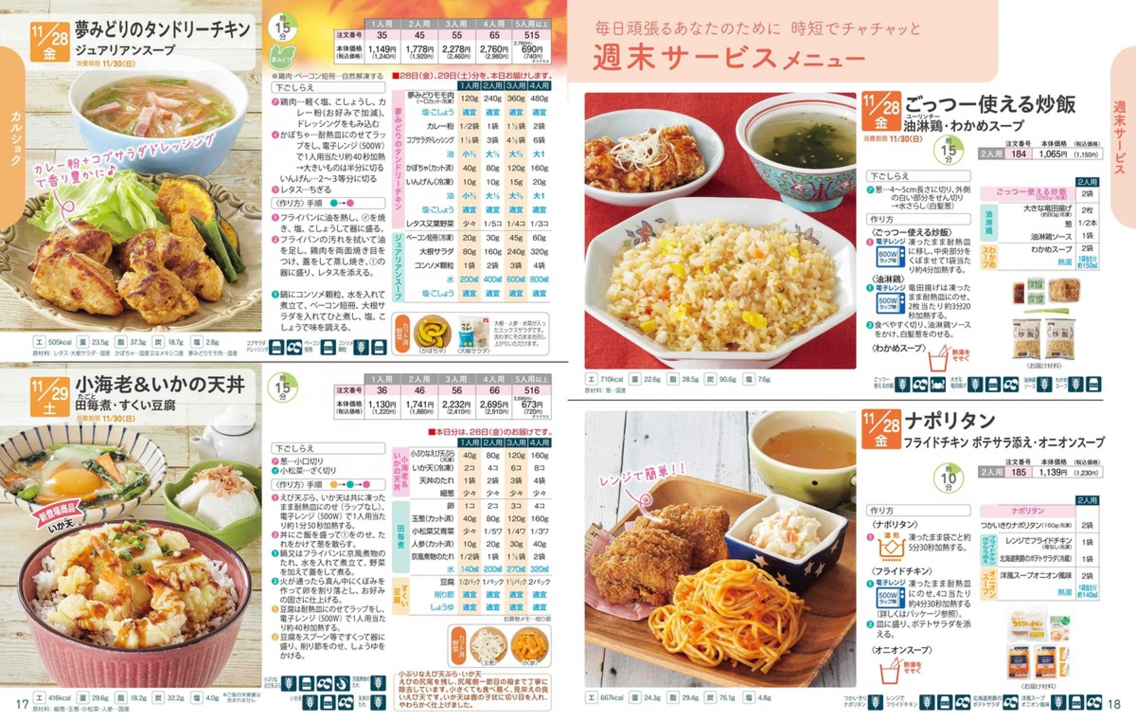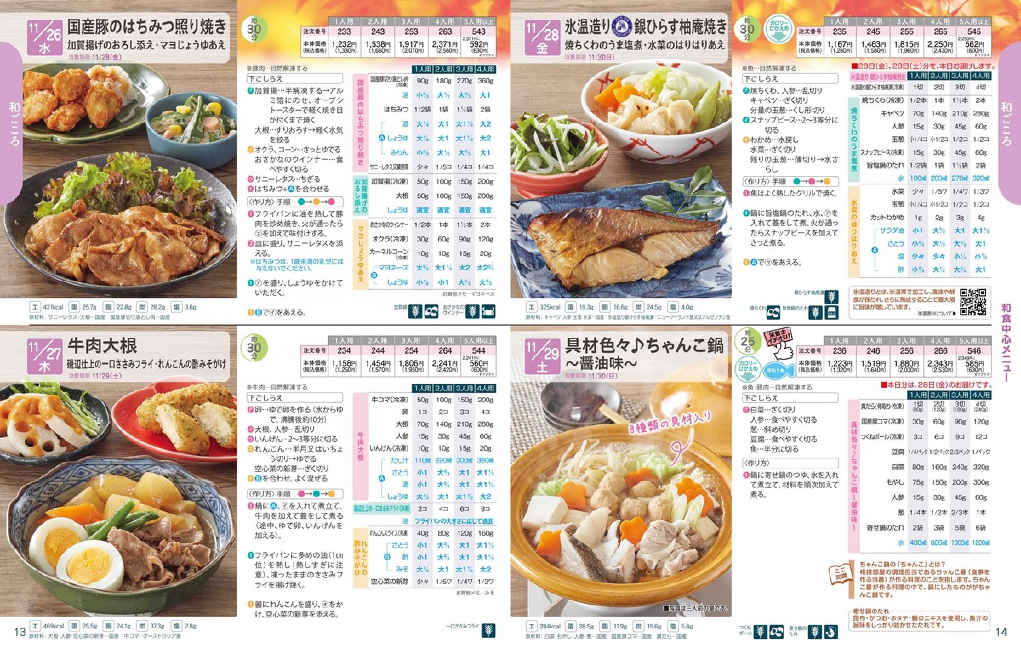 ▶2025年11月24日週 <11/19(水)締切> トップページカタログメニュー▶2025年11月24日週 <11/19(水)締切> 全商品一覧 Sミールキット 副菜プラス SpeeDish エコクック エコクック特典 選択メニュー特典 和ごころ カルショク 週末サービス 10分ごはん 冷凍弁当 栄養コントロールお弁当 生活応援 パン・乳製品・お米・調味料 リクエスト グルメデイズ HALF&HALF 特集 美味しいもん特集 カタログ一覧へ戻る
