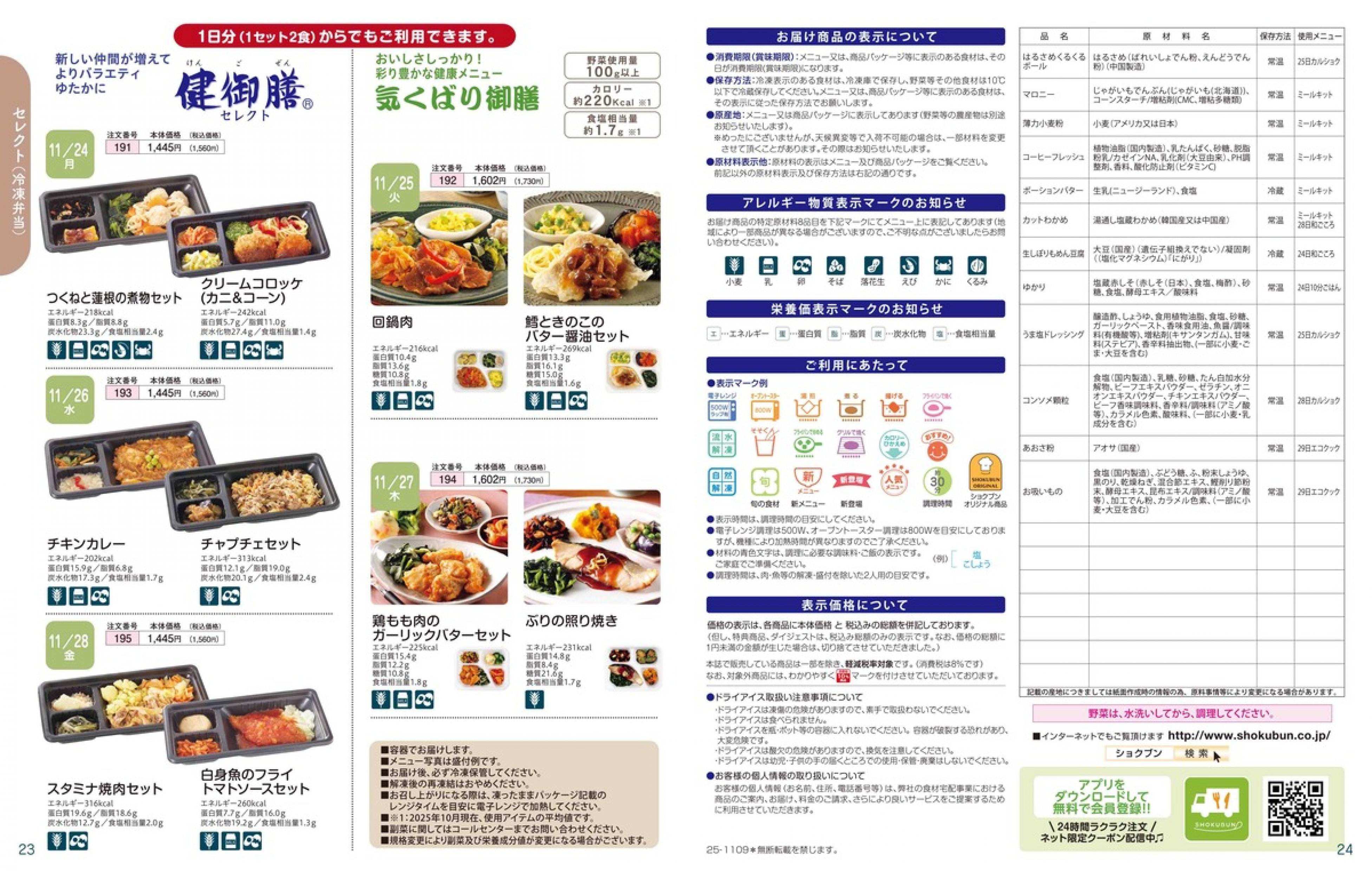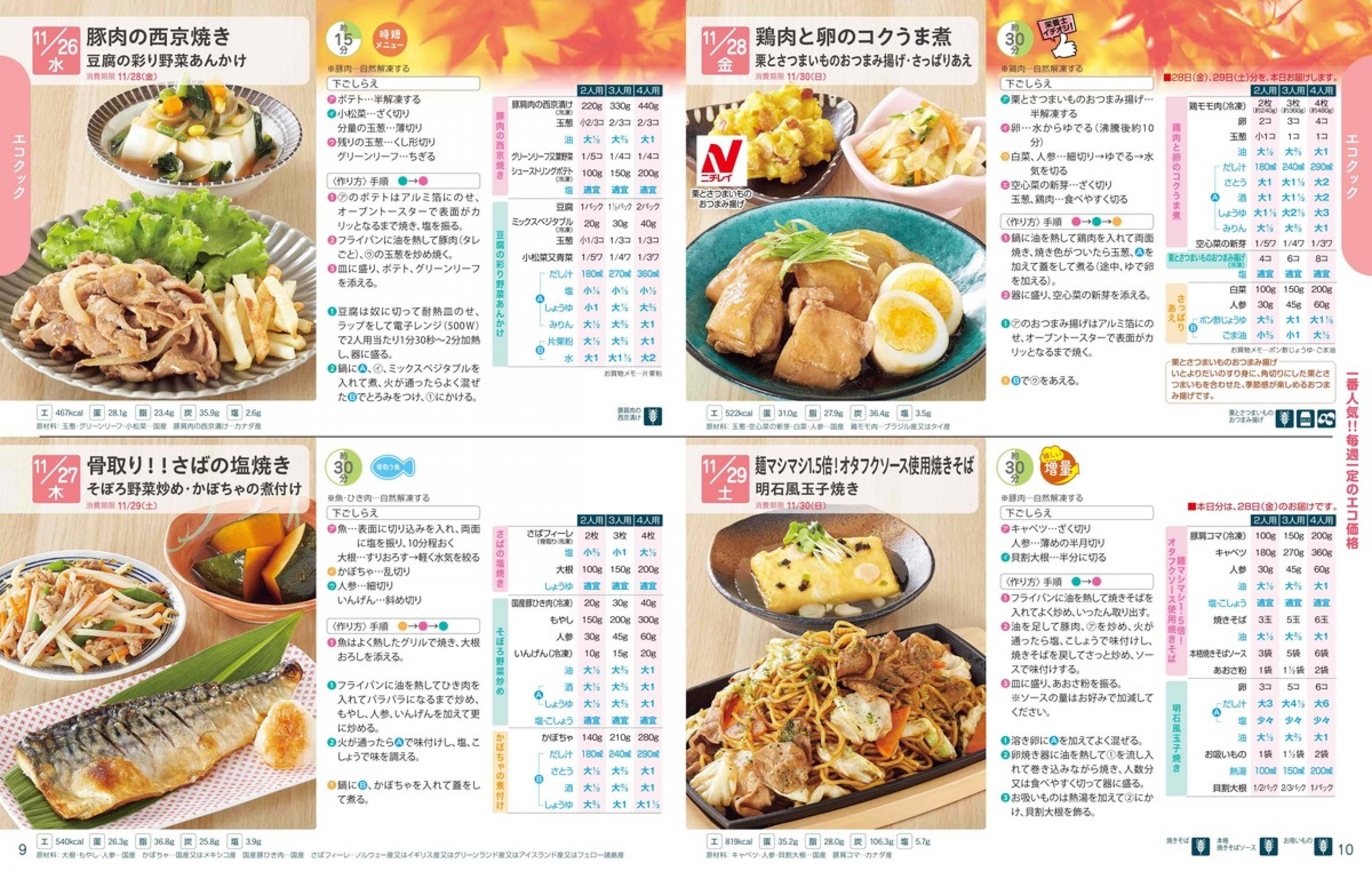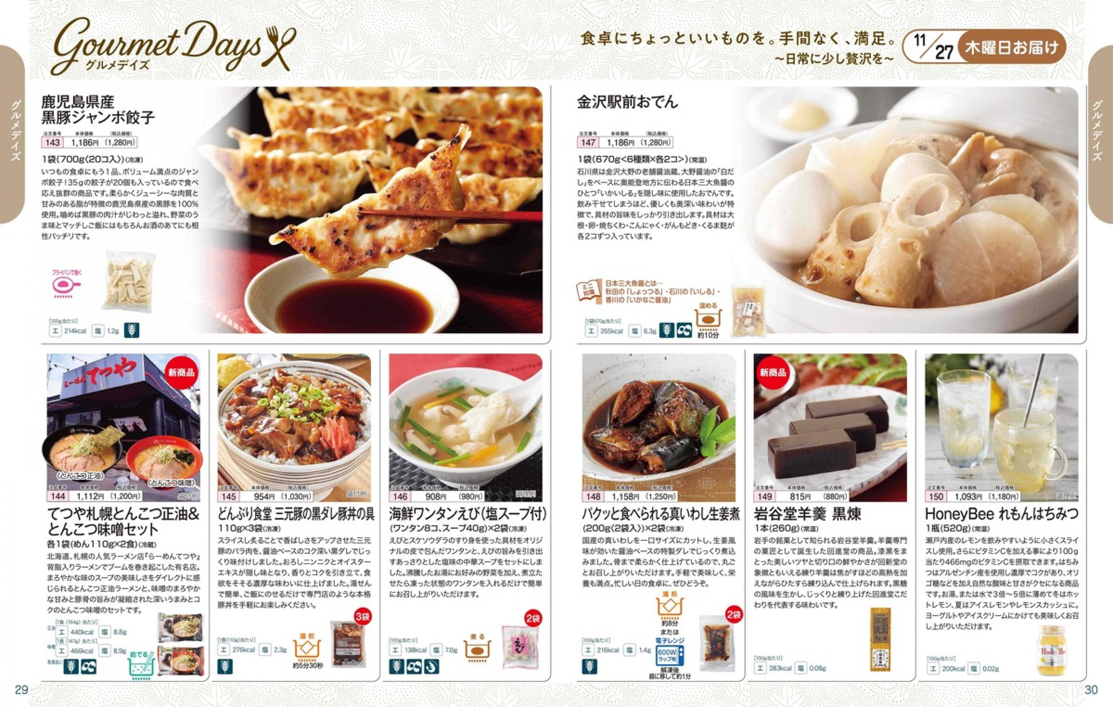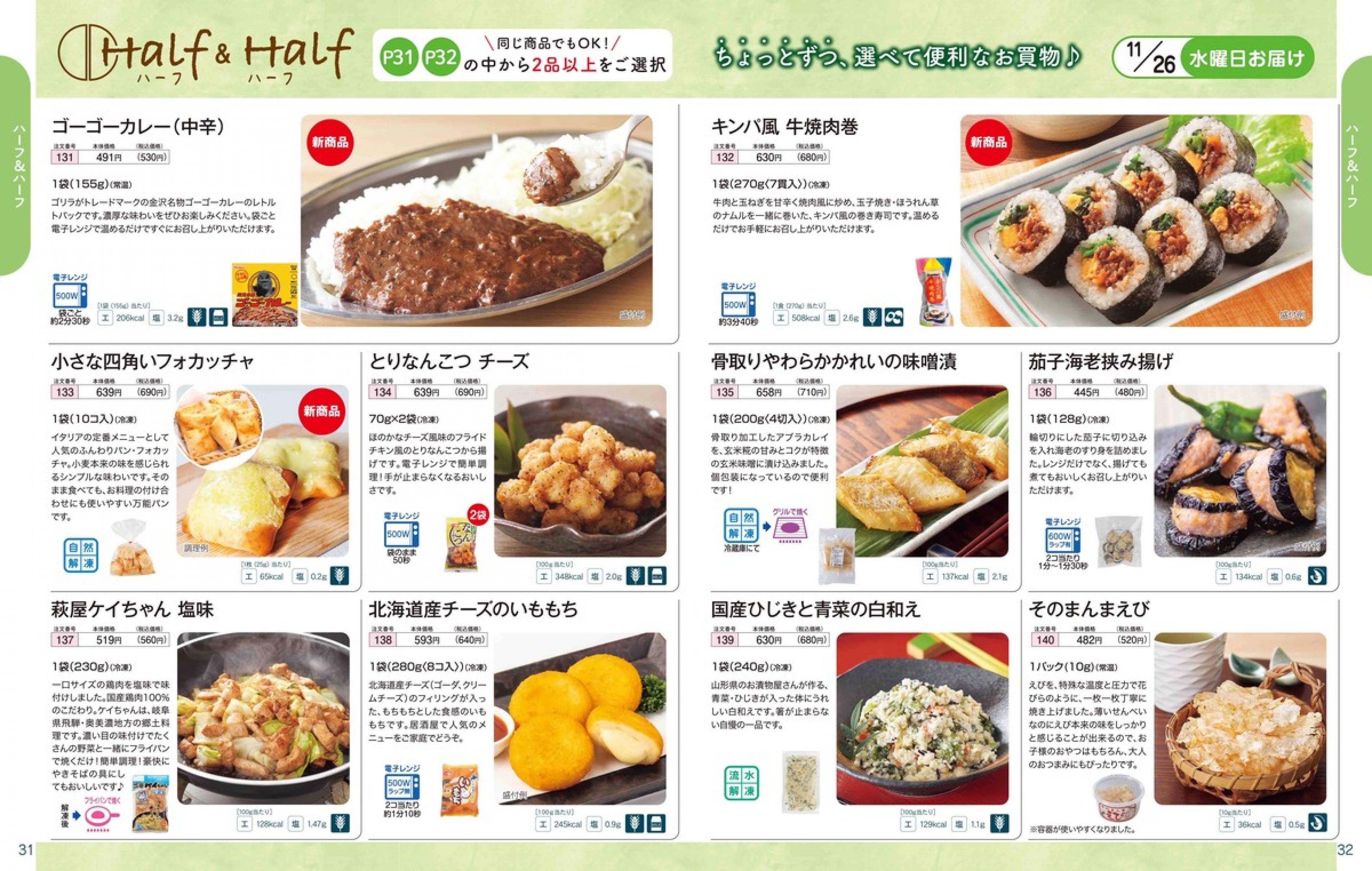 ▶2025年11月24日週 <11/19(水)締切> トップページカタログメニュー▶2025年11月24日週 <11/19(水)締切> 全商品一覧 Sミールキット 副菜プラス SpeeDish エコクック エコクック特典 選択メニュー特典 和ごころ カルショク 週末サービス 10分ごはん 冷凍弁当 栄養コントロールお弁当 生活応援 パン・乳製品・お米・調味料 リクエスト グルメデイズ HALF&HALF 特集 美味しいもん特集 カタログ一覧へ戻る