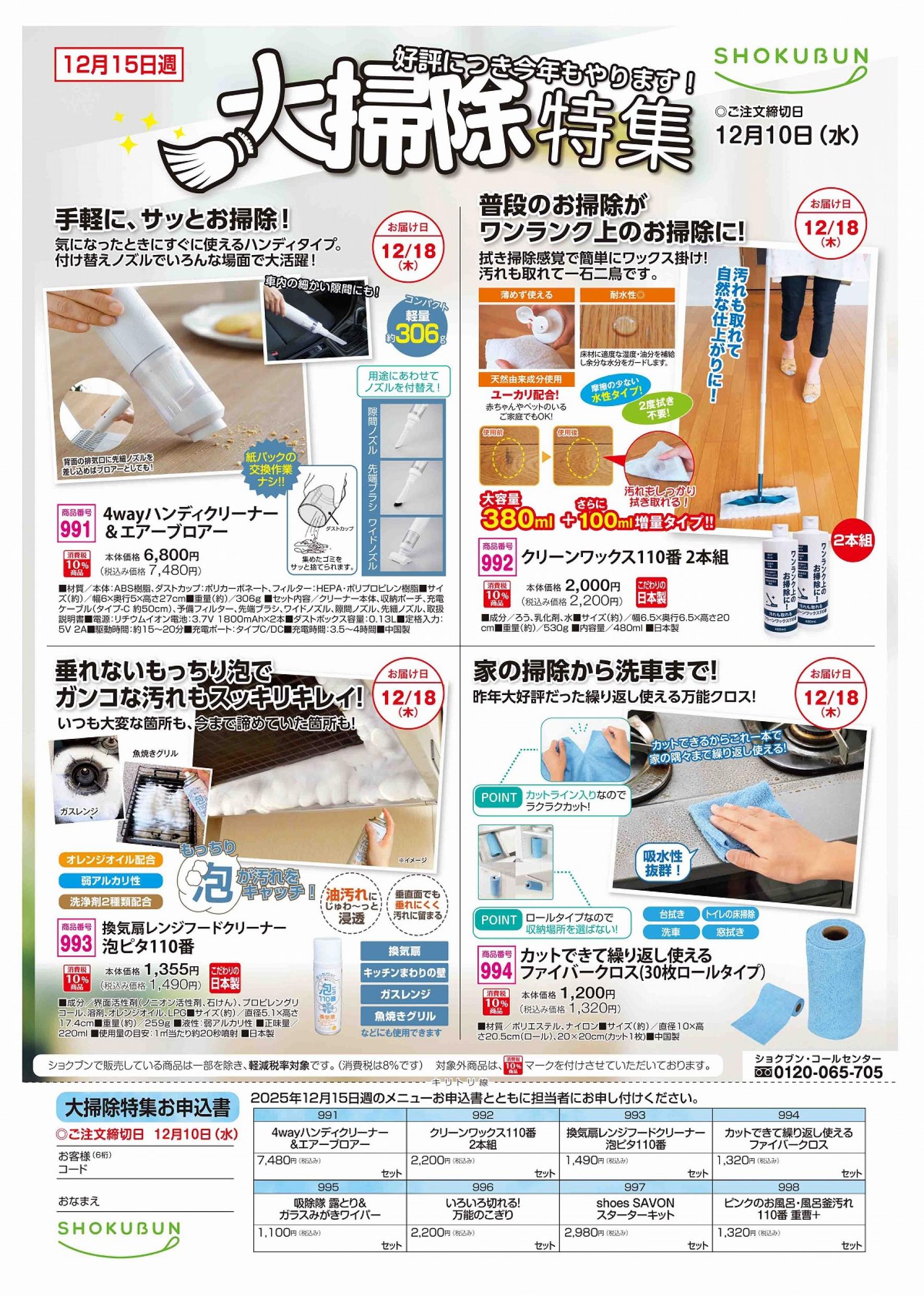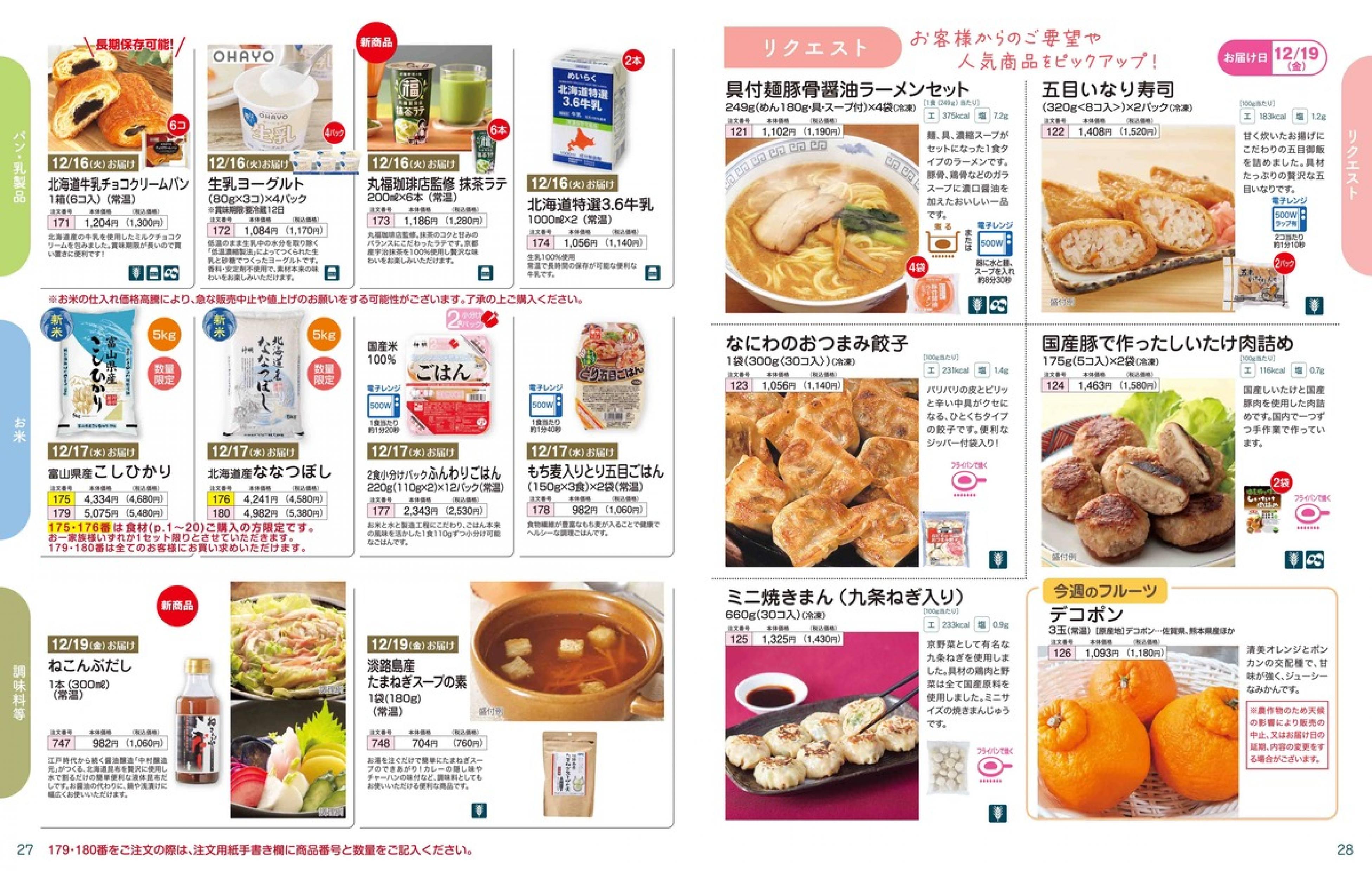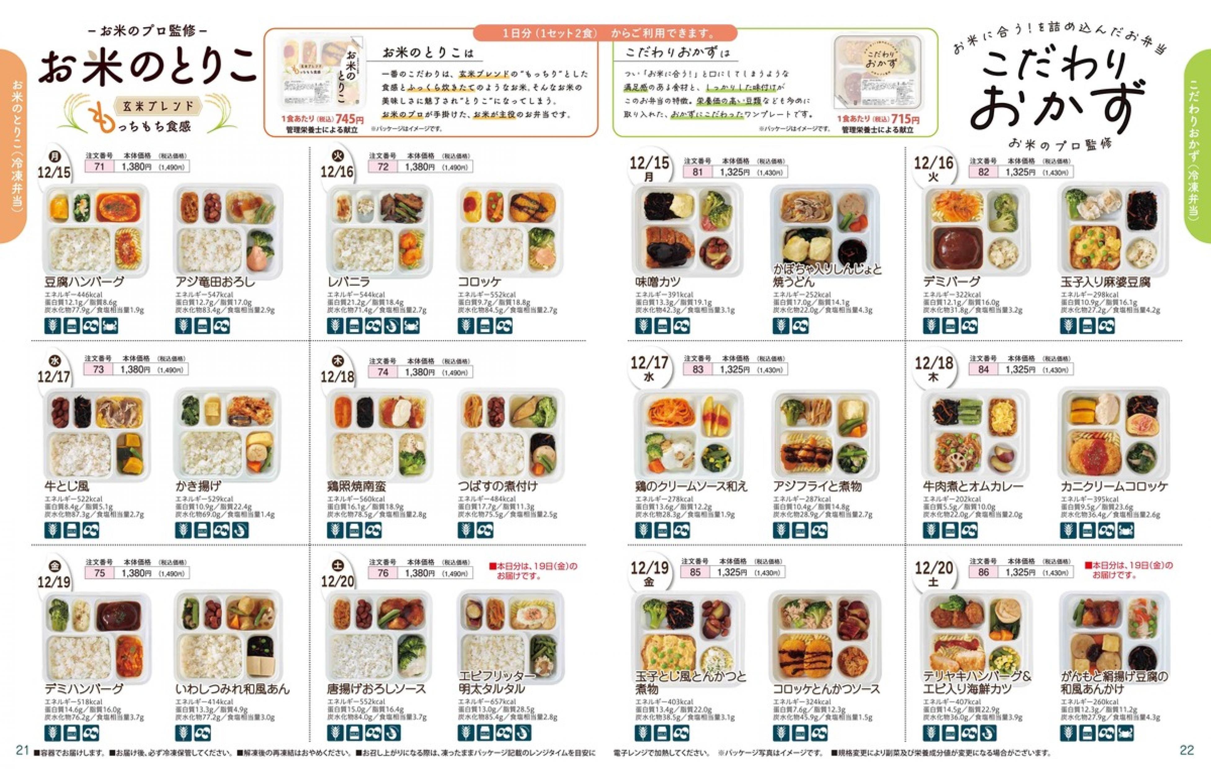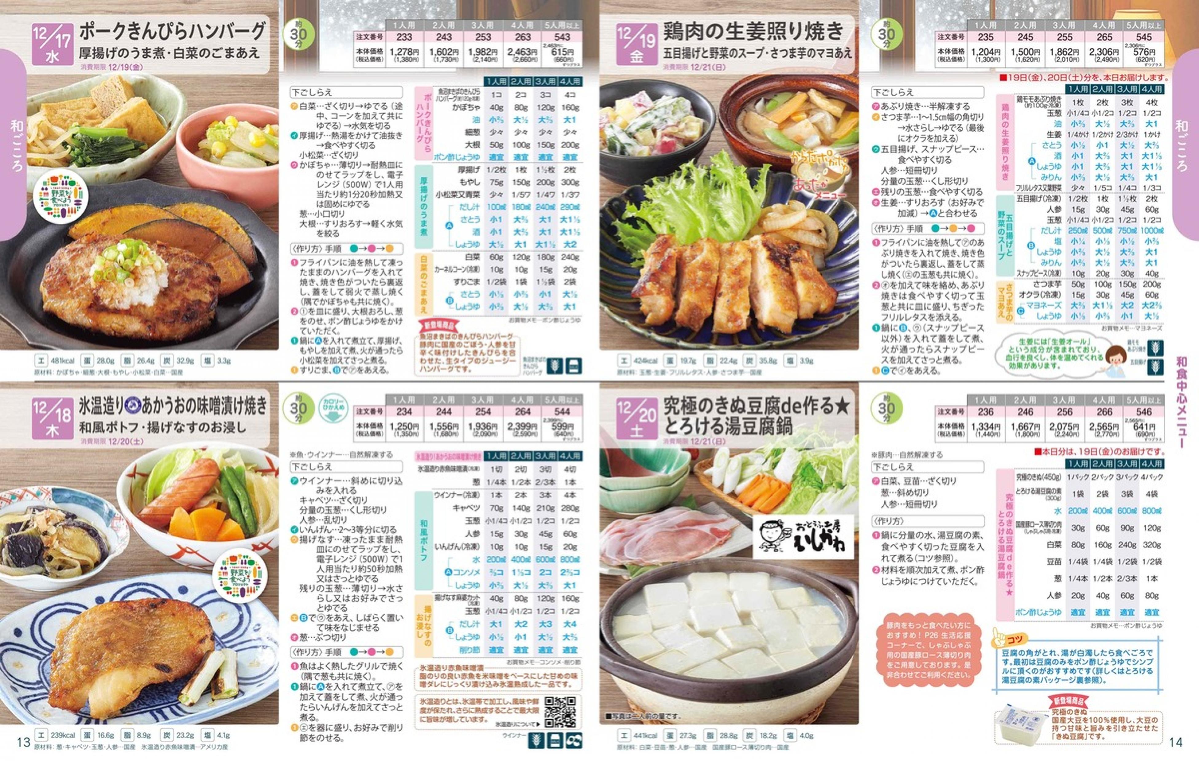 ▶2025年12月15日週 <12/10(水)締切> トップページカタログメニュー▶2025年12月15日週 <12/10(水)締切> 全商品一覧 Sミールキット 副菜プラス SpeeDish エコクック エコクック特典 選択メニュー特典 和ごころ カルショク 週末サービス 10分ごはん 1week 冷凍弁当 栄養コントロールお弁当 生活応援 パン・乳製品・お米・調味料 リクエスト グルメデイズ HALF&HALF 特集 美味しいもん特集 雑貨 大掃除特集 カタログ一覧へ戻る