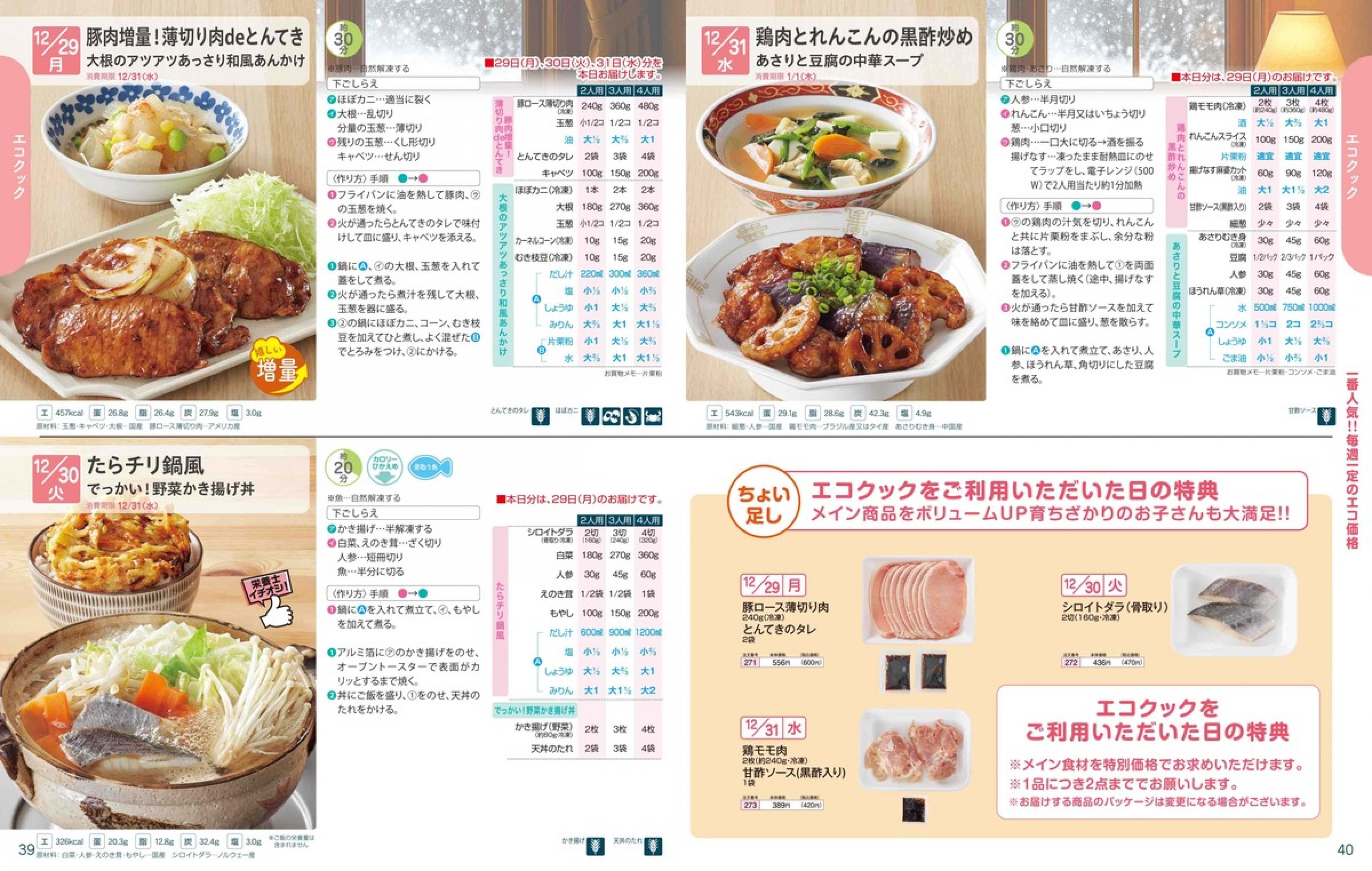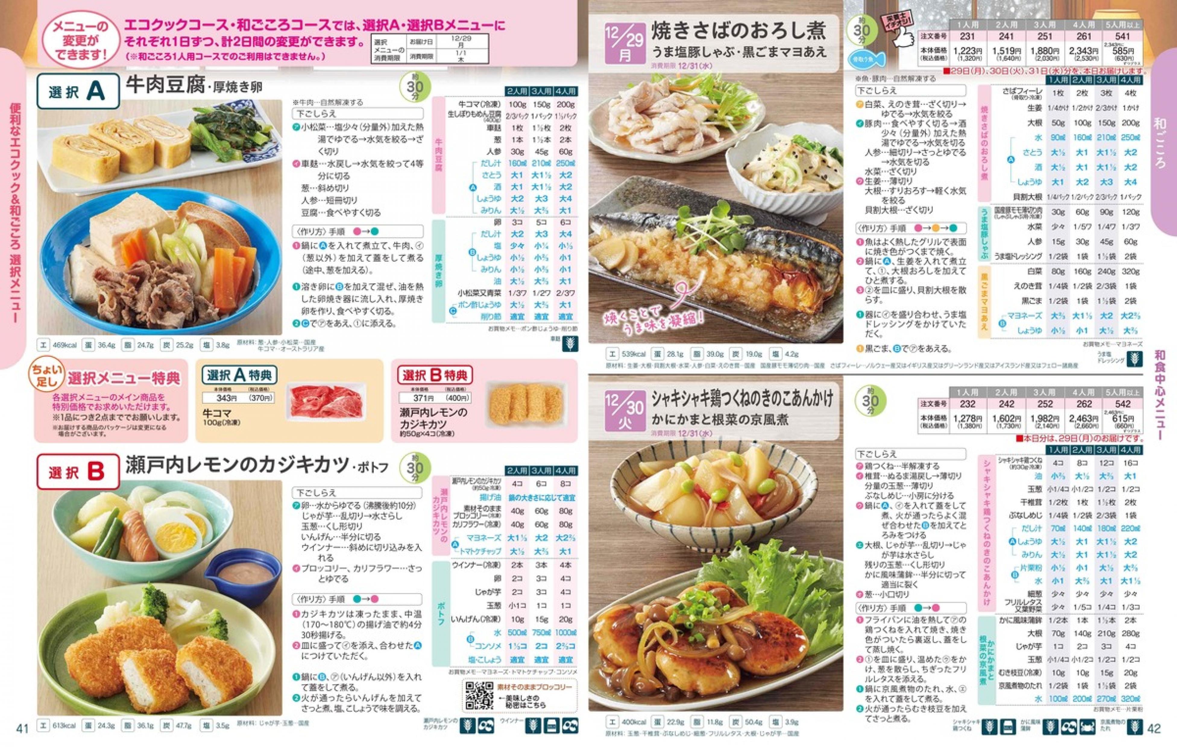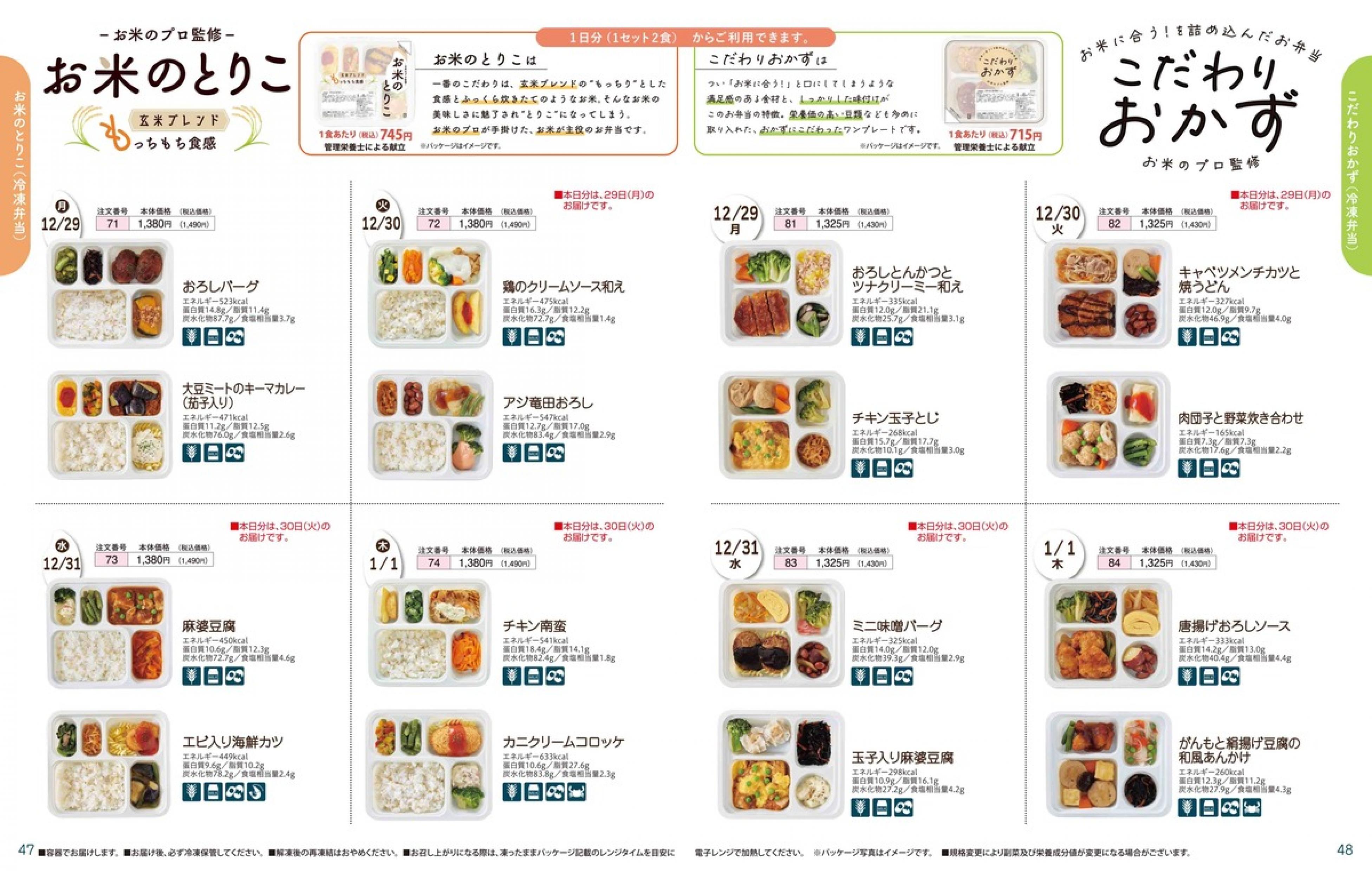 ▶2025年12月29日週 <12/17(水)締切> トップページカタログメニュー▶2025年12月29日週 <12/17(水)締切> 全商品一覧 Sミールキット エコクック エコクック特典 選択メニュー特典 和ごころ カルショク 10分ごはん 冷凍弁当 栄養コントロールお弁当 HALF&HALF 特集 年末サービス カタログ一覧へ戻る