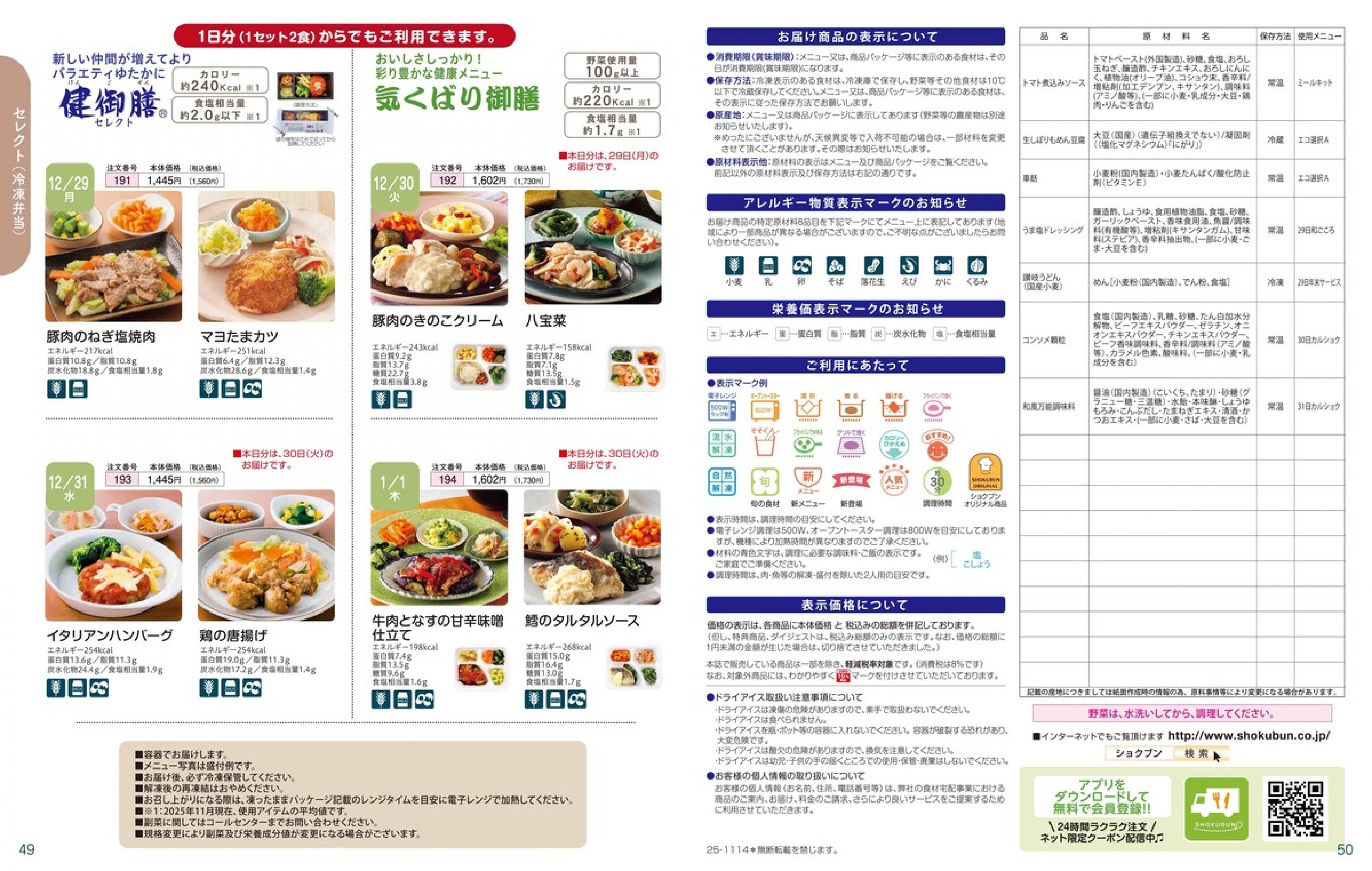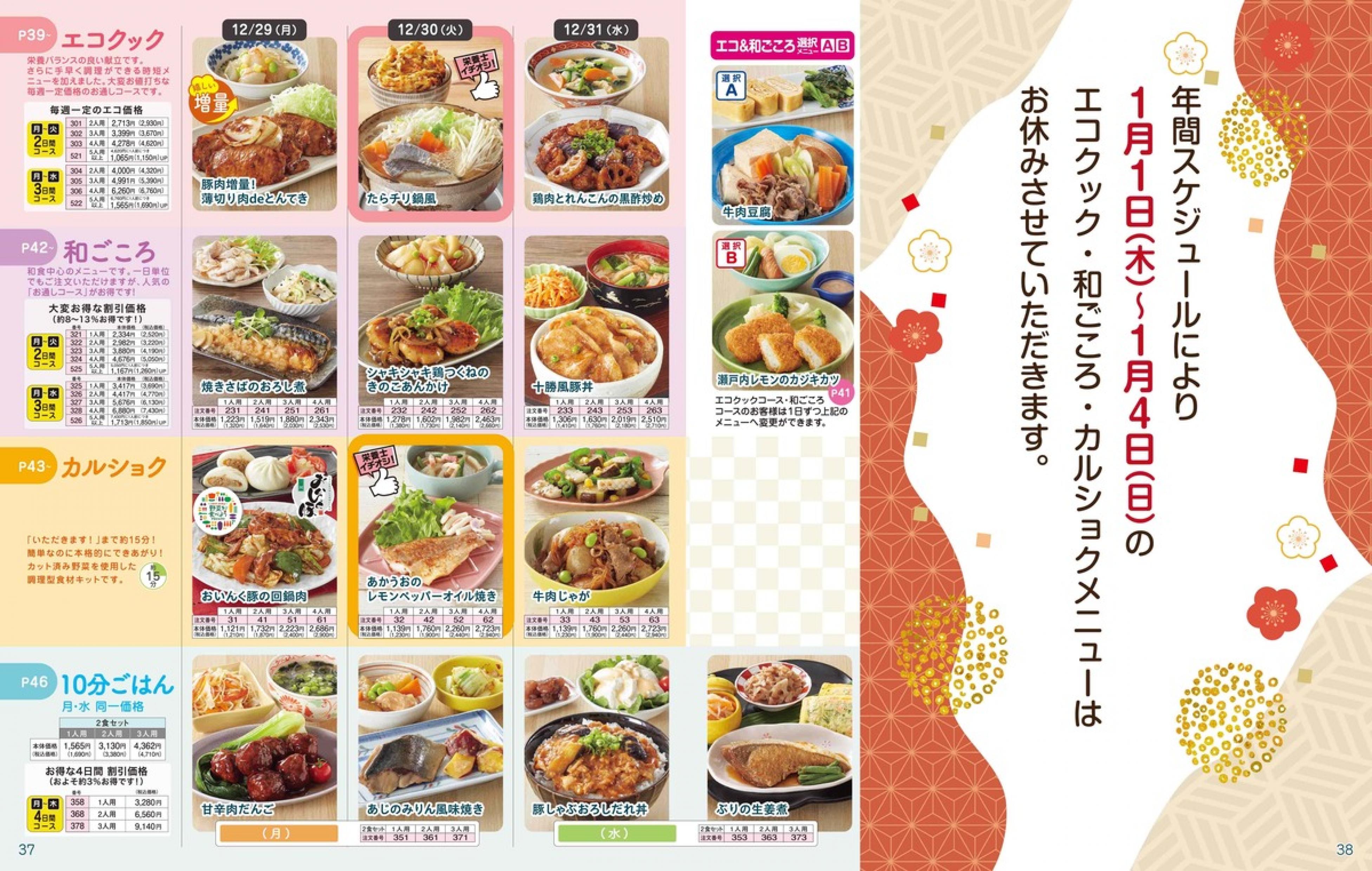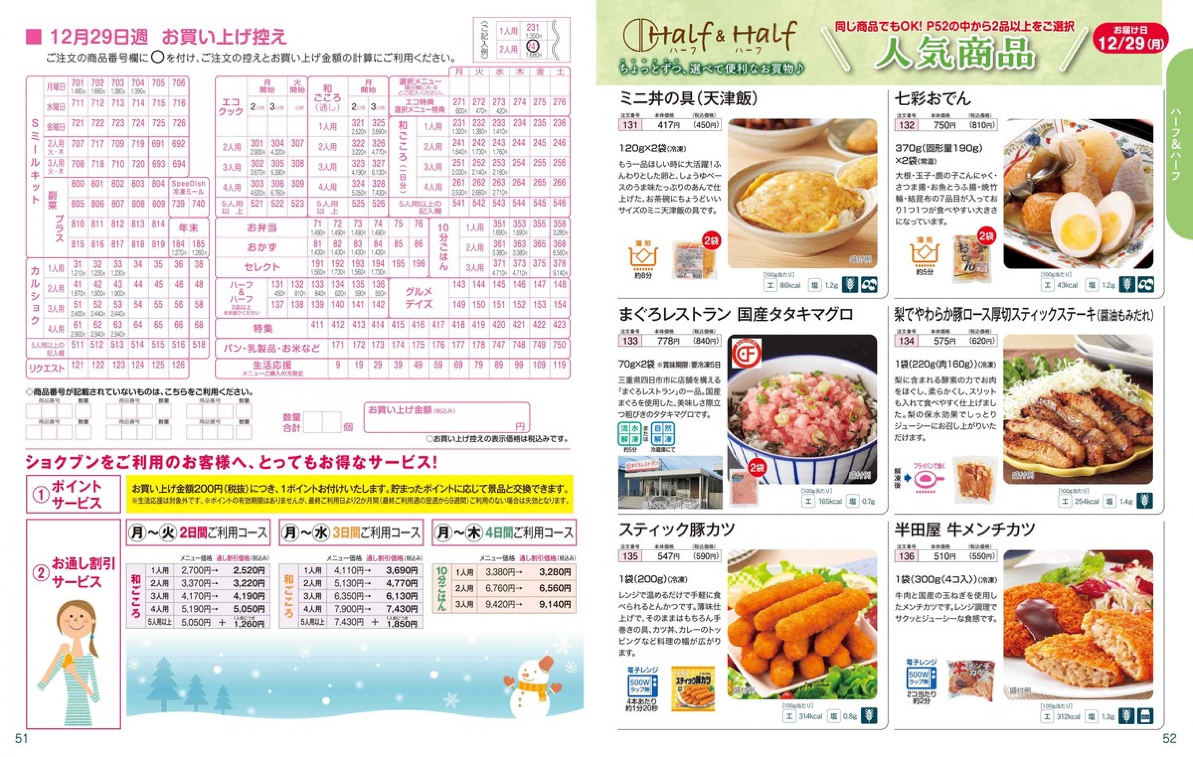 ▶2025年12月29日週 <12/17(水)締切> トップページカタログメニュー▶2025年12月29日週 <12/17(水)締切> 全商品一覧 Sミールキット エコクック エコクック特典 選択メニュー特典 和ごころ カルショク 10分ごはん 冷凍弁当 栄養コントロールお弁当 HALF&HALF 特集 年末サービス カタログ一覧へ戻る
