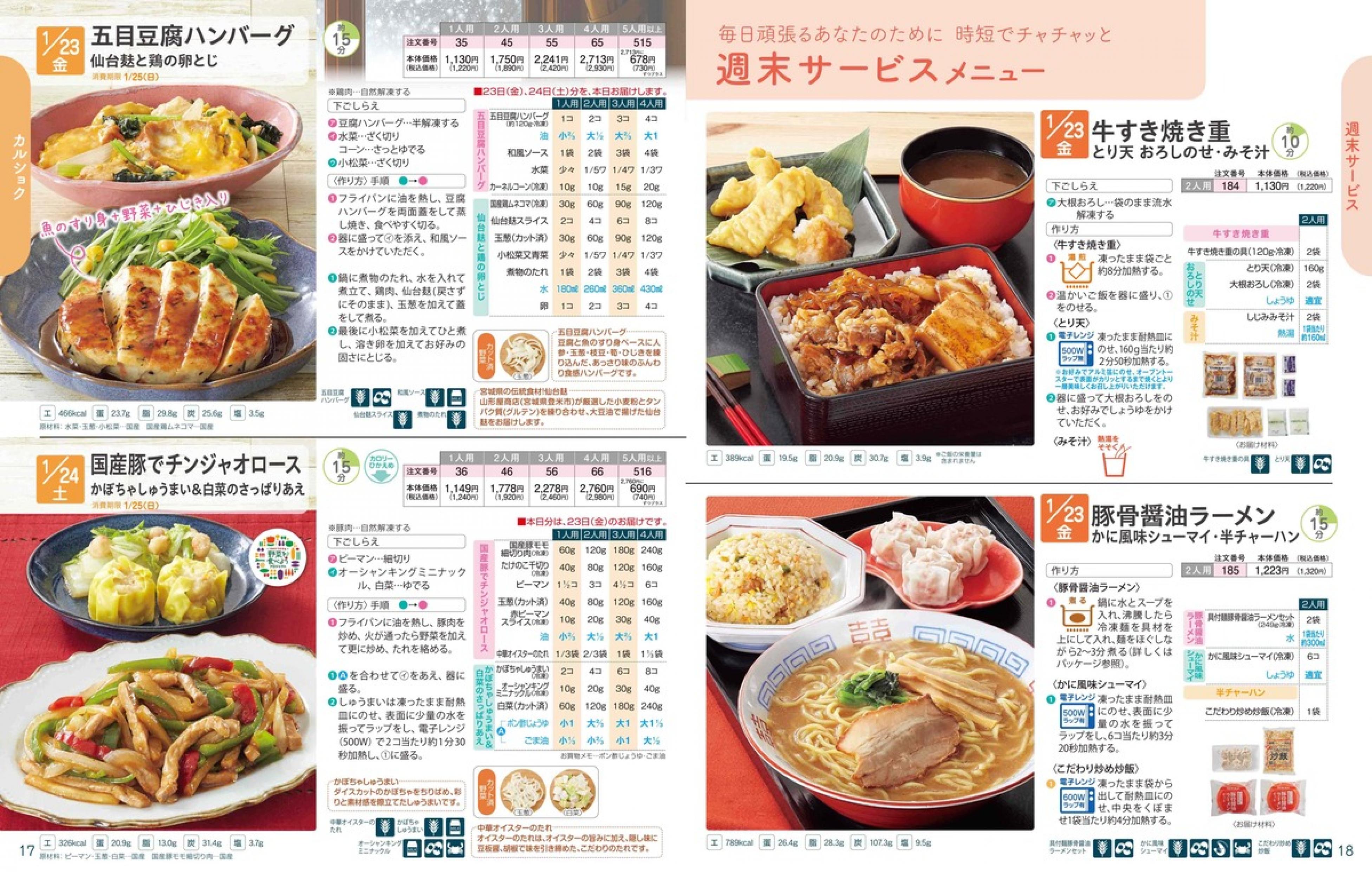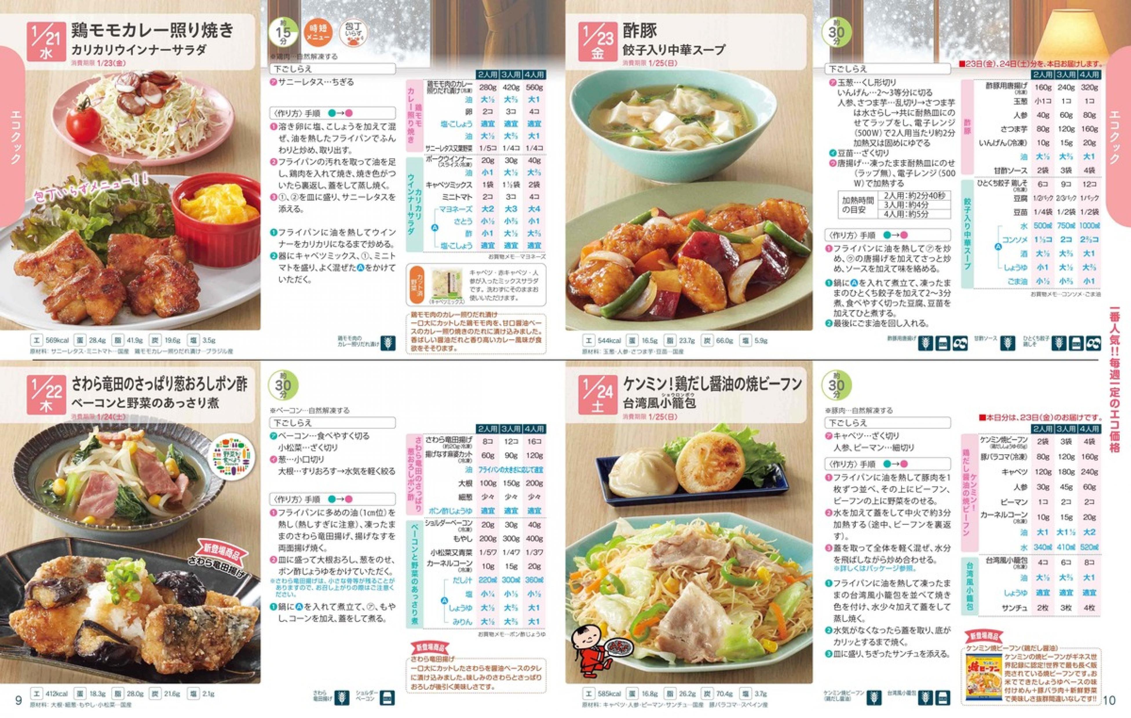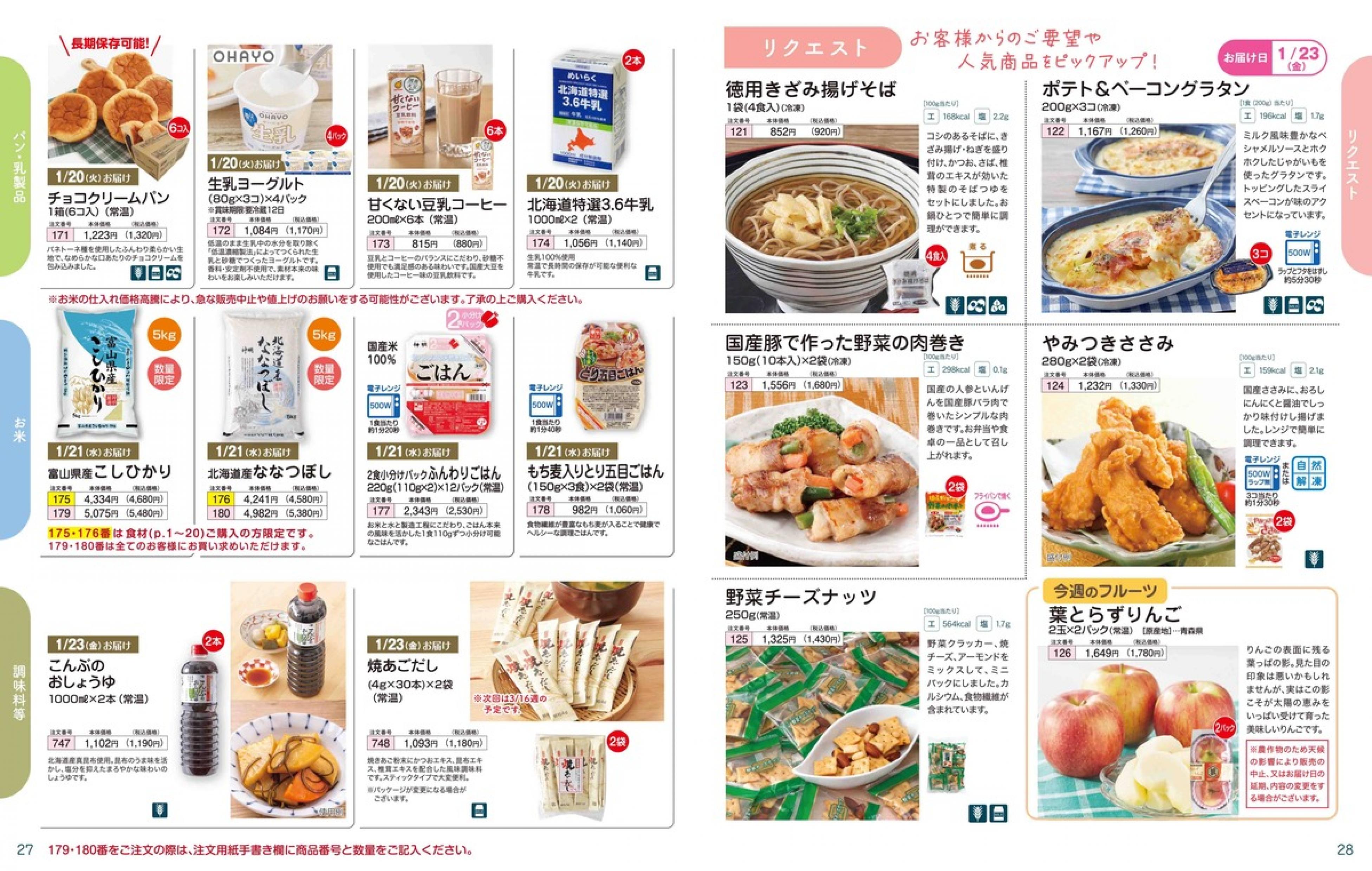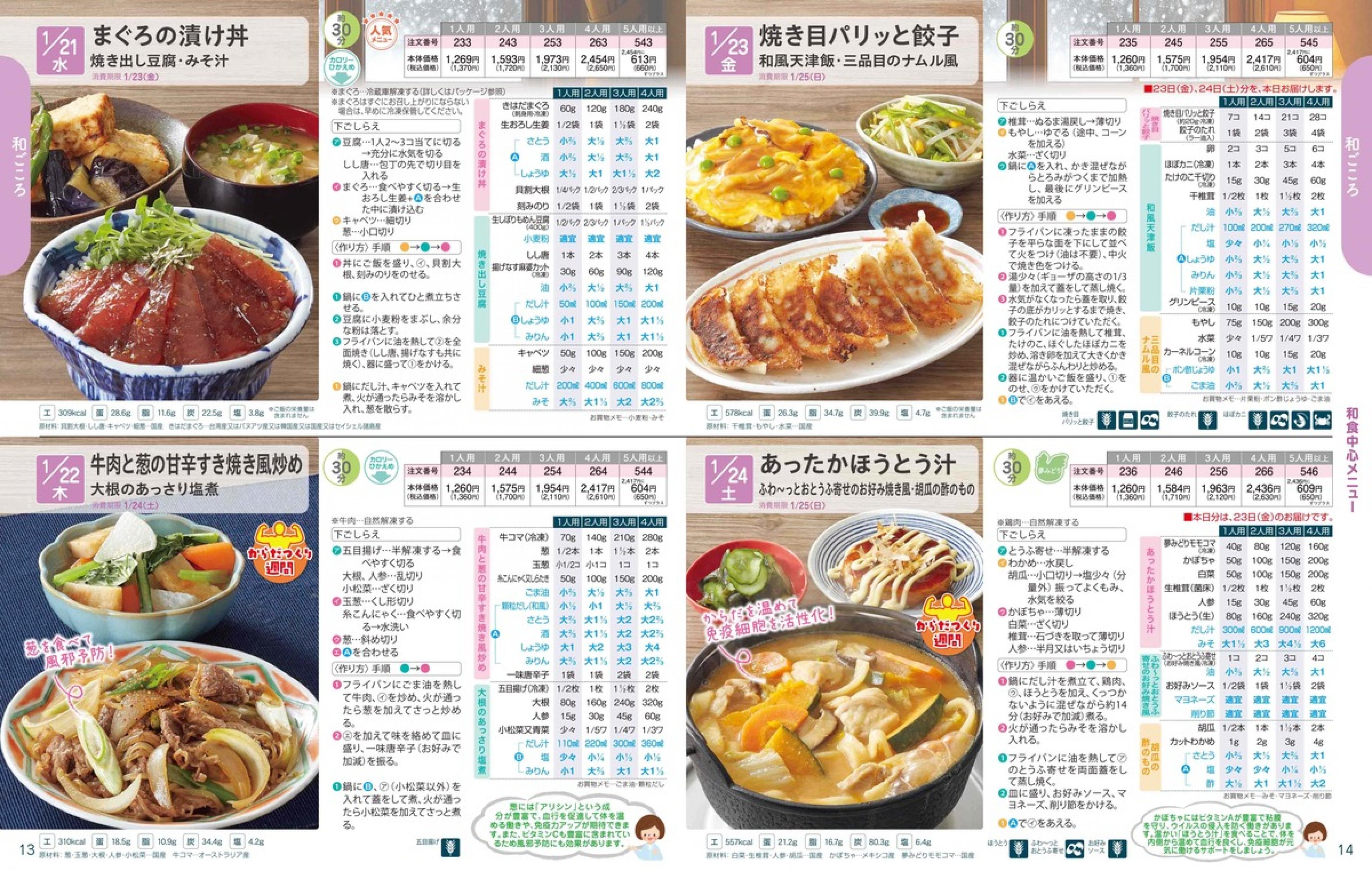 ▶2026年1月19日週 <1/14(水)締切> トップページカタログメニュー▶2026年1月19日週 <1/14(水)締切> 全商品一覧 Sミールキット 副菜プラス SpeeDish エコクック エコクック特典 選択メニュー特典 和ごころ カルショク 週末サービス 10分ごはん 1week 冷凍弁当 生活応援 パン・乳製品・お米・調味料 リクエスト グルメデイズ HALF&HALF 特集 美味しいもん特集 雑貨 カタログ一覧へ戻る