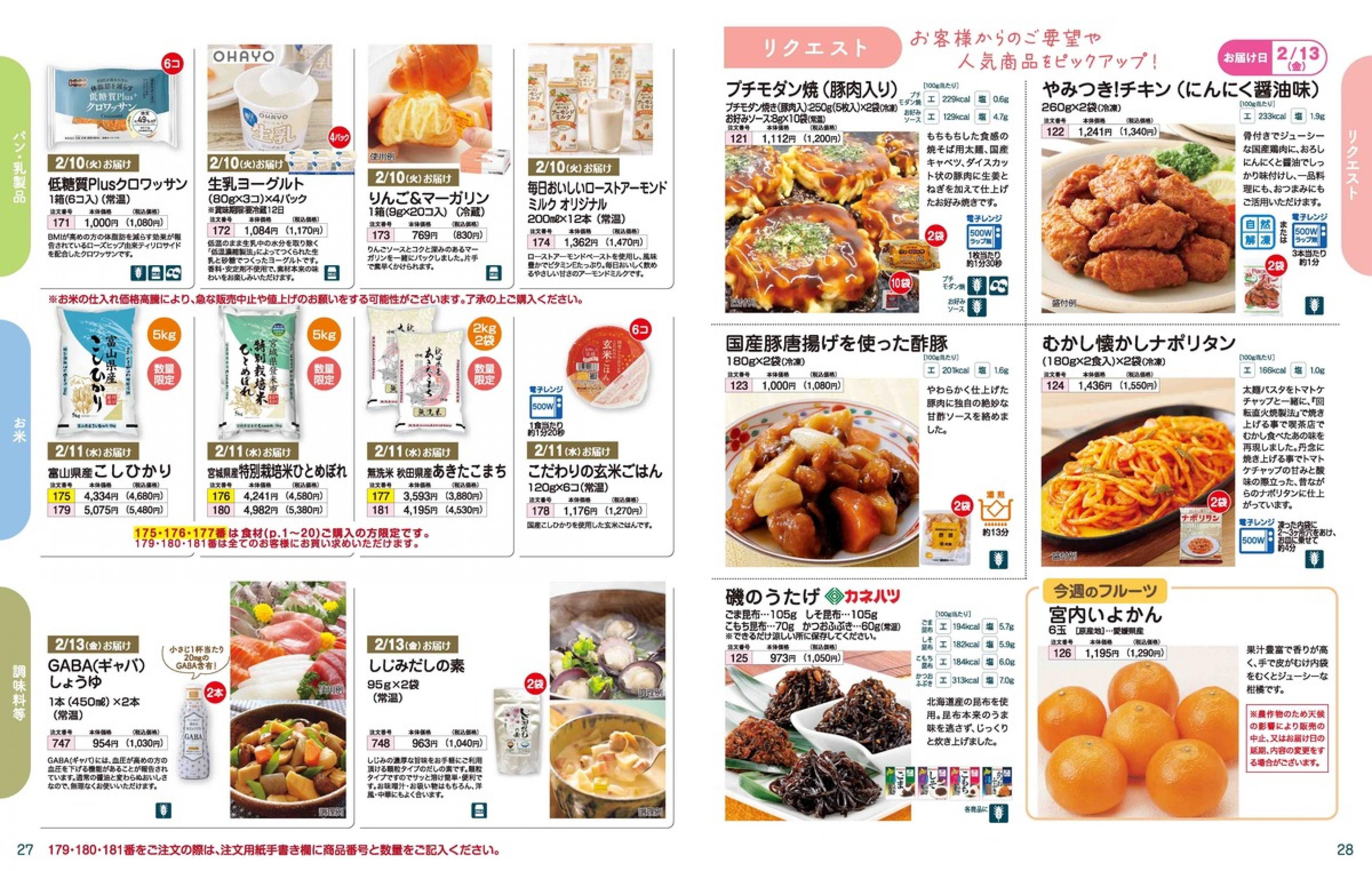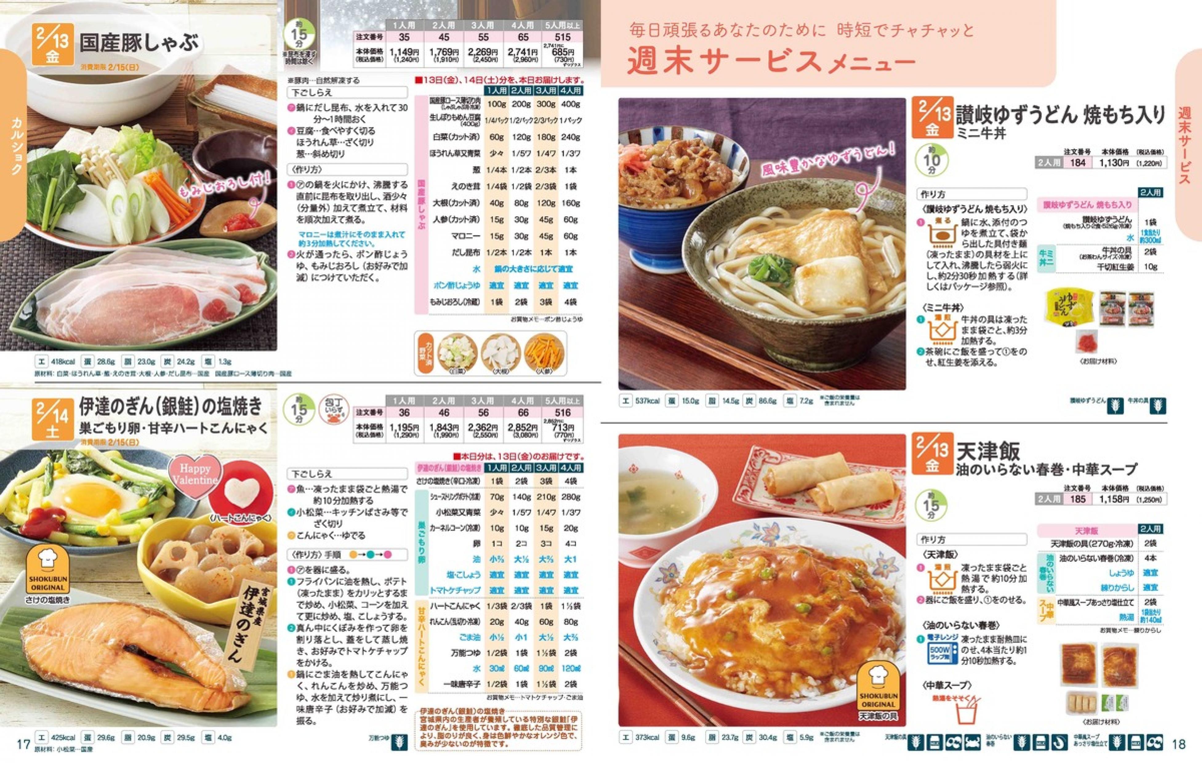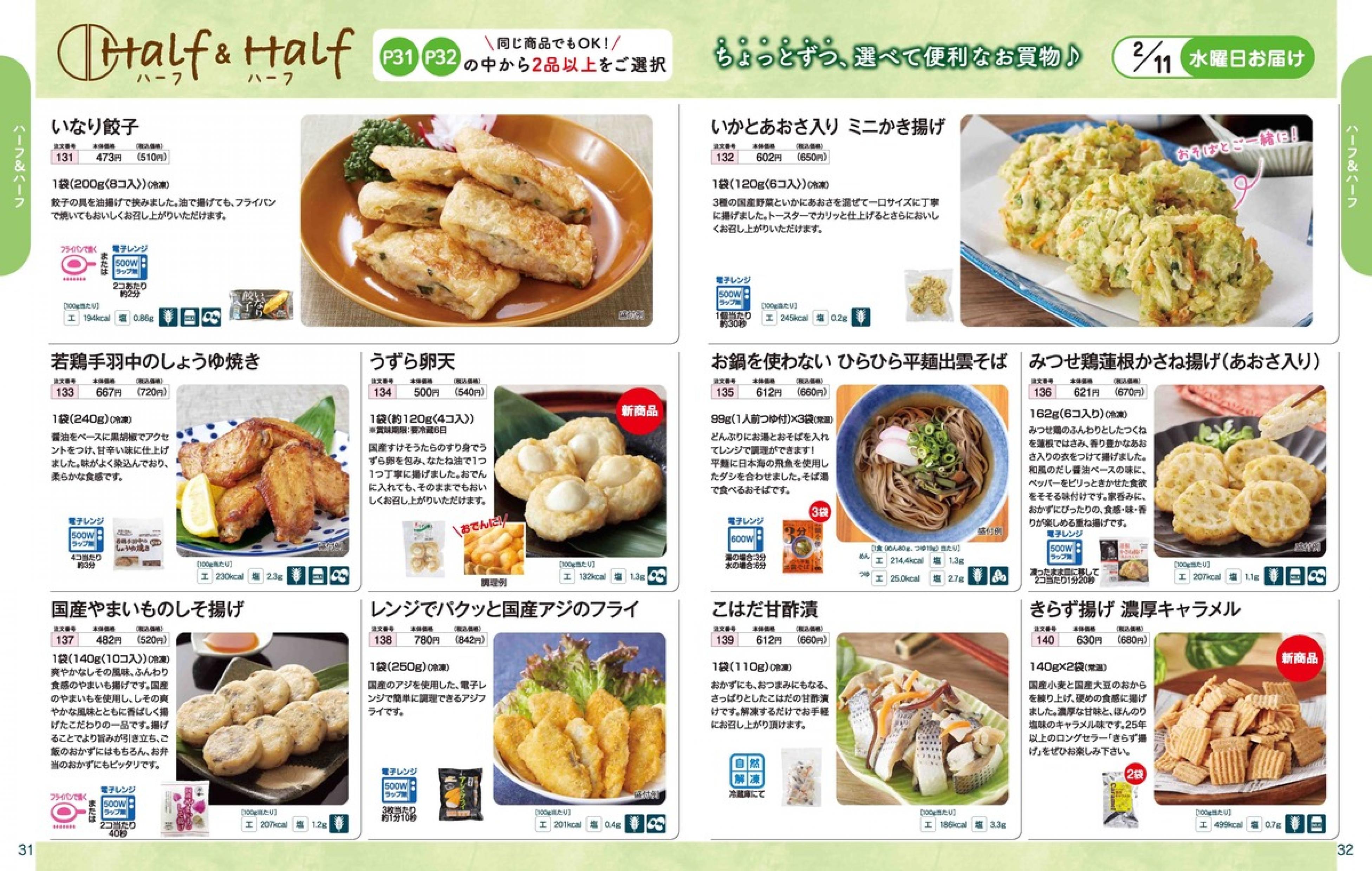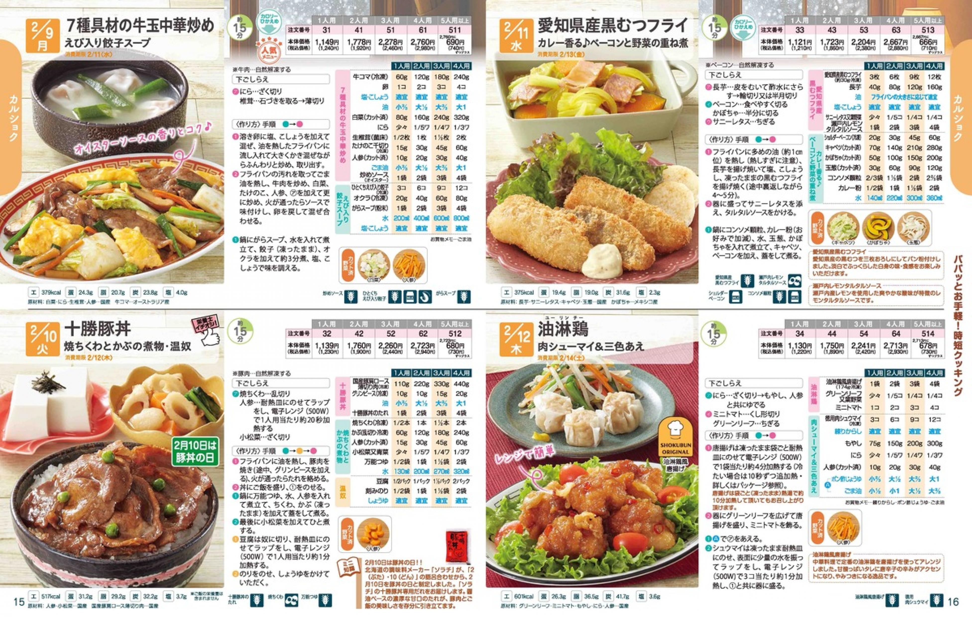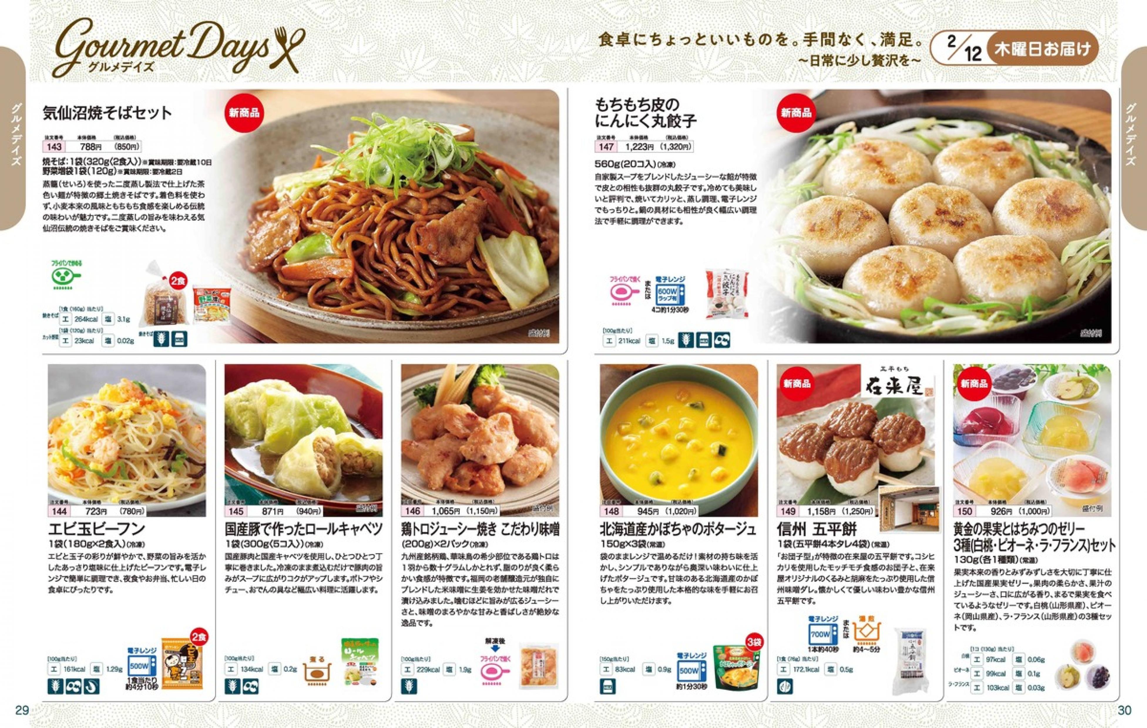 ▶2026年2月9日週 <2/4(水)締切> トップページカタログメニュー▶2026年2月9日週 <2/4(水)締切> 全商品一覧 Sミールキット 副菜プラス SpeeDish エコクック エコクック特典 選択メニュー特典 和ごころ カルショク 週末サービス 10分ごはん 1week 冷凍弁当 生活応援 パン・乳製品・お米・調味料 リクエスト グルメデイズ HALF&HALF 特集 美味しいもん特集 雑貨 カタログ一覧へ戻る