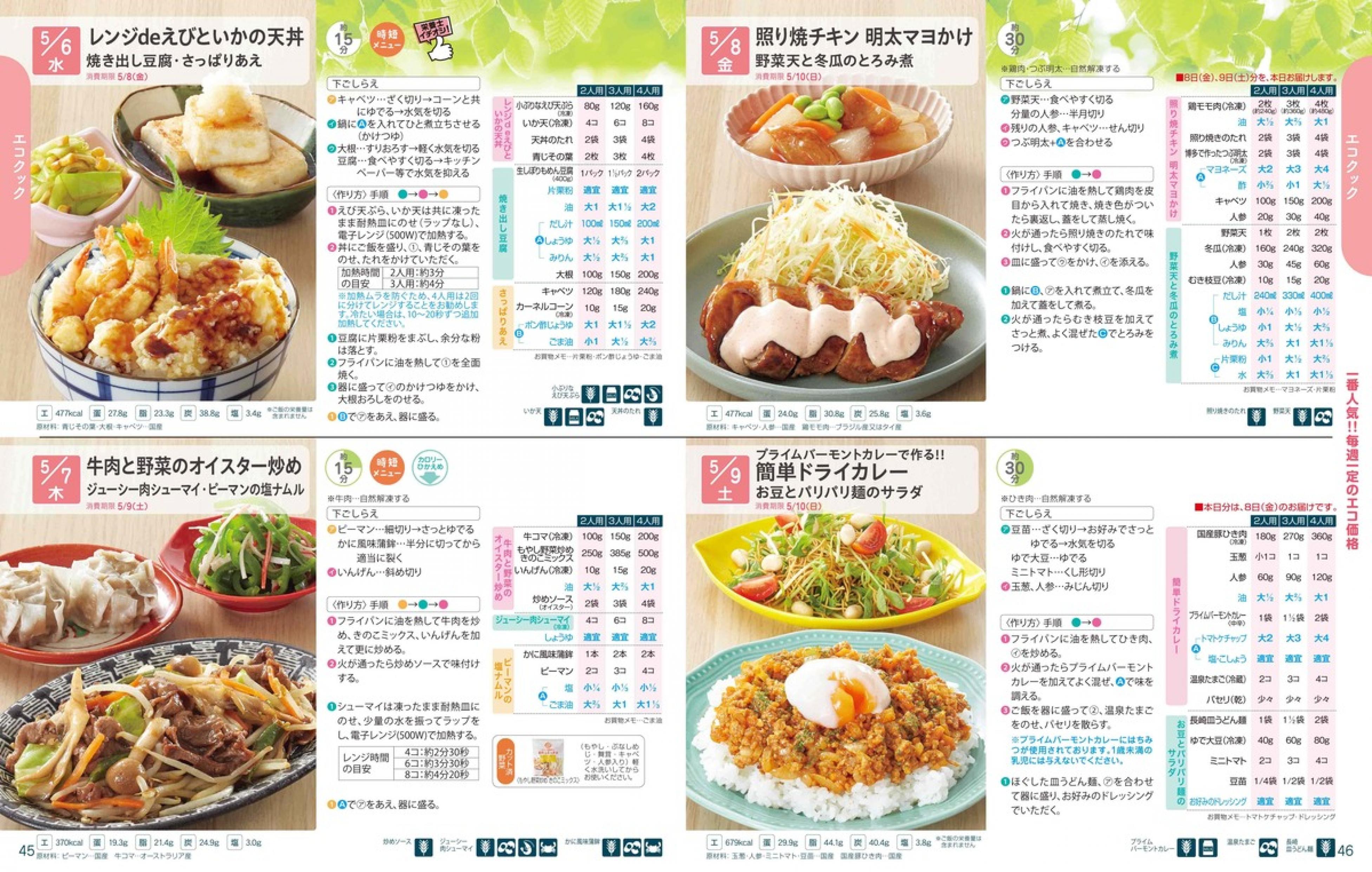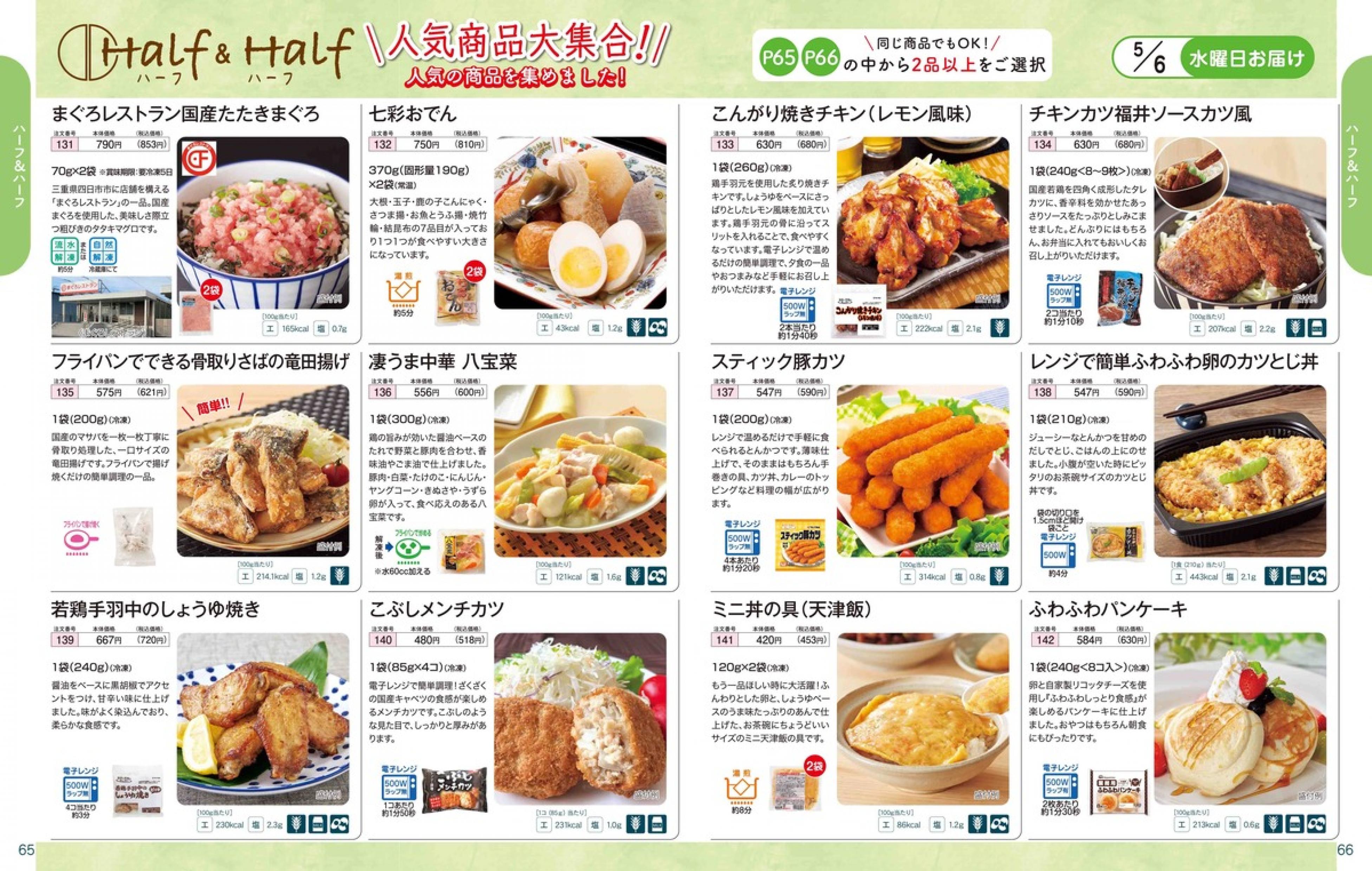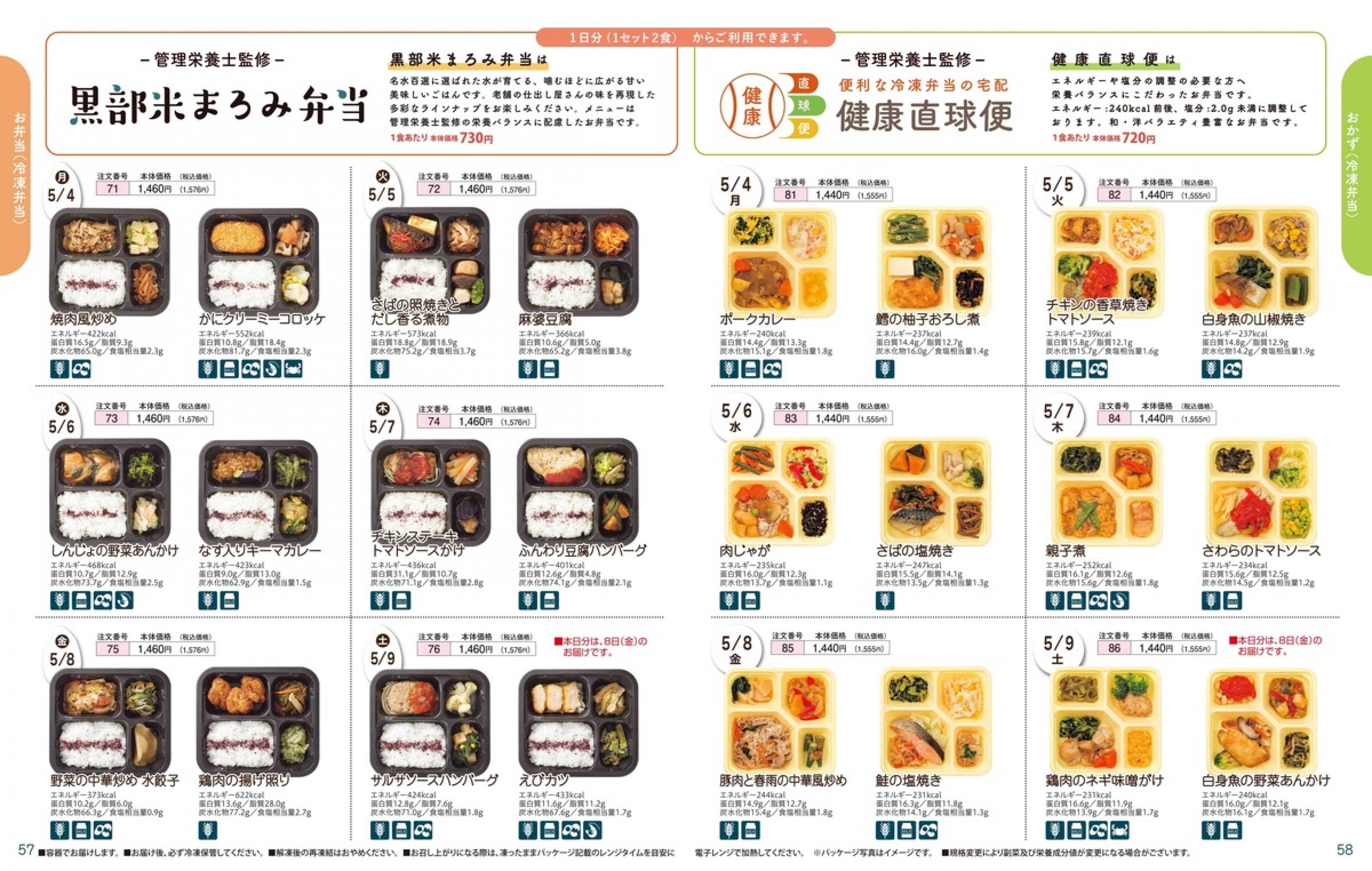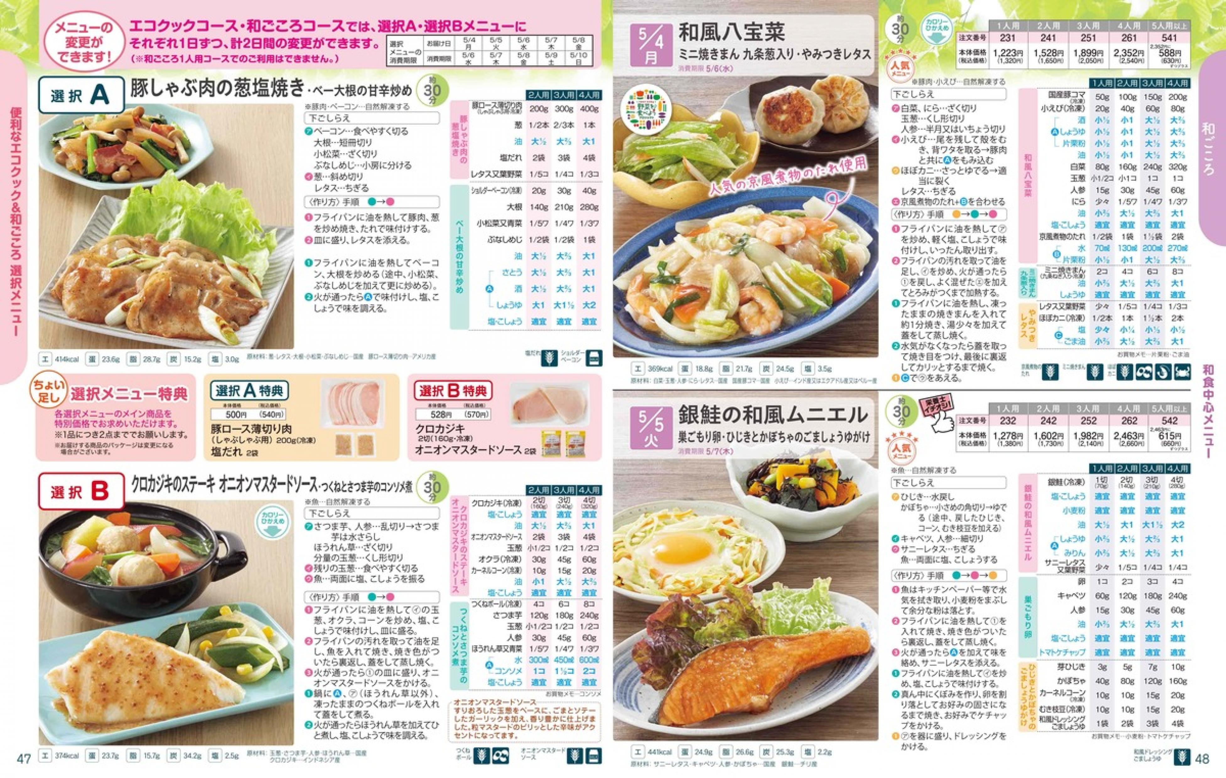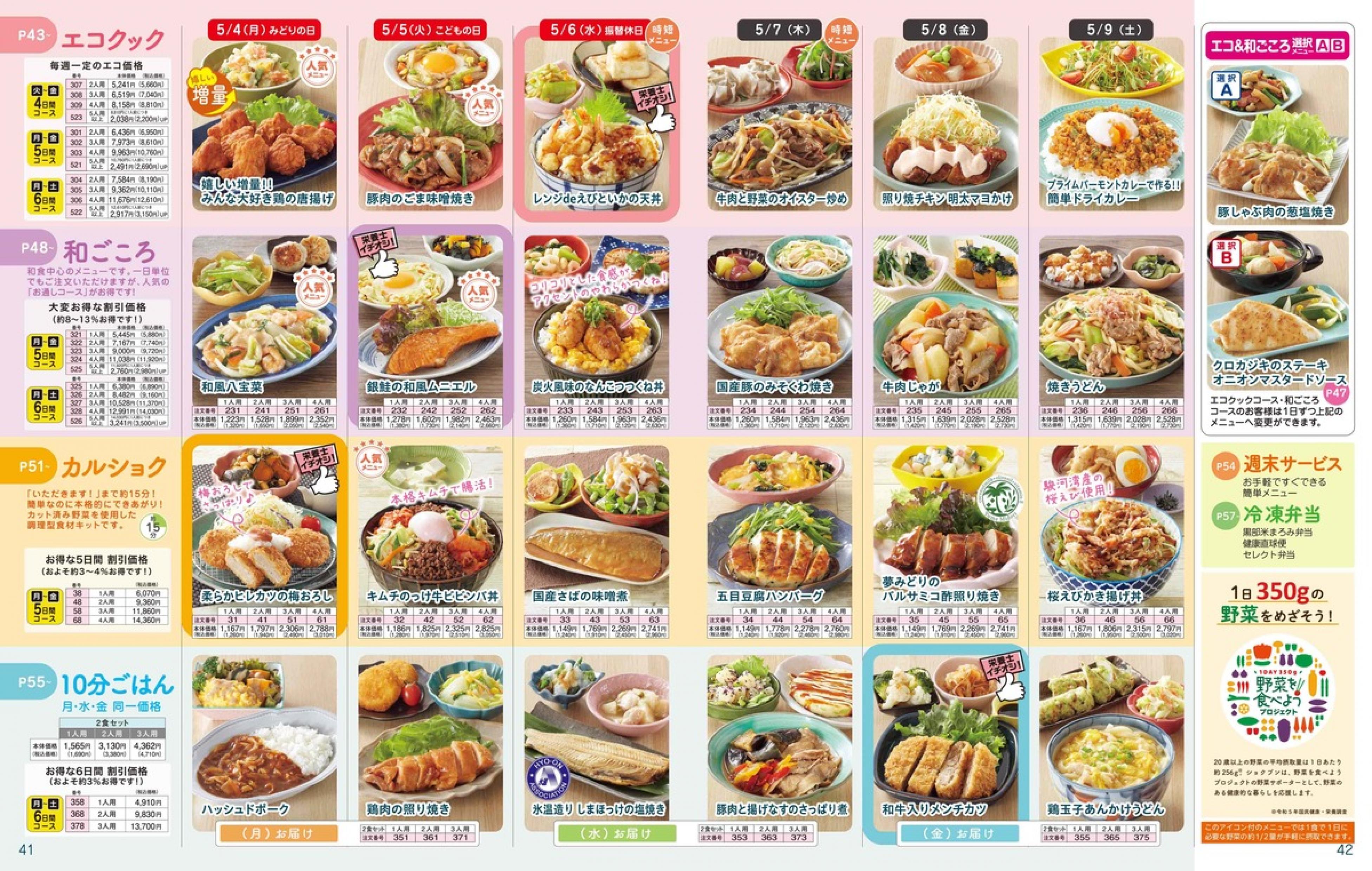 ▶2026年5月4日週 <4/22(水)締切> トップページカタログメニュー▶2026年5月4日週 <4/22(水)締切> 全商品一覧 Sミールキット 副菜プラス SpeeDish エコクック エコクック特典 選択メニュー特典 和ごころ カルショク 週末サービス 10分ごはん 1week 冷凍弁当 生活応援 パン・乳製品・お米・調味料 リクエスト グルメデイズ HALF&HALF 特集 美味しいもん特集 選んで!晩ごはんコース 選択メニュー カタログ一覧へ戻る