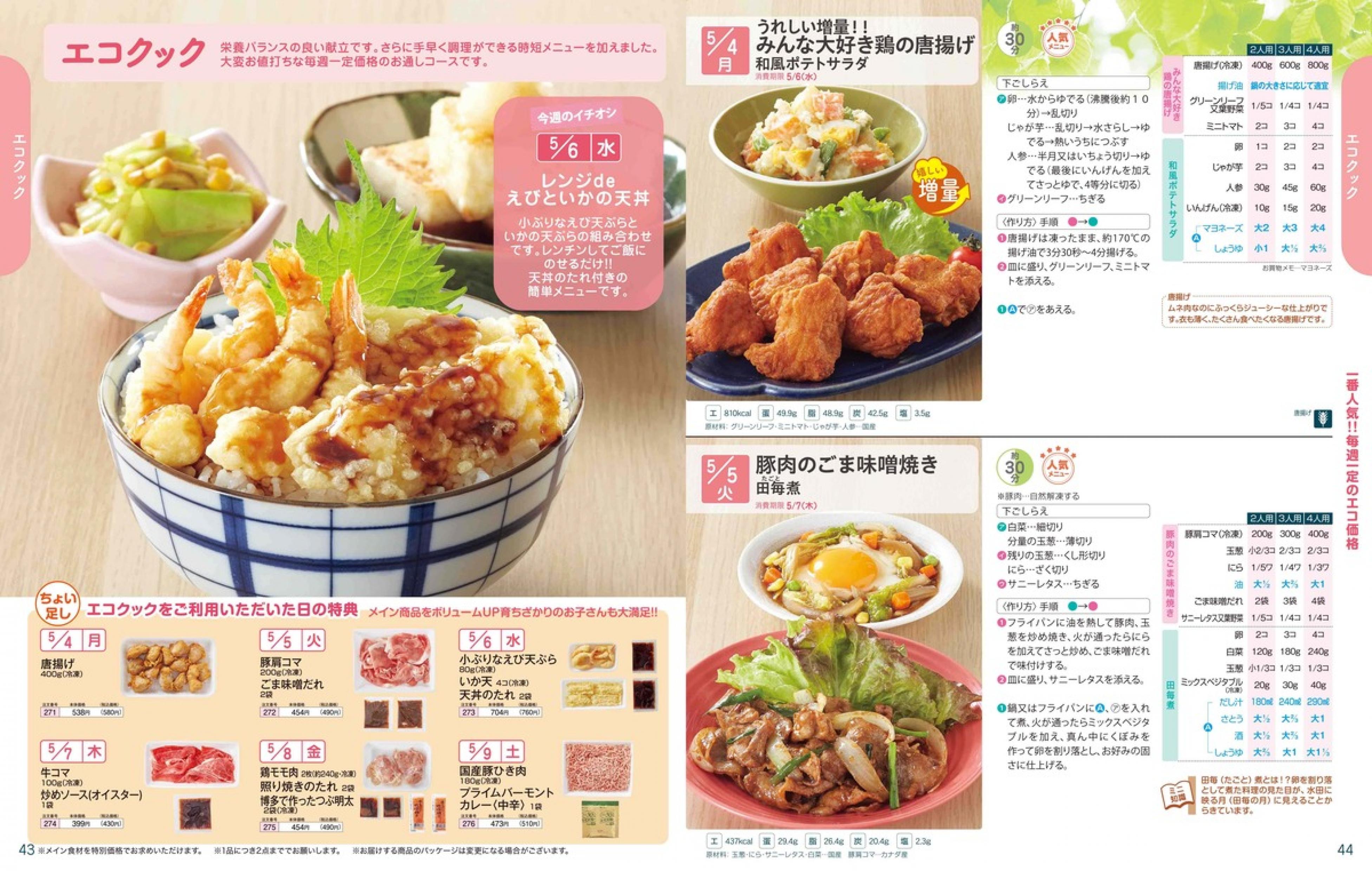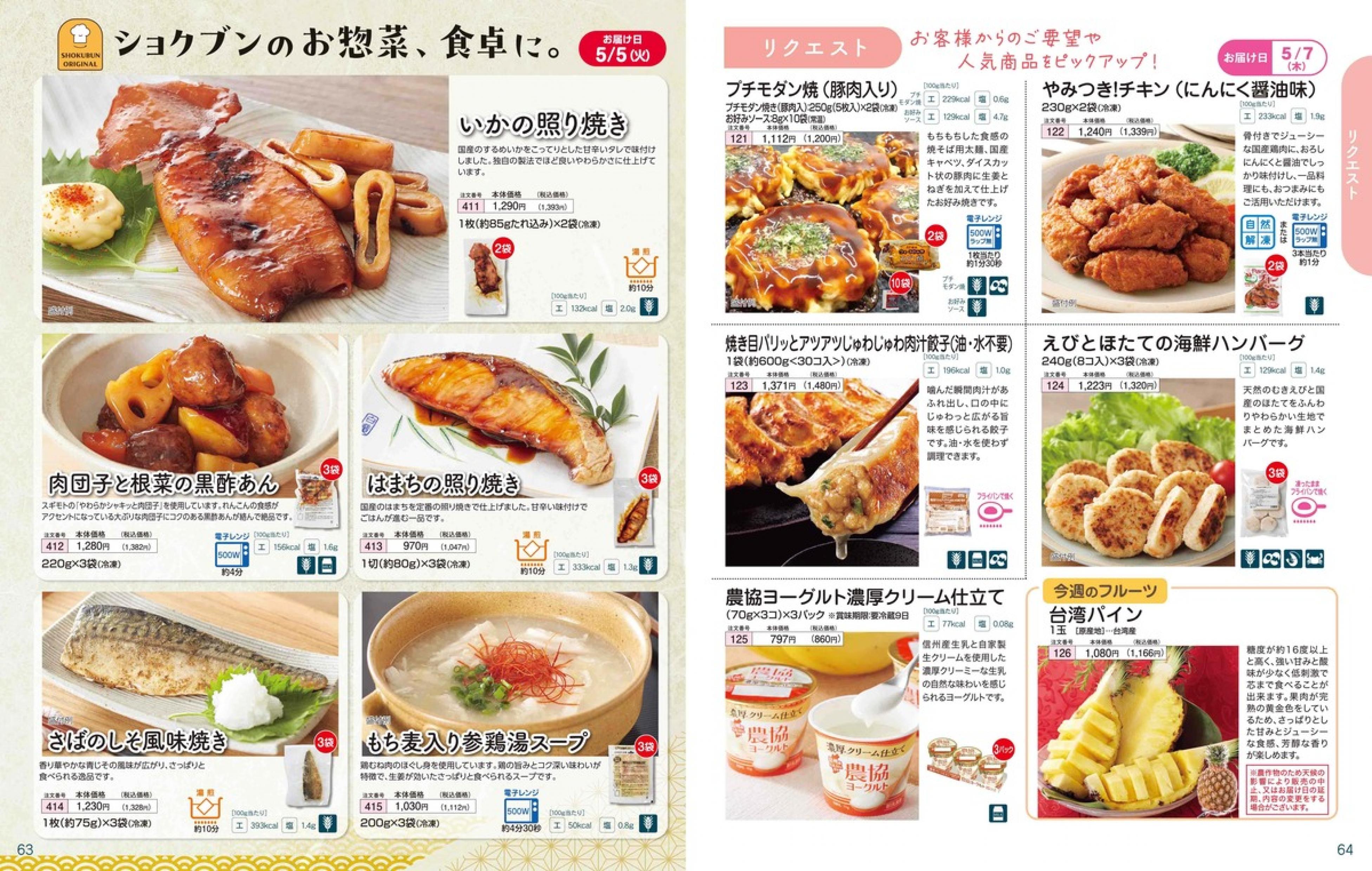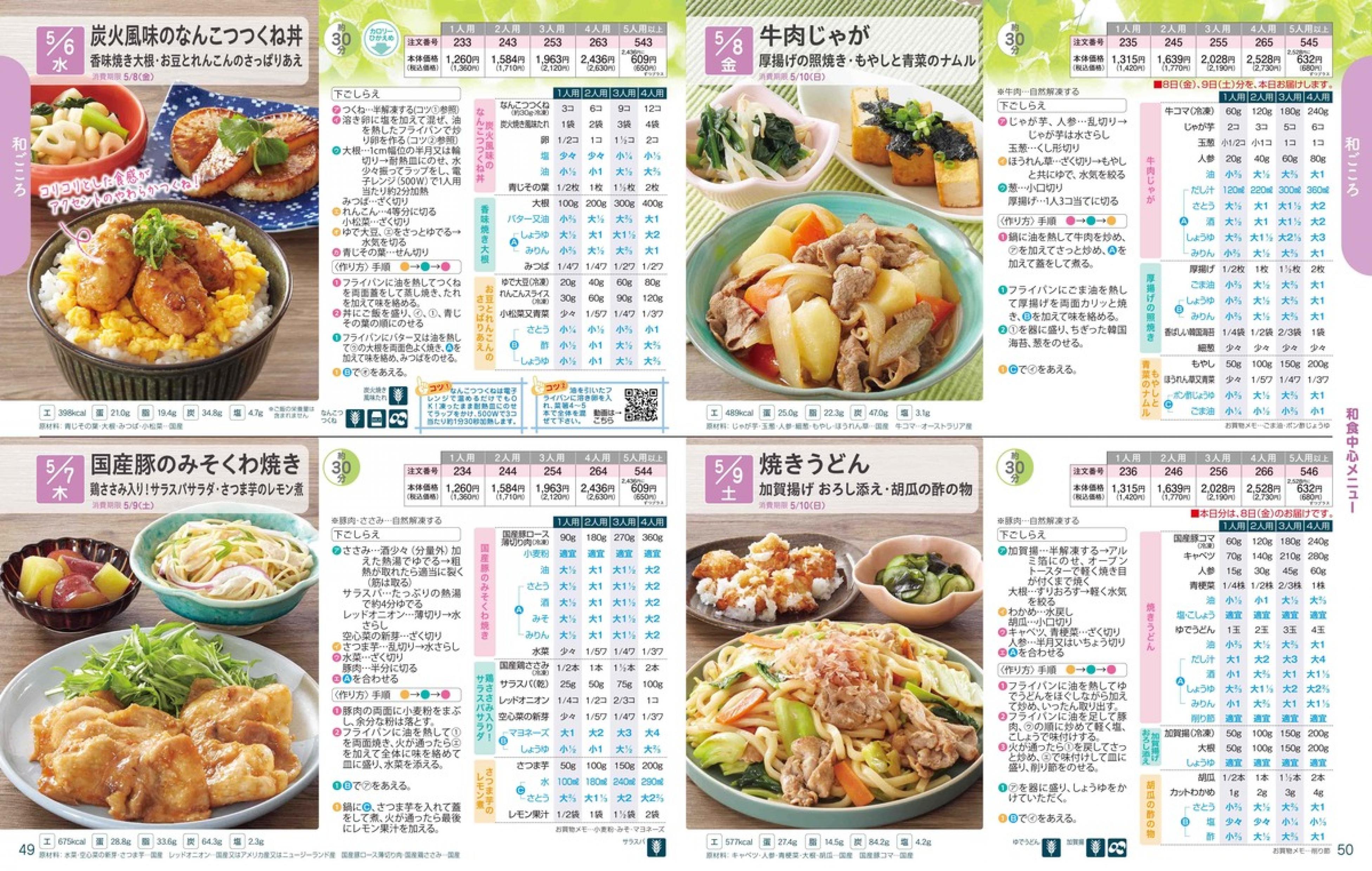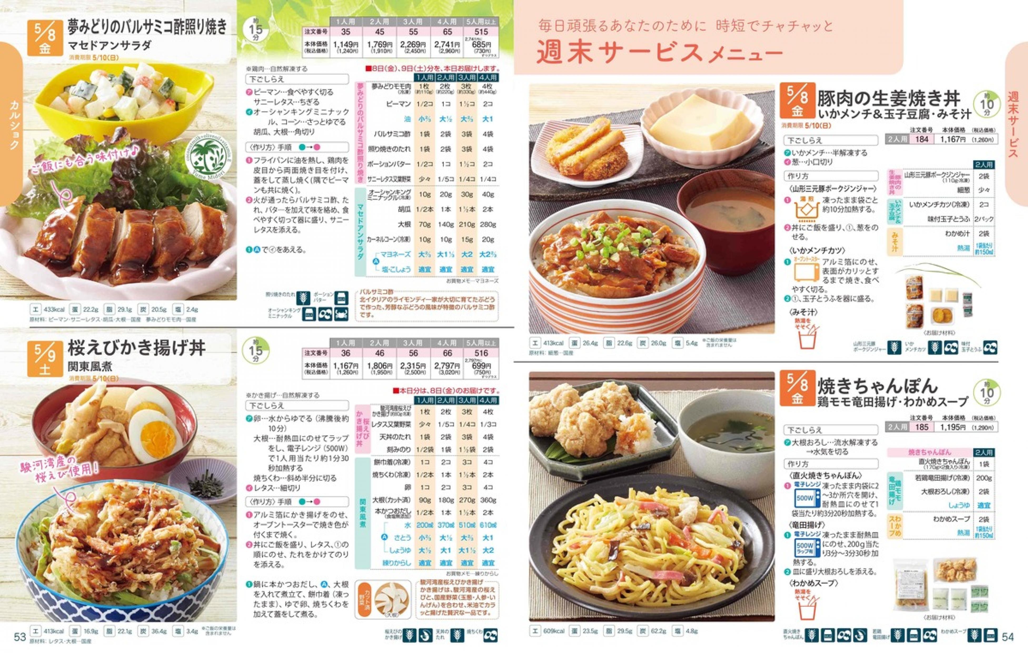 ▶2026年5月4日週 <4/22(水)締切> トップページカタログメニュー▶2026年5月4日週 <4/22(水)締切> 全商品一覧 Sミールキット 副菜プラス SpeeDish エコクック エコクック特典 選択メニュー特典 和ごころ カルショク 週末サービス 10分ごはん 1week 冷凍弁当 生活応援 パン・乳製品・お米・調味料 リクエスト グルメデイズ HALF&HALF 特集 美味しいもん特集 選んで!晩ごはんコース 選択メニュー カタログ一覧へ戻る