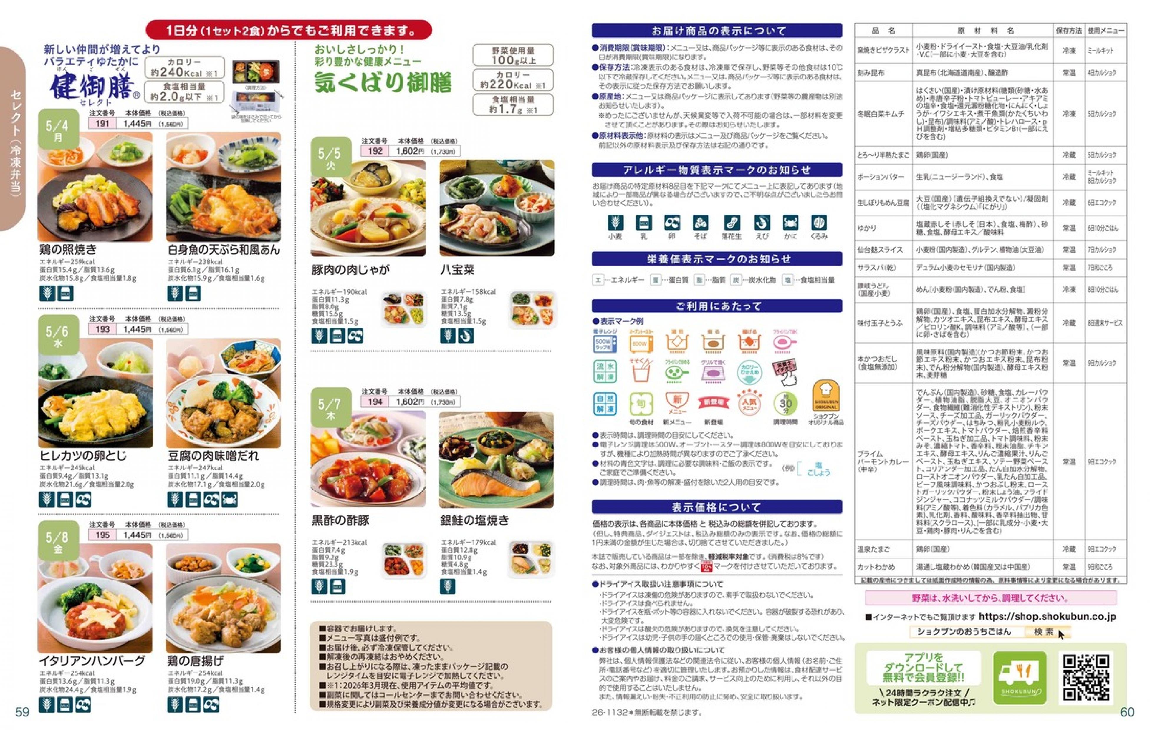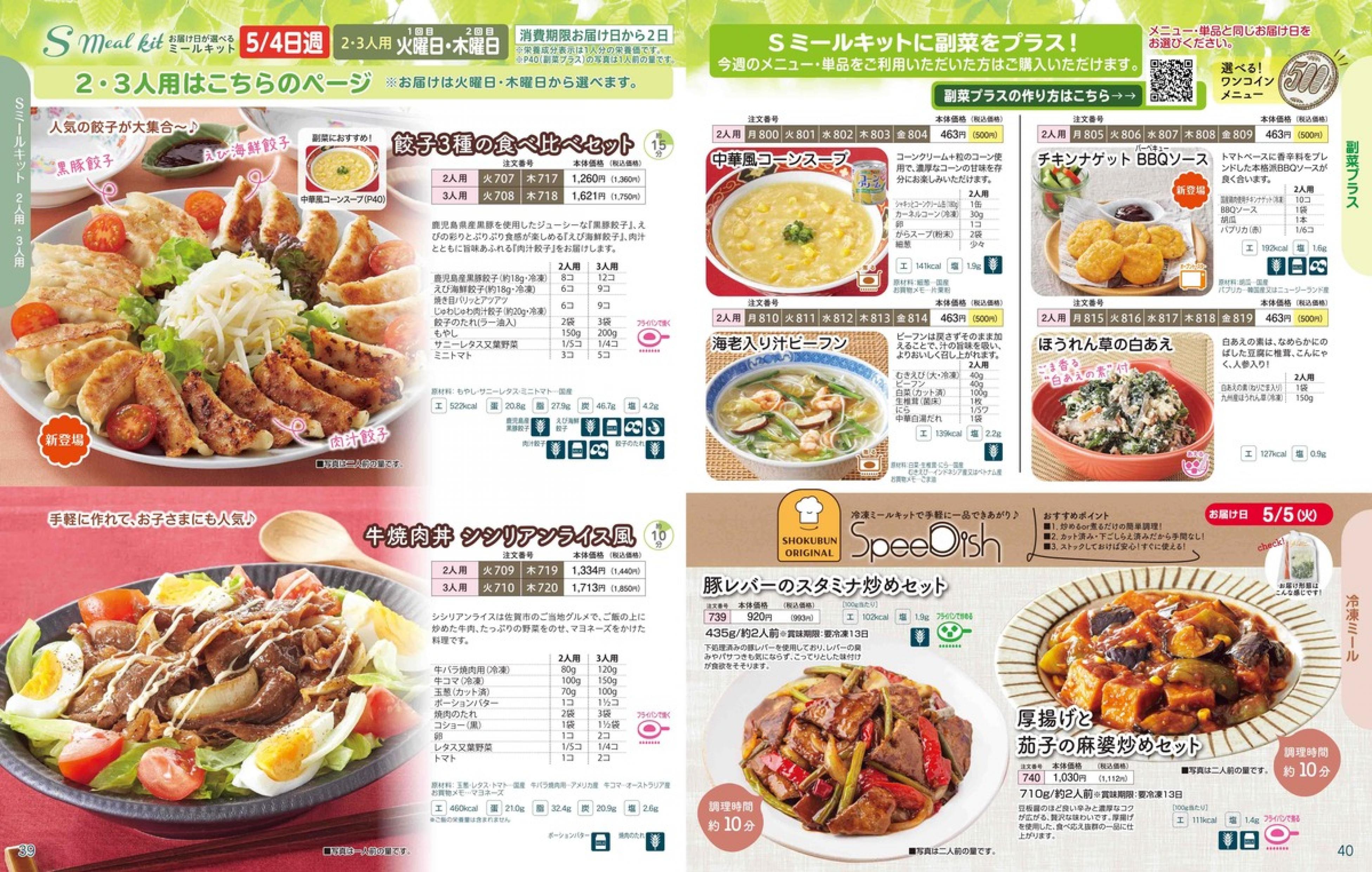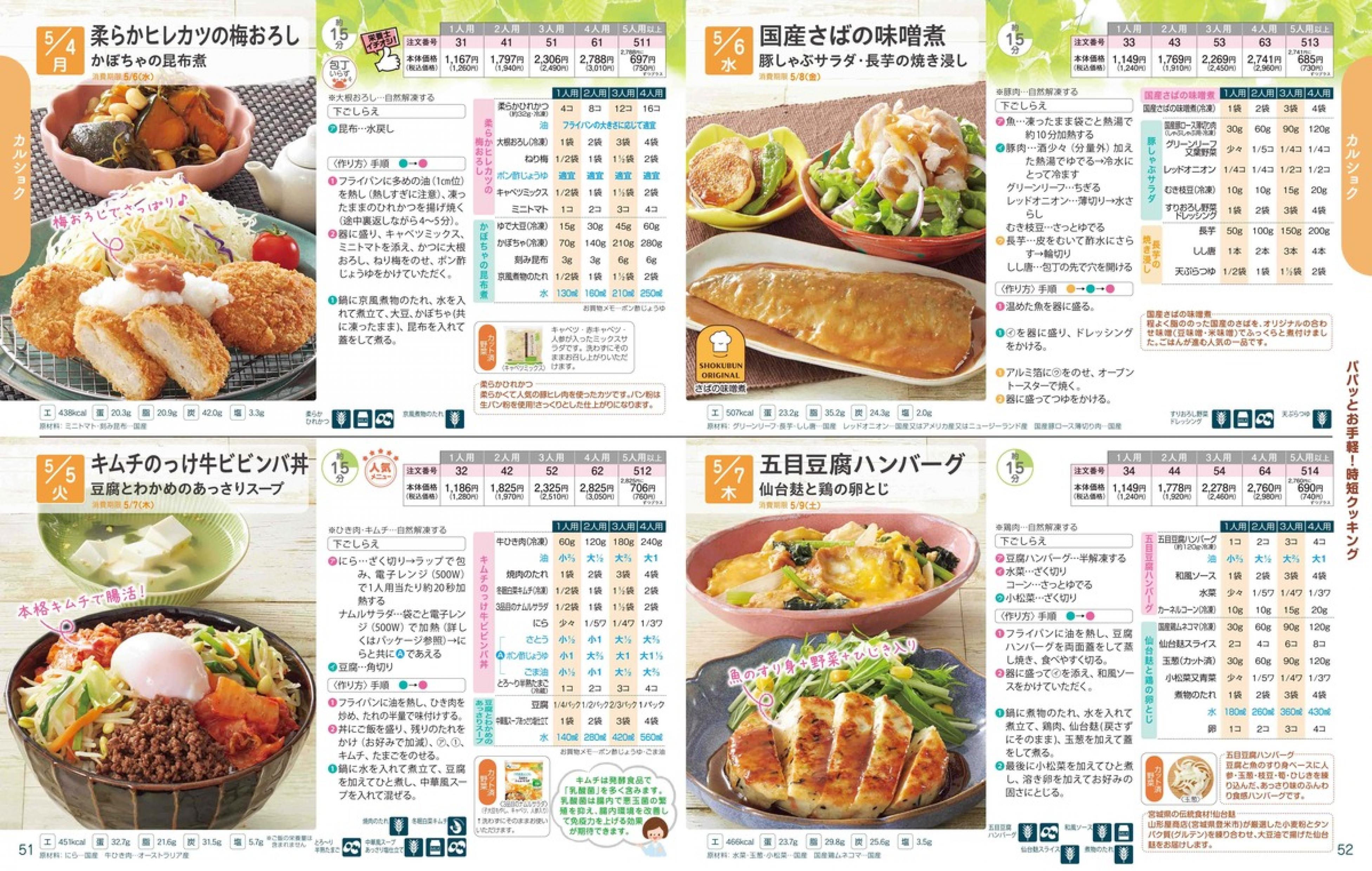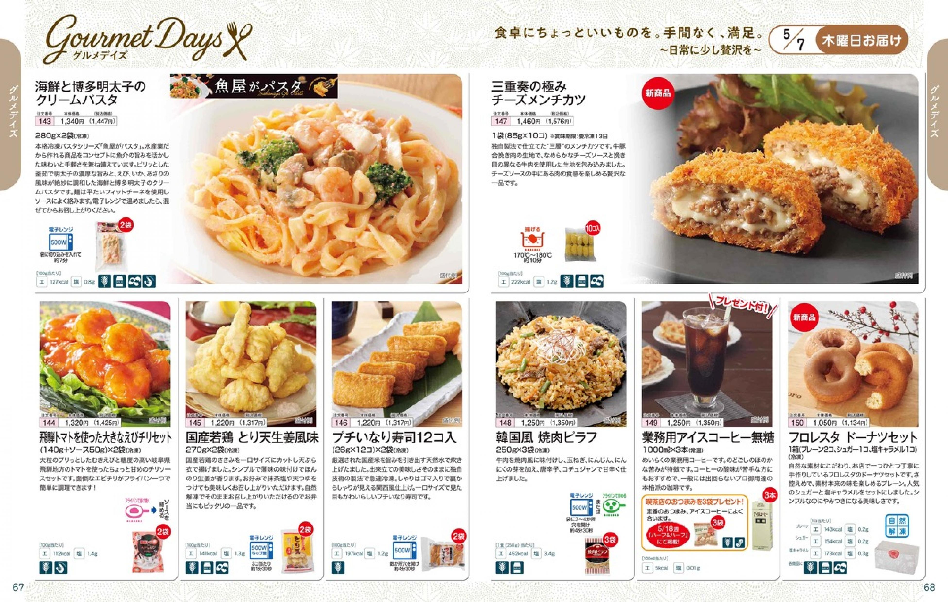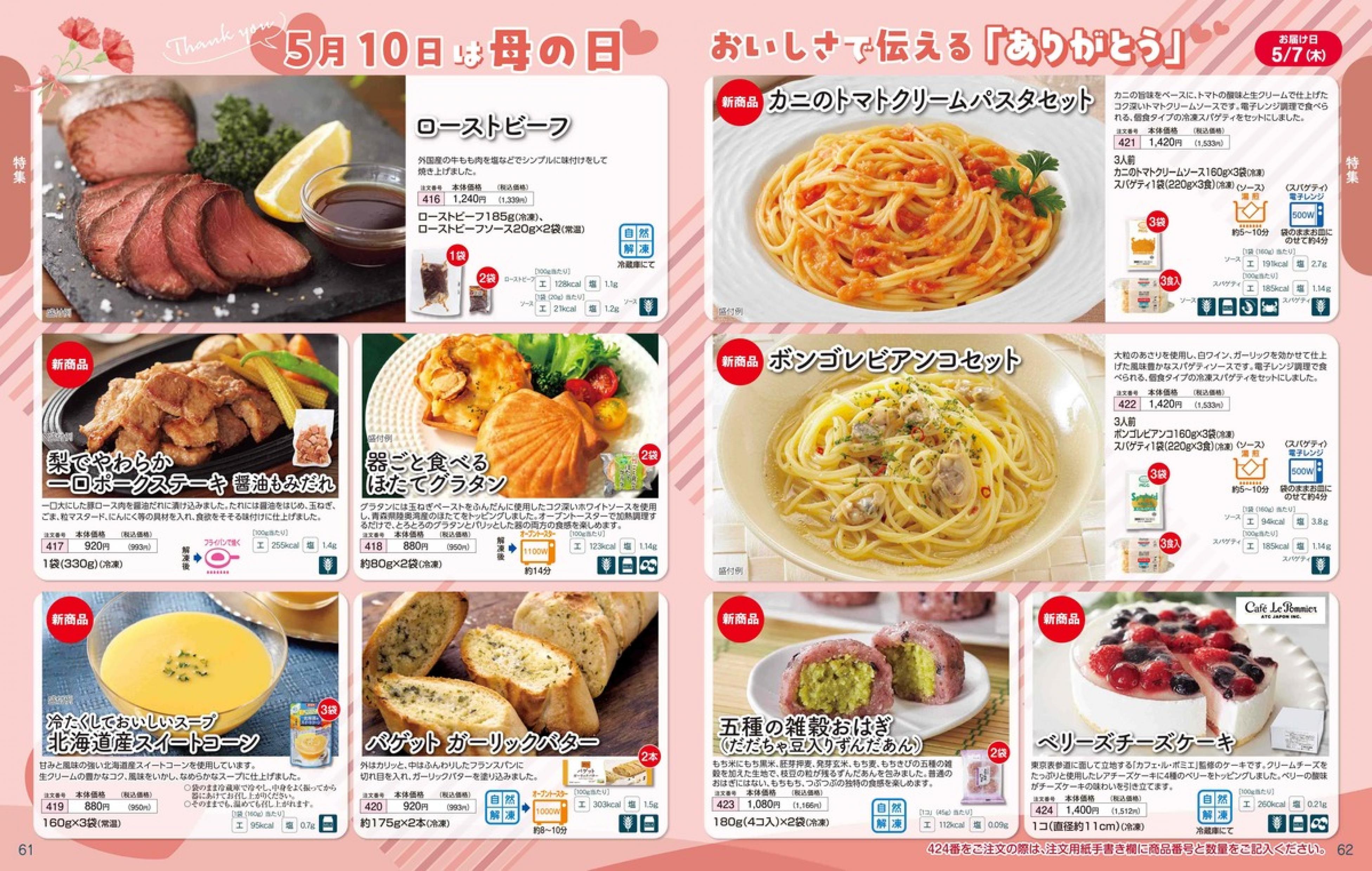 ▶2026年5月4日週 <4/22(水)締切> トップページカタログメニュー▶2026年5月4日週 <4/22(水)締切> 全商品一覧 Sミールキット 副菜プラス SpeeDish エコクック エコクック特典 選択メニュー特典 和ごころ カルショク 週末サービス 10分ごはん 1week 冷凍弁当 生活応援 パン・乳製品・お米・調味料 リクエスト グルメデイズ HALF&HALF 特集 美味しいもん特集 選んで!晩ごはんコース 選択メニュー カタログ一覧へ戻る