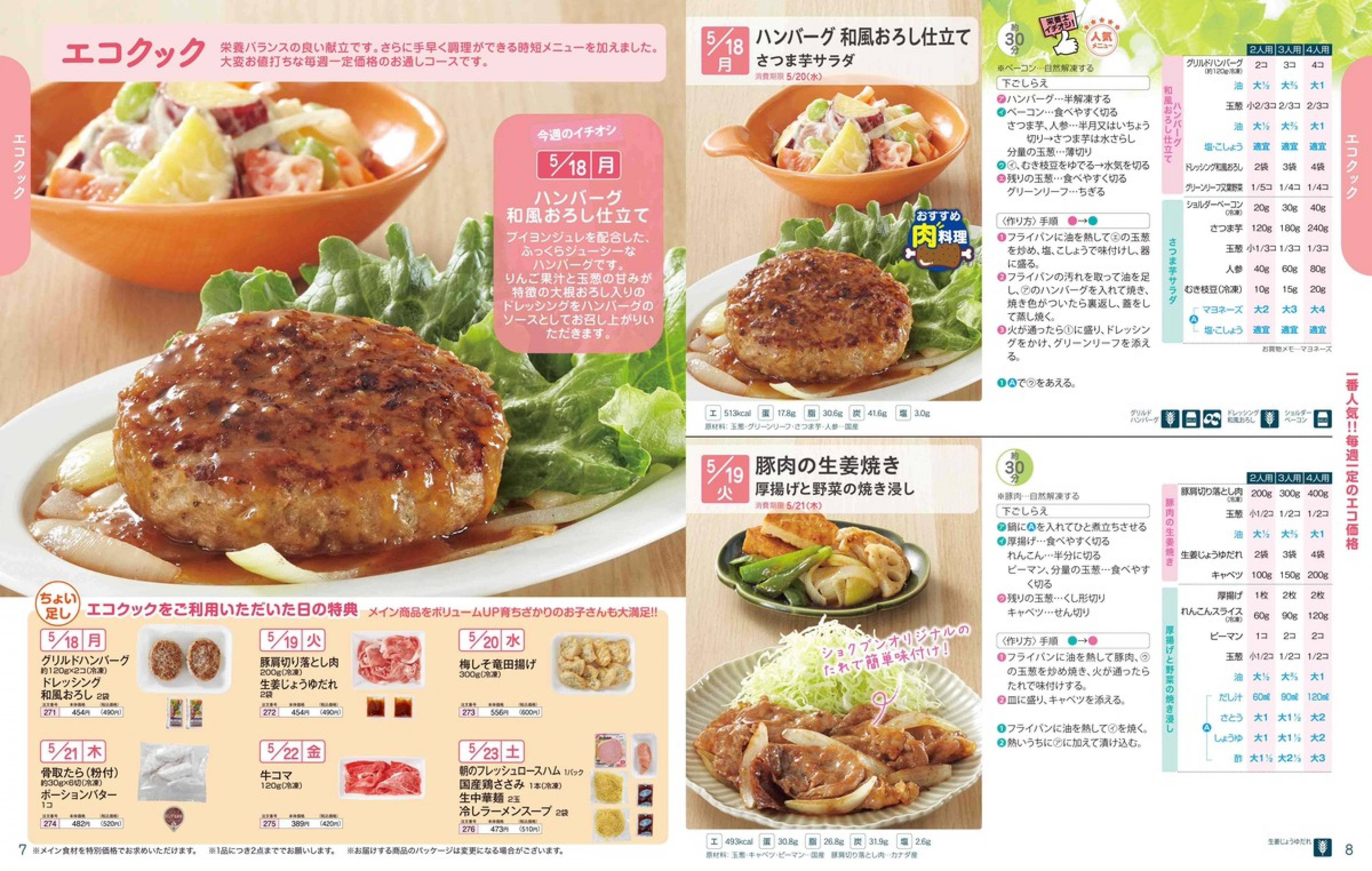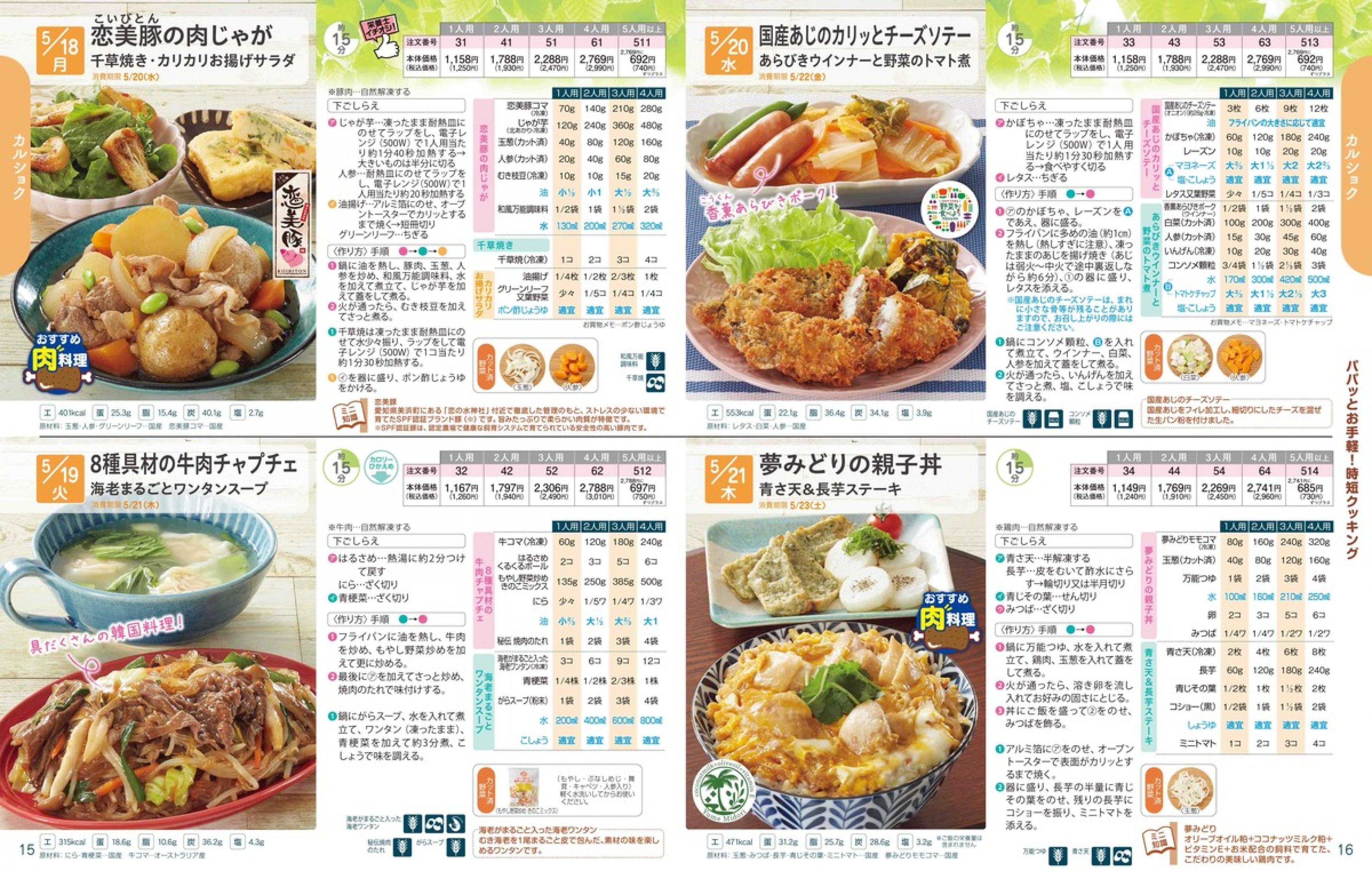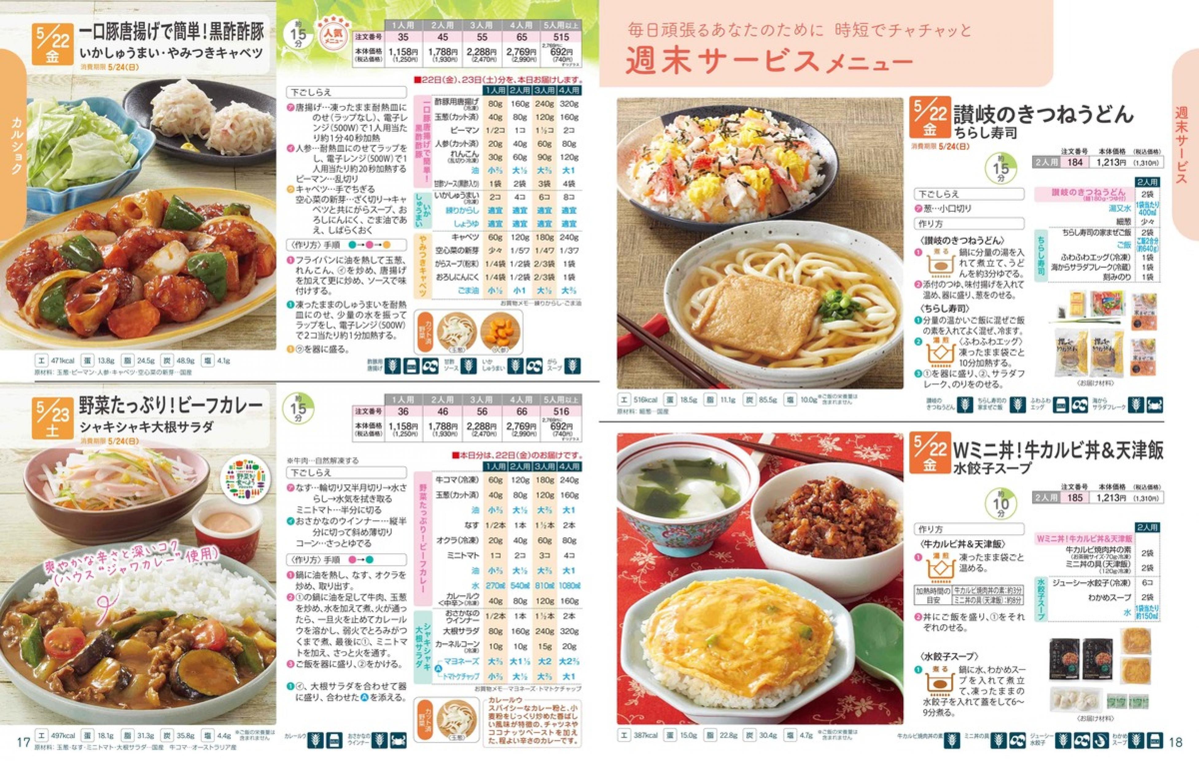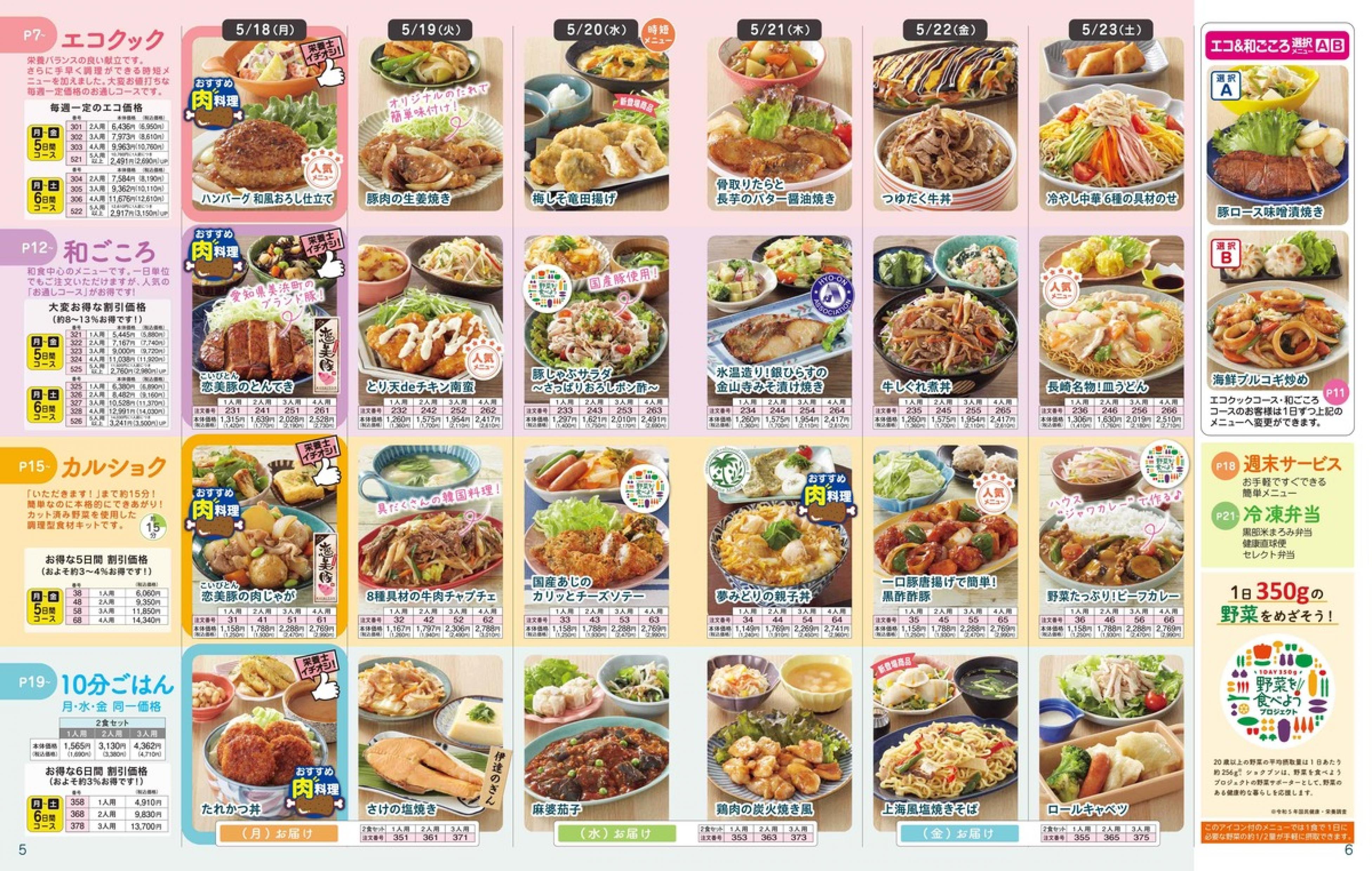 ▶2026年5月18日週 <5/13(水)締切> トップページカタログメニュー▶2026年5月18日週 <5/13(水)締切> 全商品一覧 Sミールキット 副菜プラス SpeeDish エコクック エコクック特典 選択メニュー特典 和ごころ カルショク 週末サービス 10分ごはん 1week 冷凍弁当 生活応援 パン・乳製品・お米・調味料 リクエスト グルメデイズ HALF&HALF 特集 美味しいもん特集 雑貨 選んで!晩ごはんコース 選択メニュー カタログ一覧へ戻る