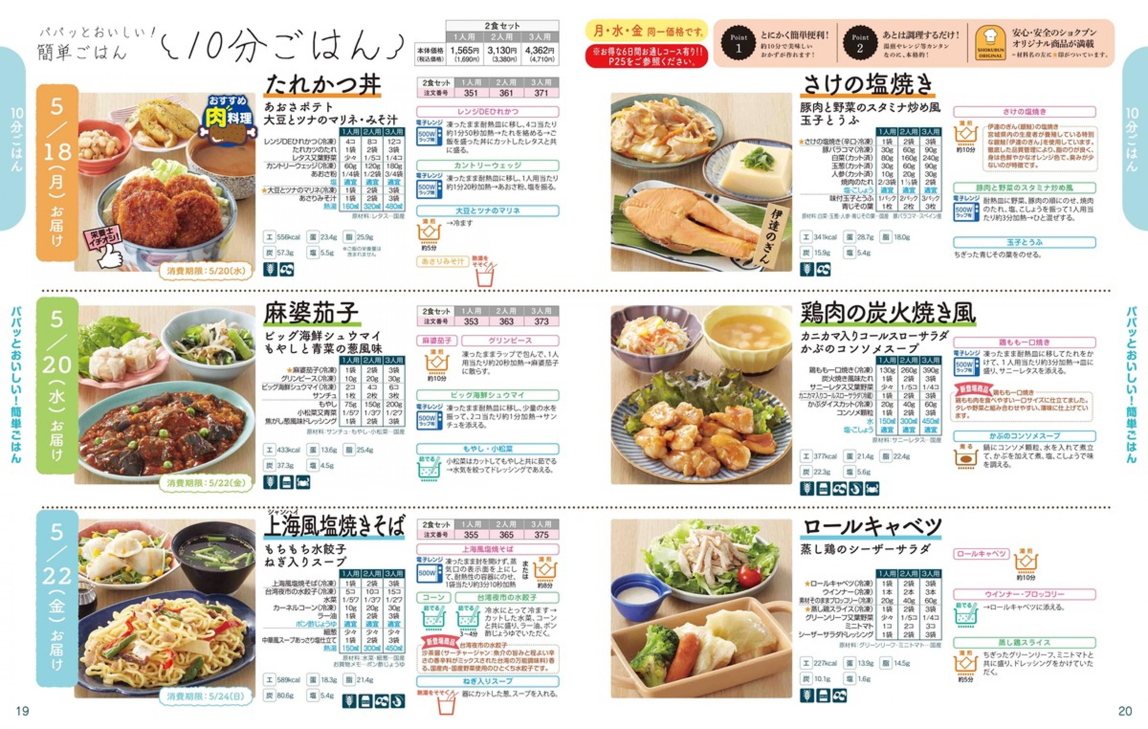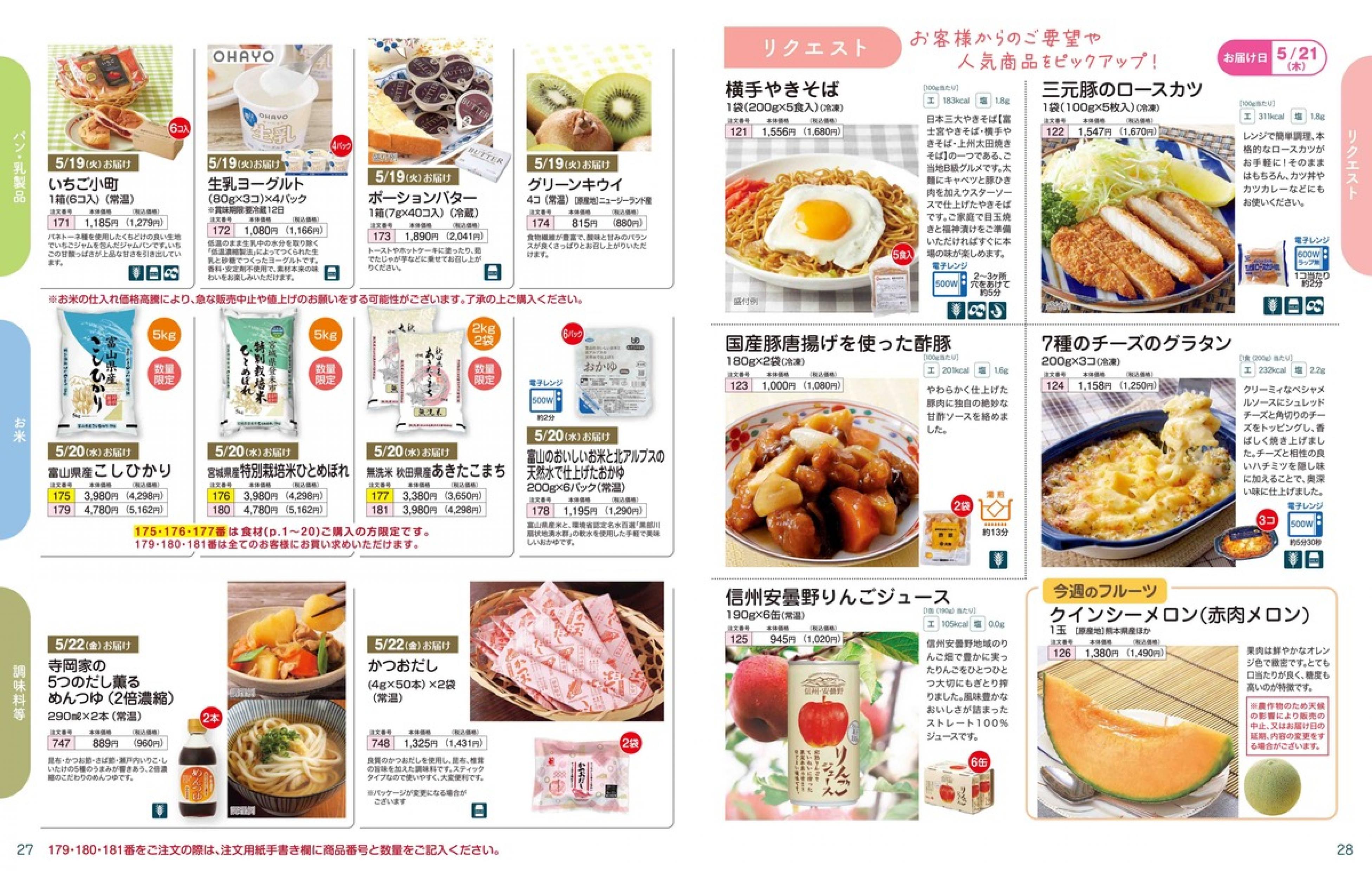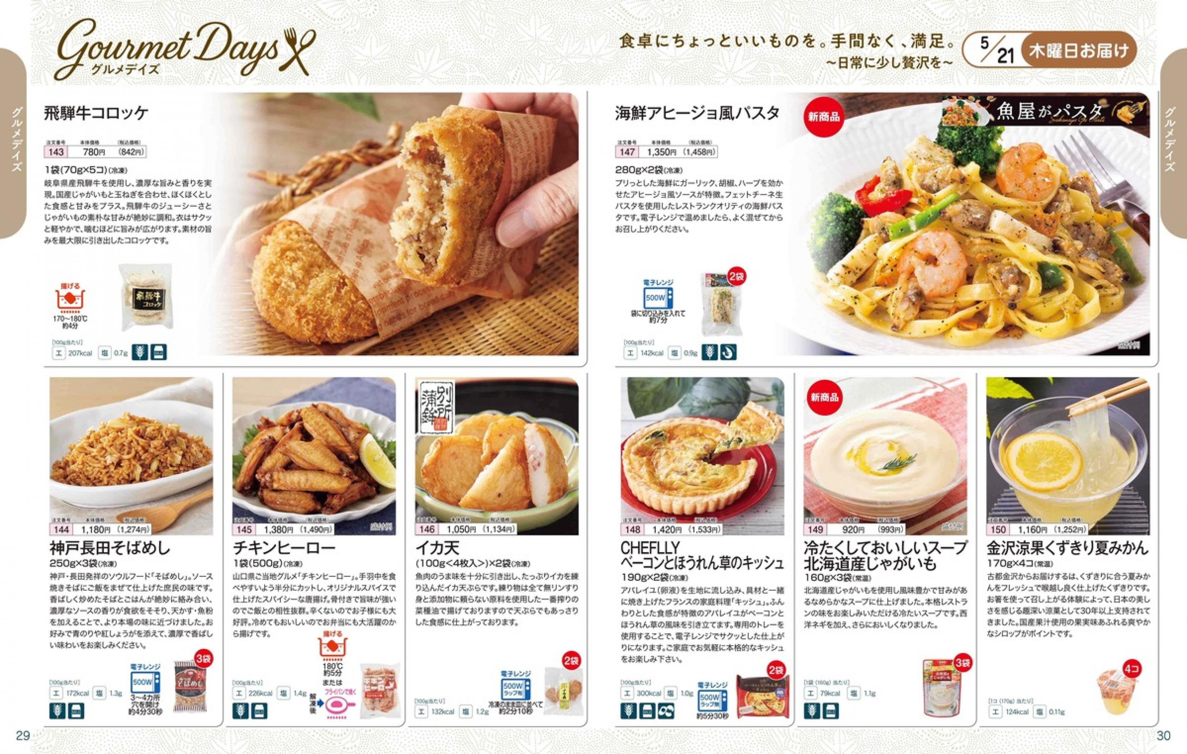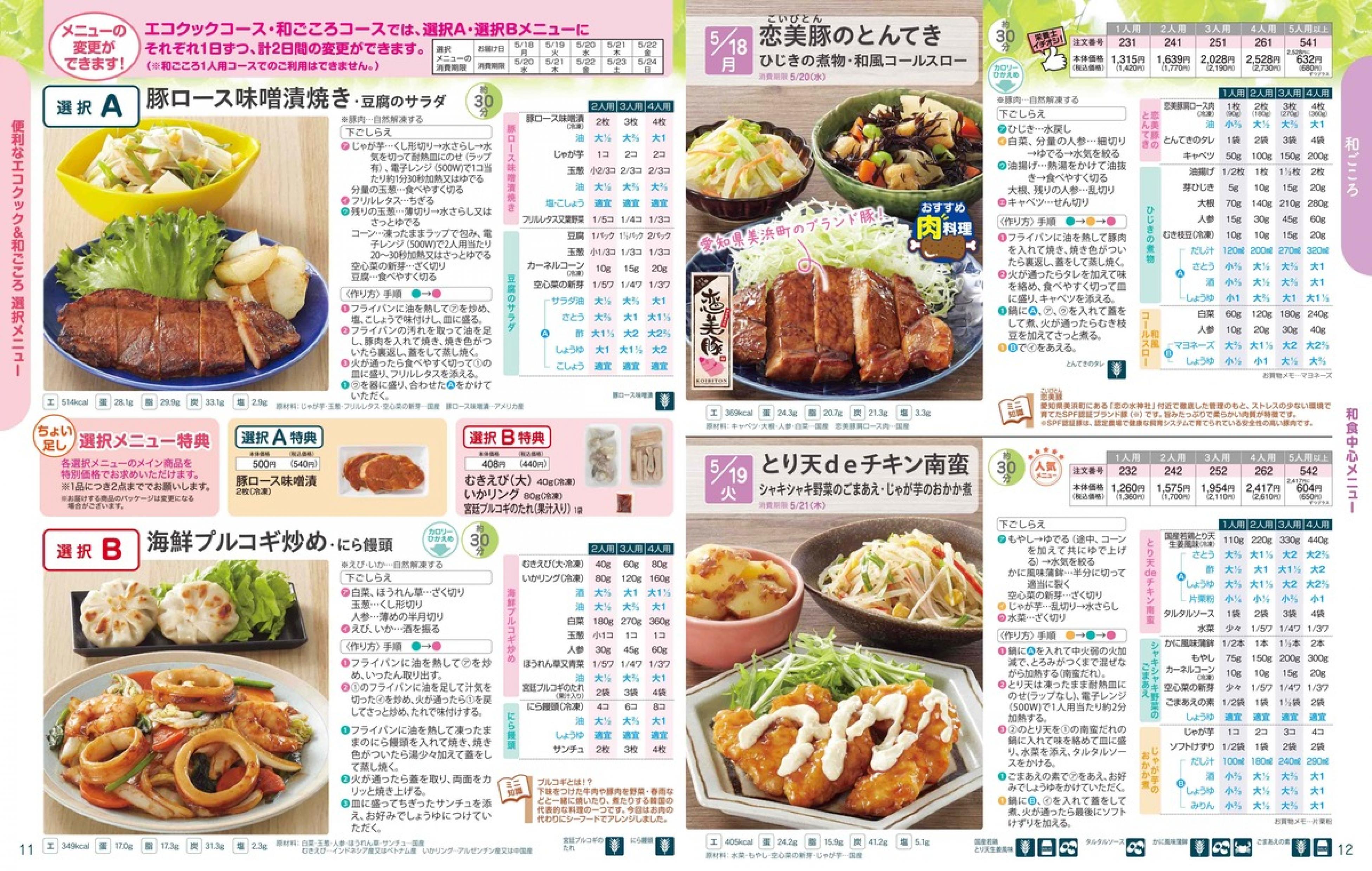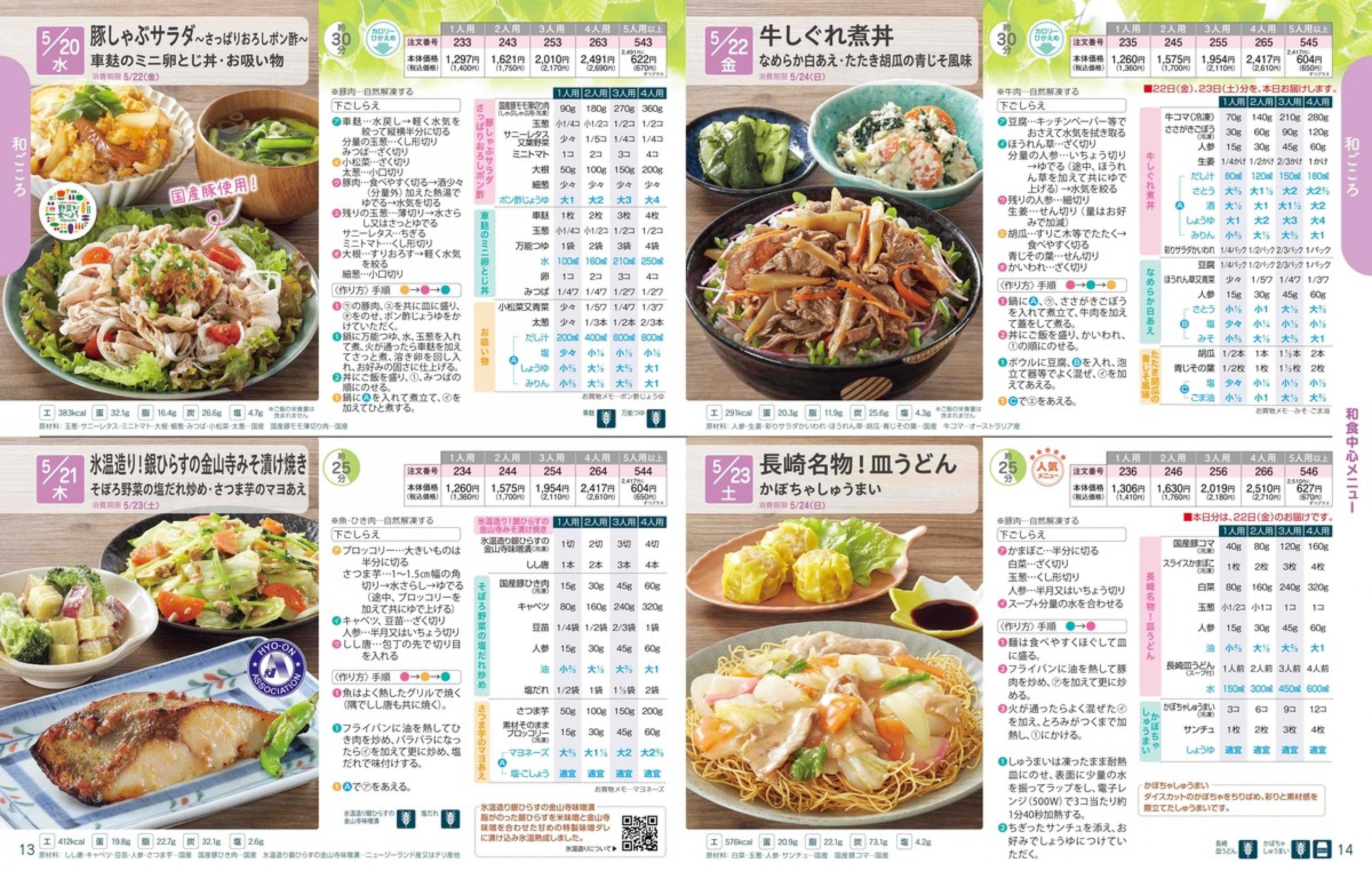 ▶2026年5月18日週 <5/13(水)締切> トップページカタログメニュー▶2026年5月18日週 <5/13(水)締切> 全商品一覧 Sミールキット 副菜プラス SpeeDish エコクック エコクック特典 選択メニュー特典 和ごころ カルショク 週末サービス 10分ごはん 1week 冷凍弁当 生活応援 パン・乳製品・お米・調味料 リクエスト グルメデイズ HALF&HALF 特集 美味しいもん特集 雑貨 選んで!晩ごはんコース 選択メニュー カタログ一覧へ戻る