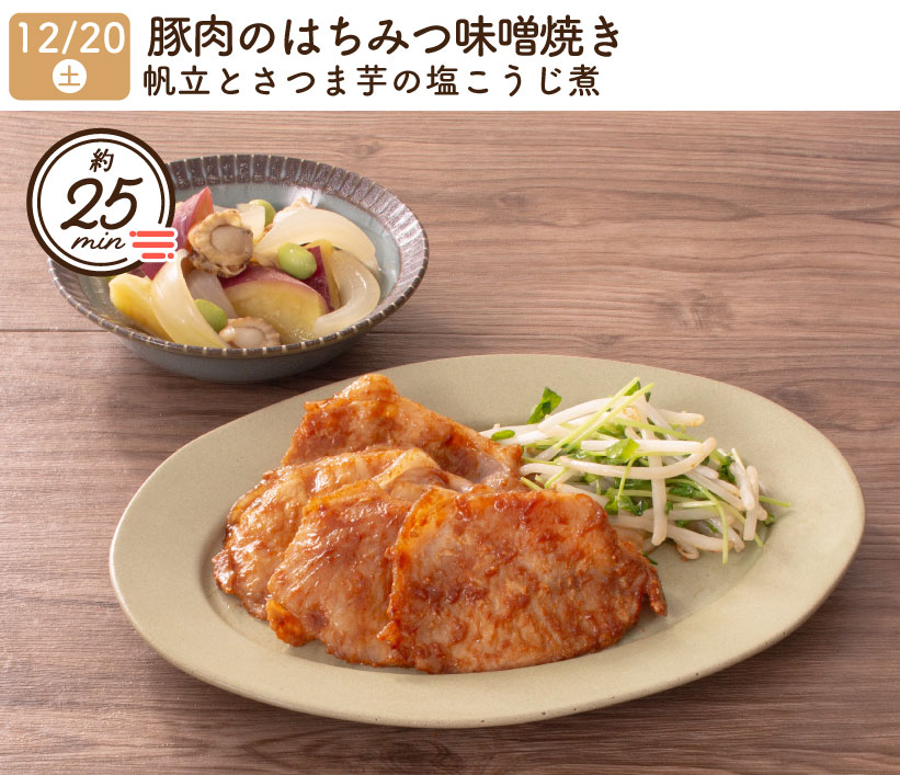 2025/12/20(土) 1week『豚肉のはちみつ味噌焼き・帆立とさつま芋の塩こうじ煮』
