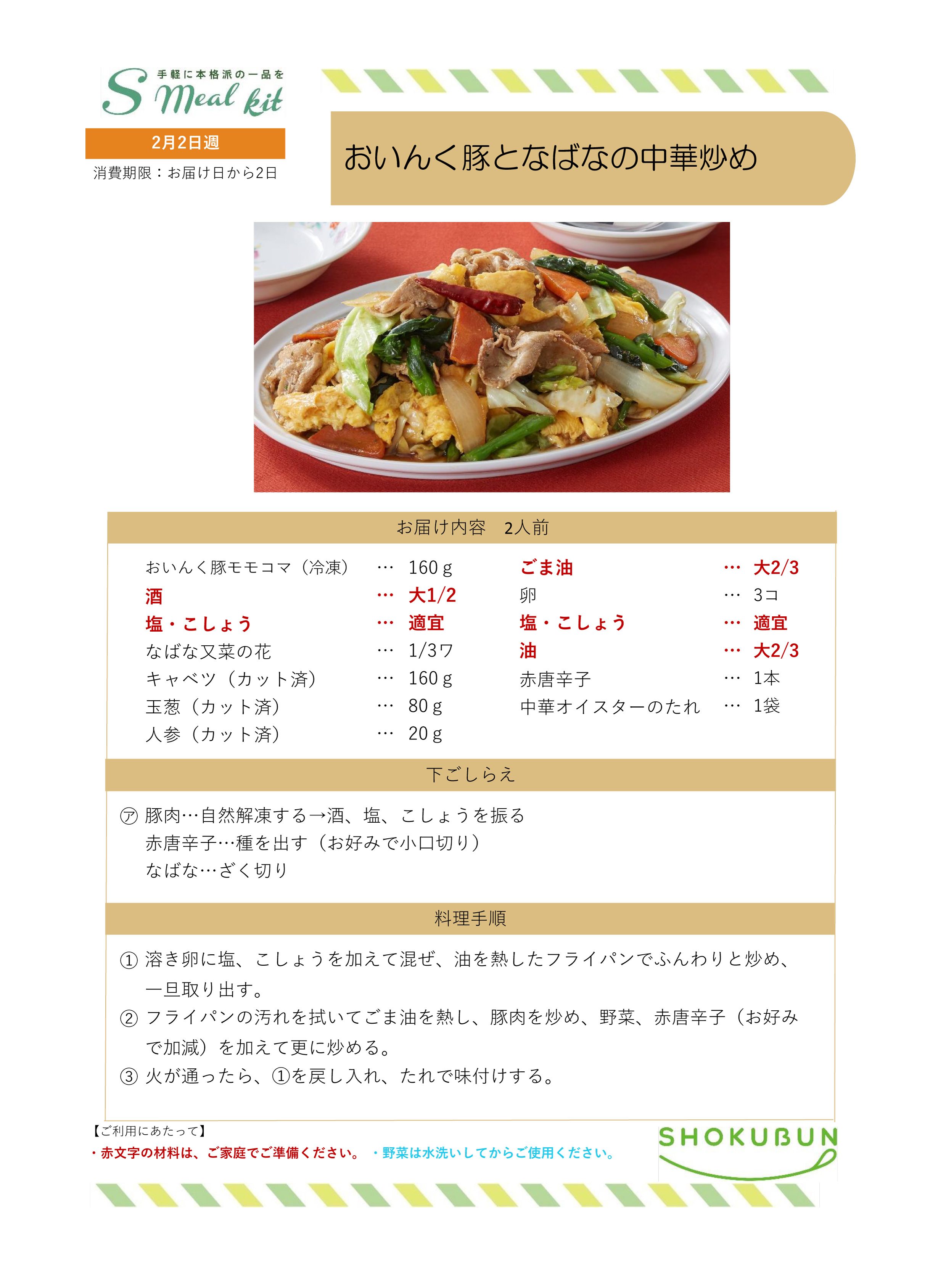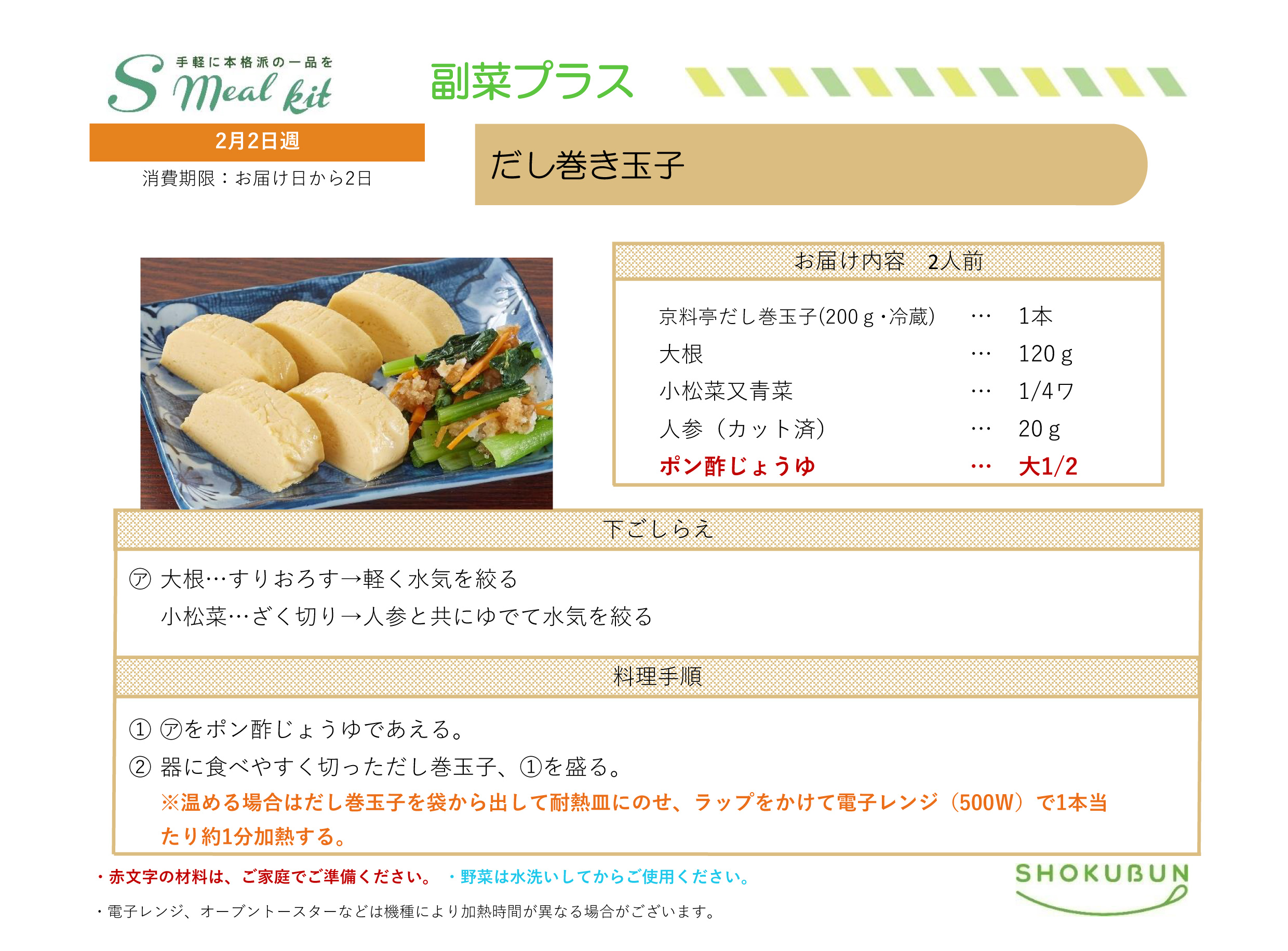 2/2週 Sミールキット・副菜プラス 作り方