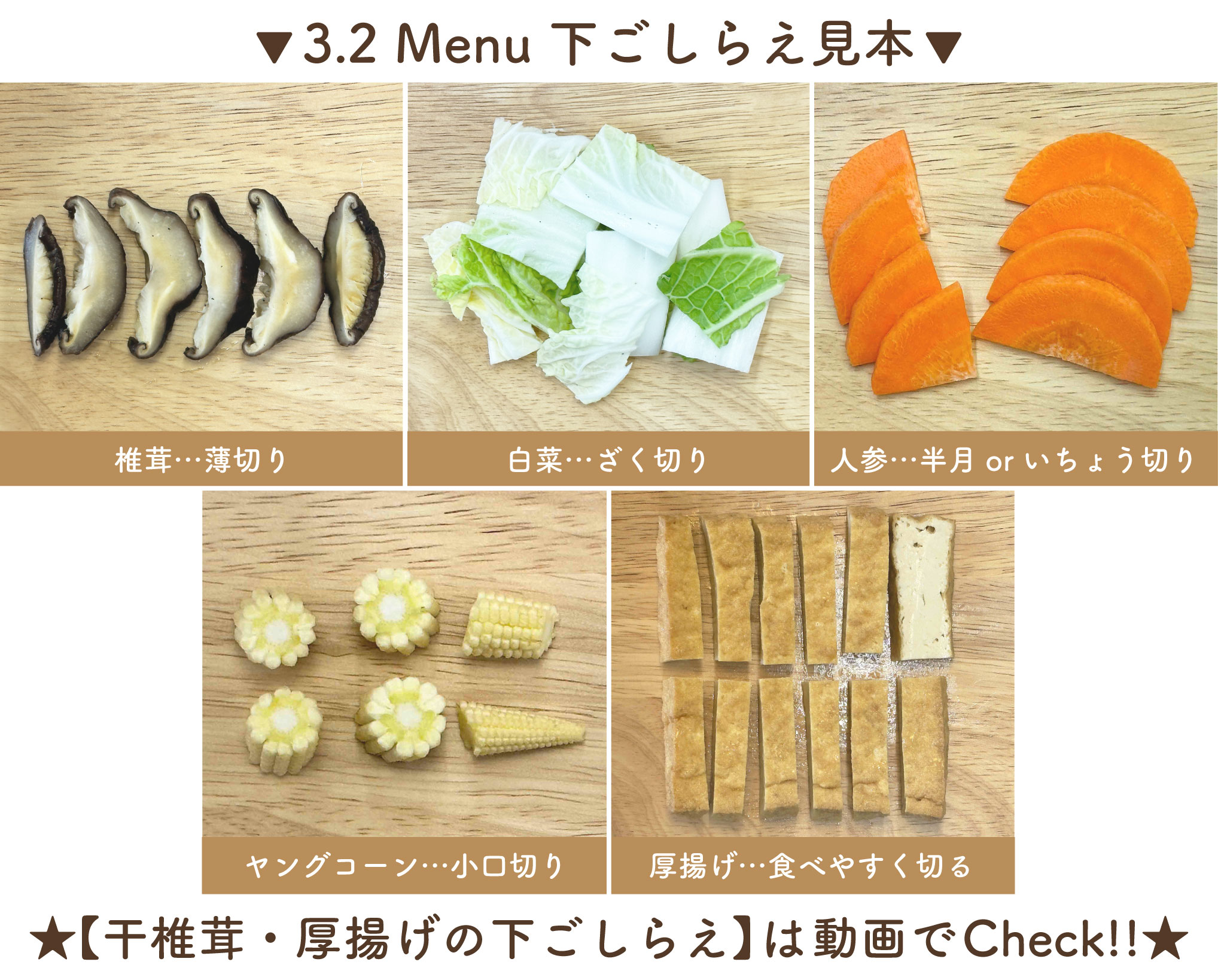 ㋐椎茸・・・ぬるま湯戻し→薄切り