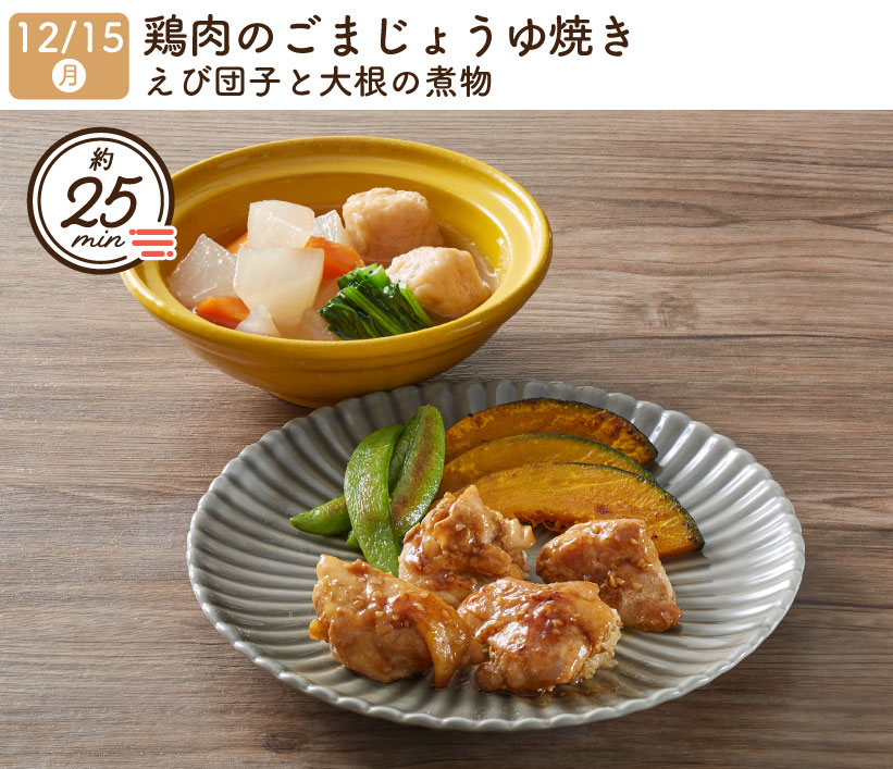 2025/12/15(月) 1week『鶏肉のごまじょうゆ焼き・えび団子と大根の煮物』