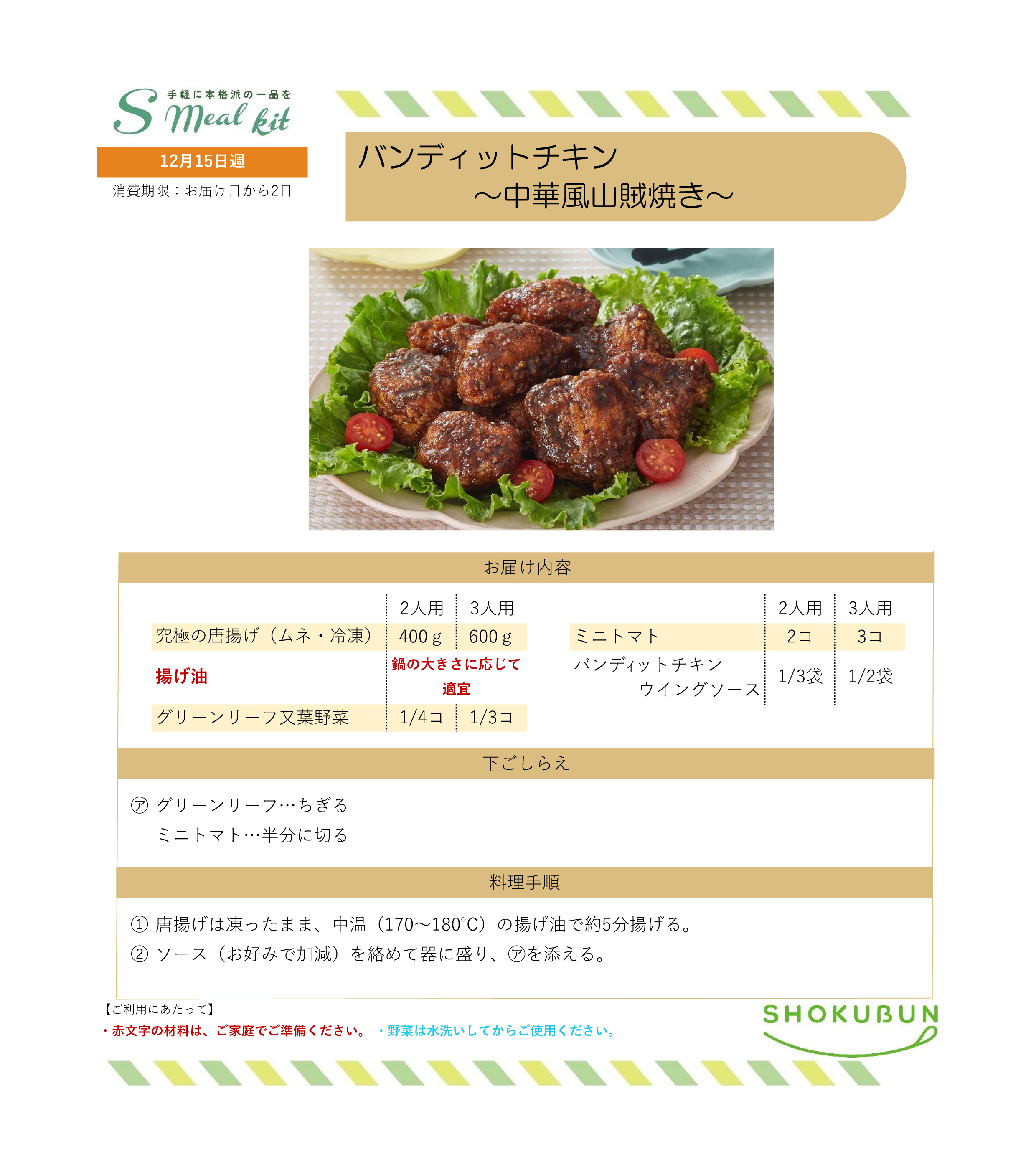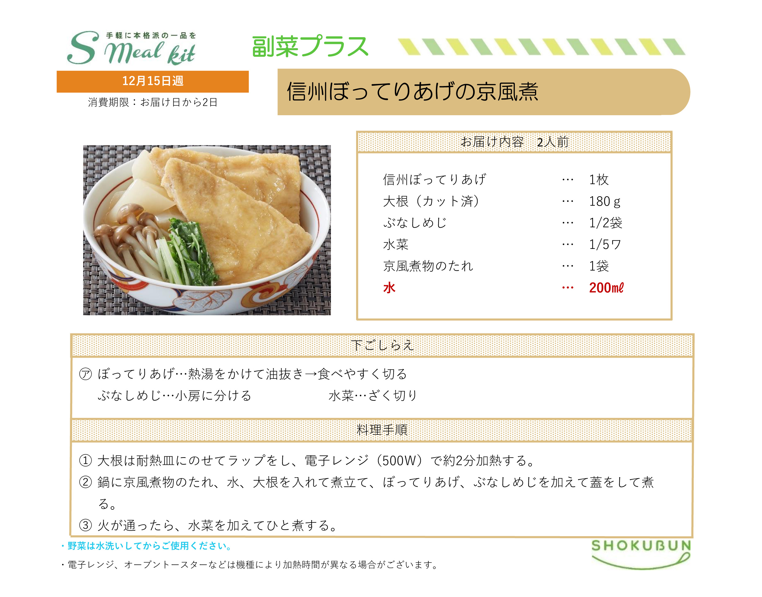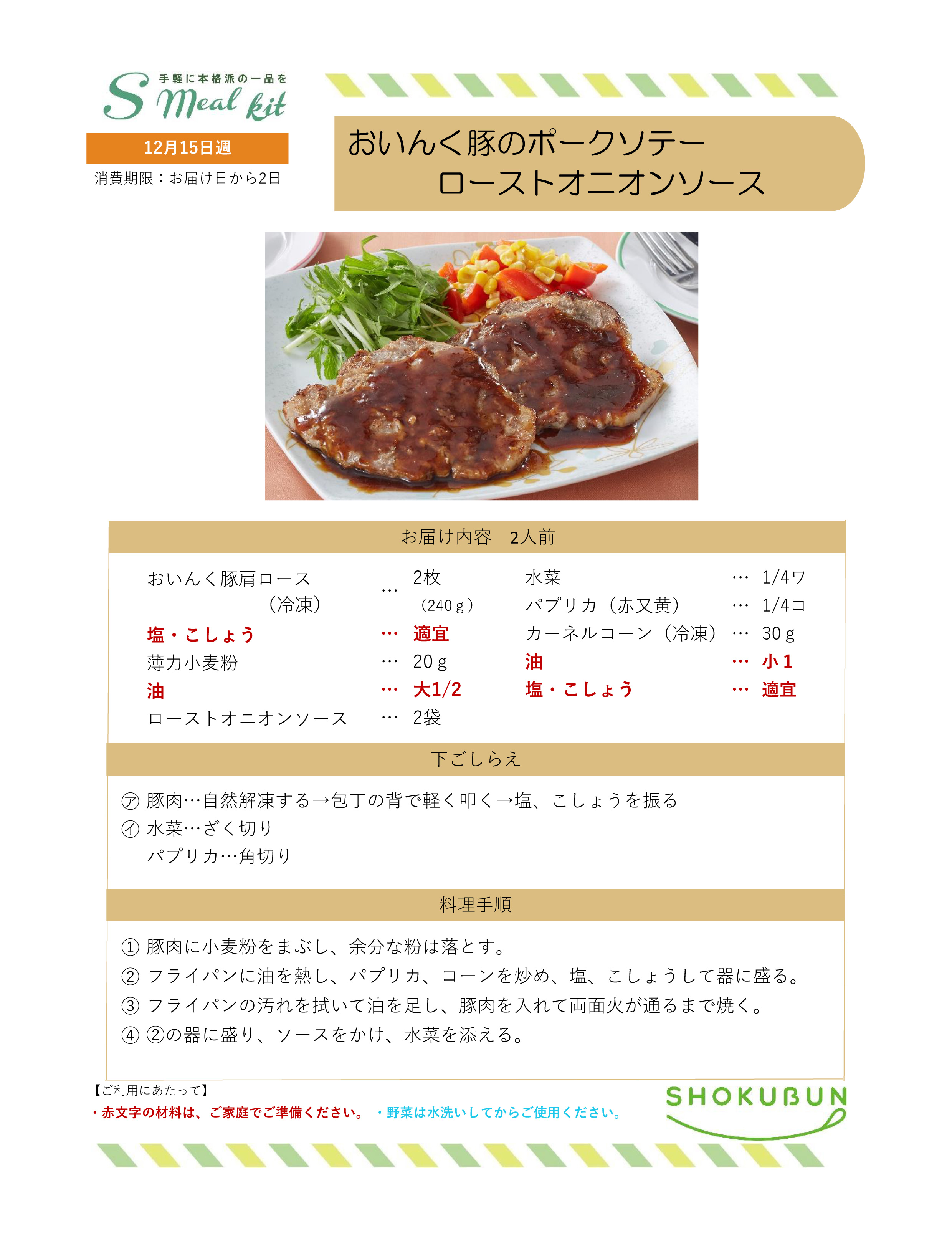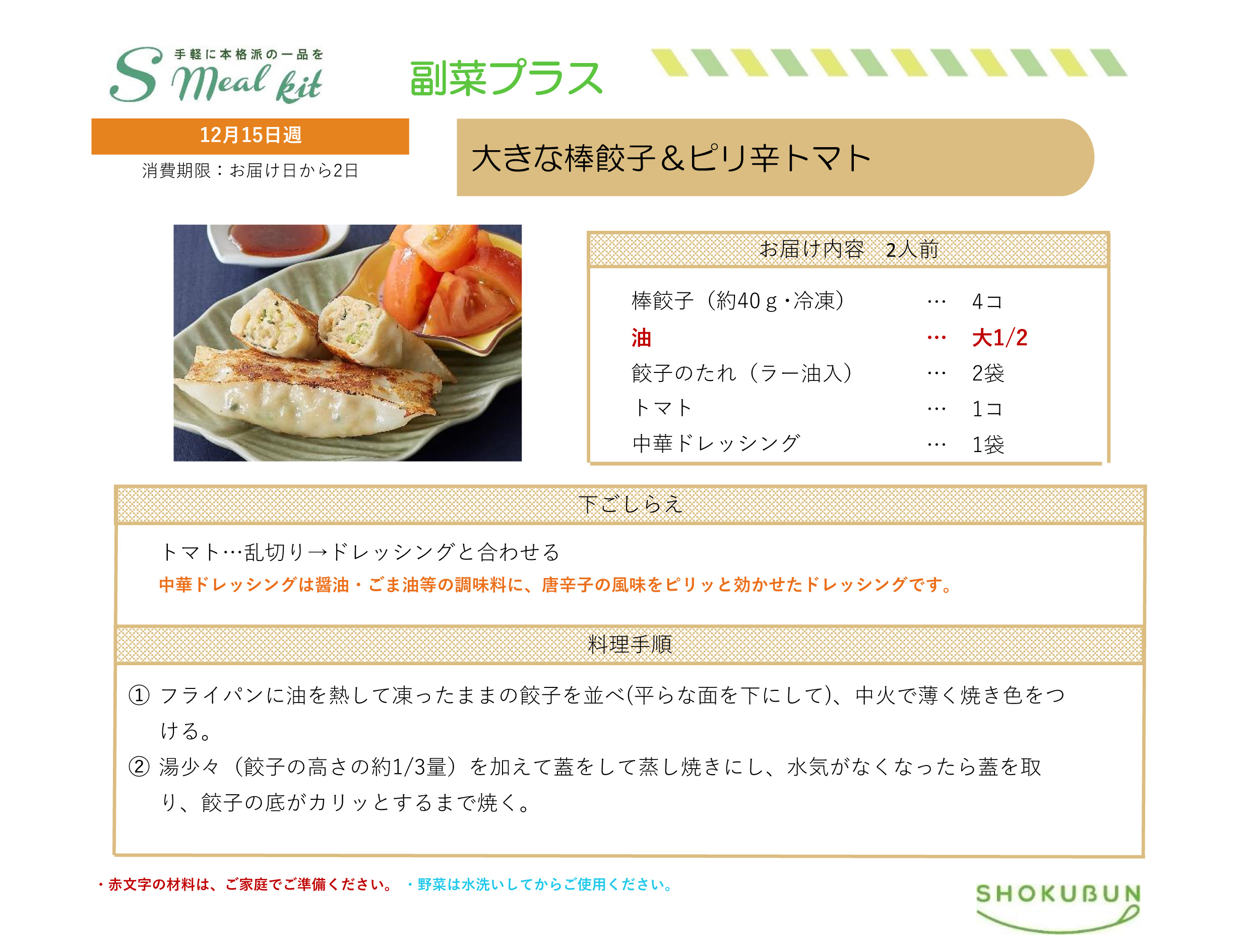 12/15週 Sミールキット・副菜プラス 作り方