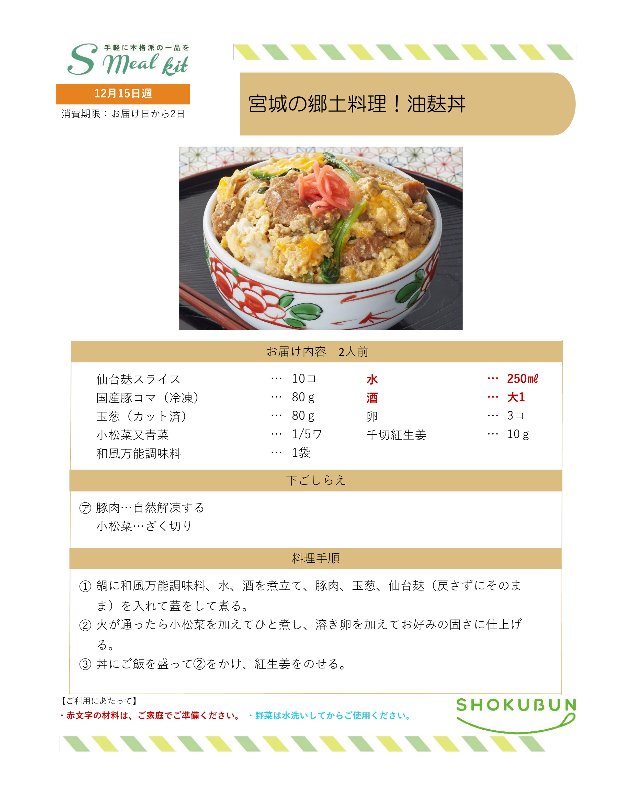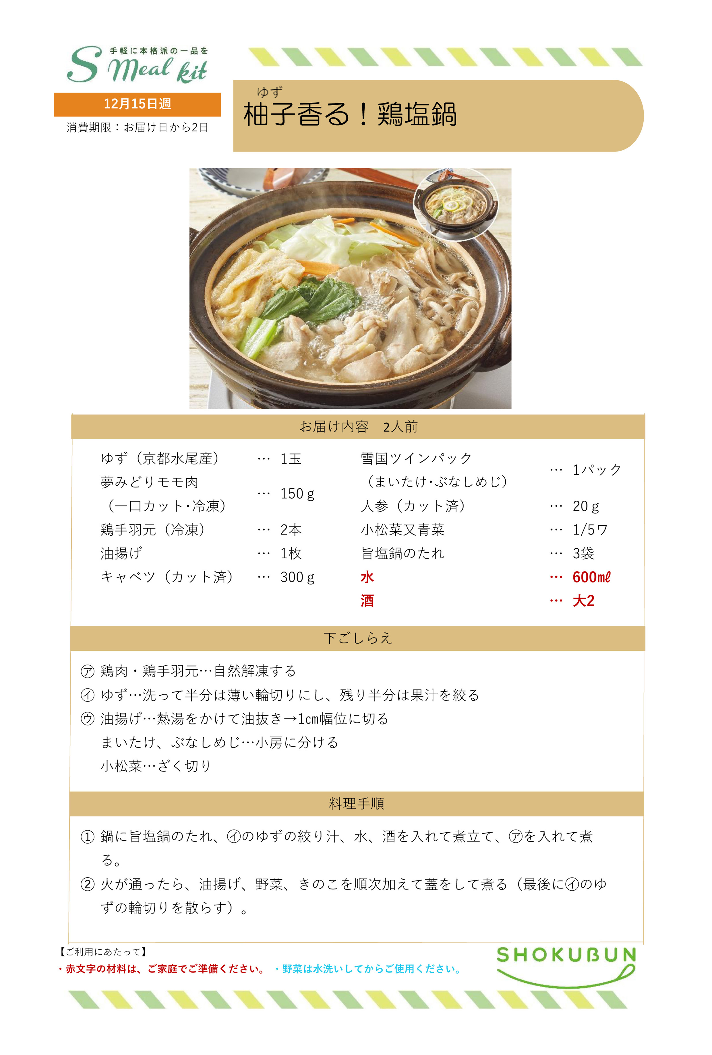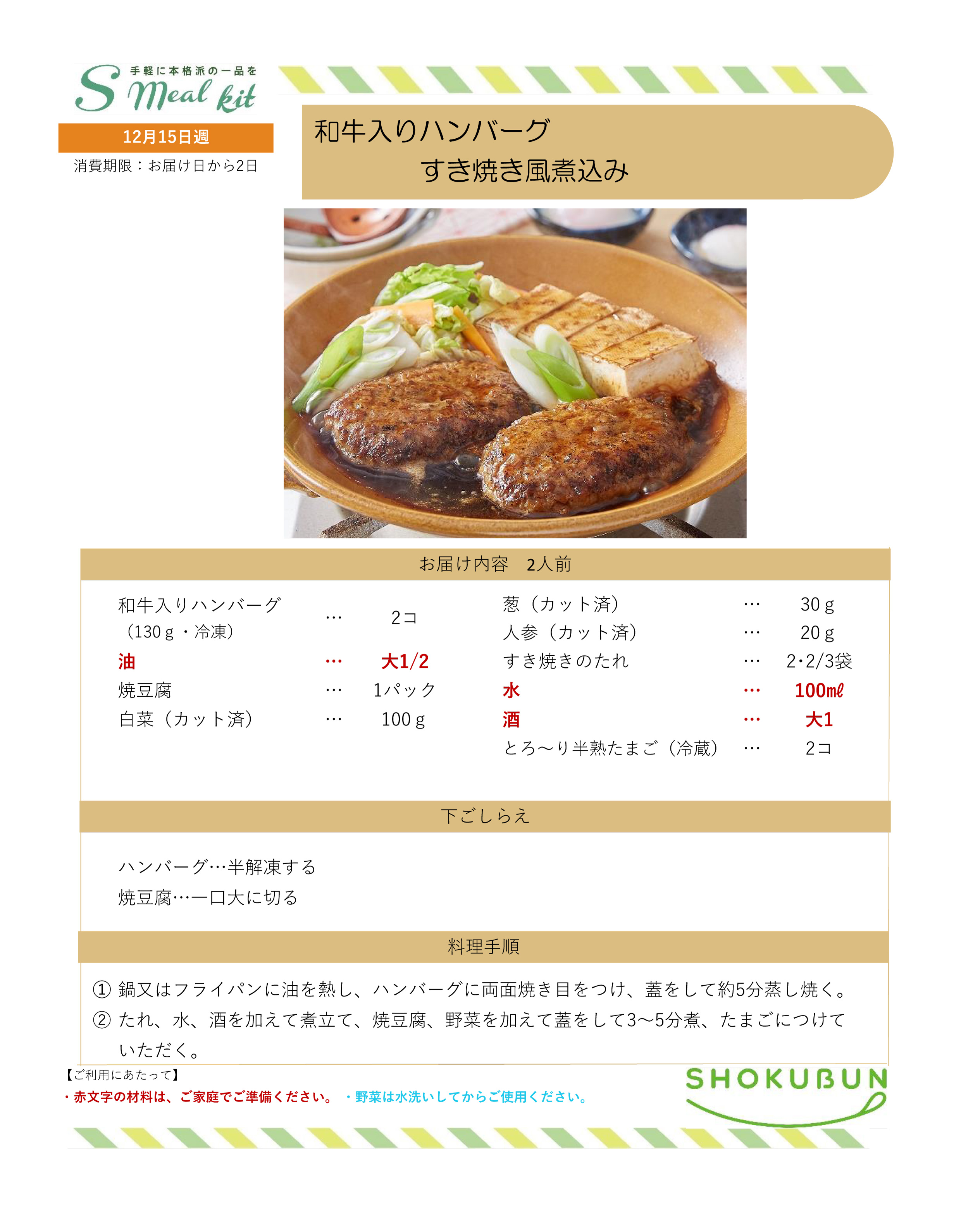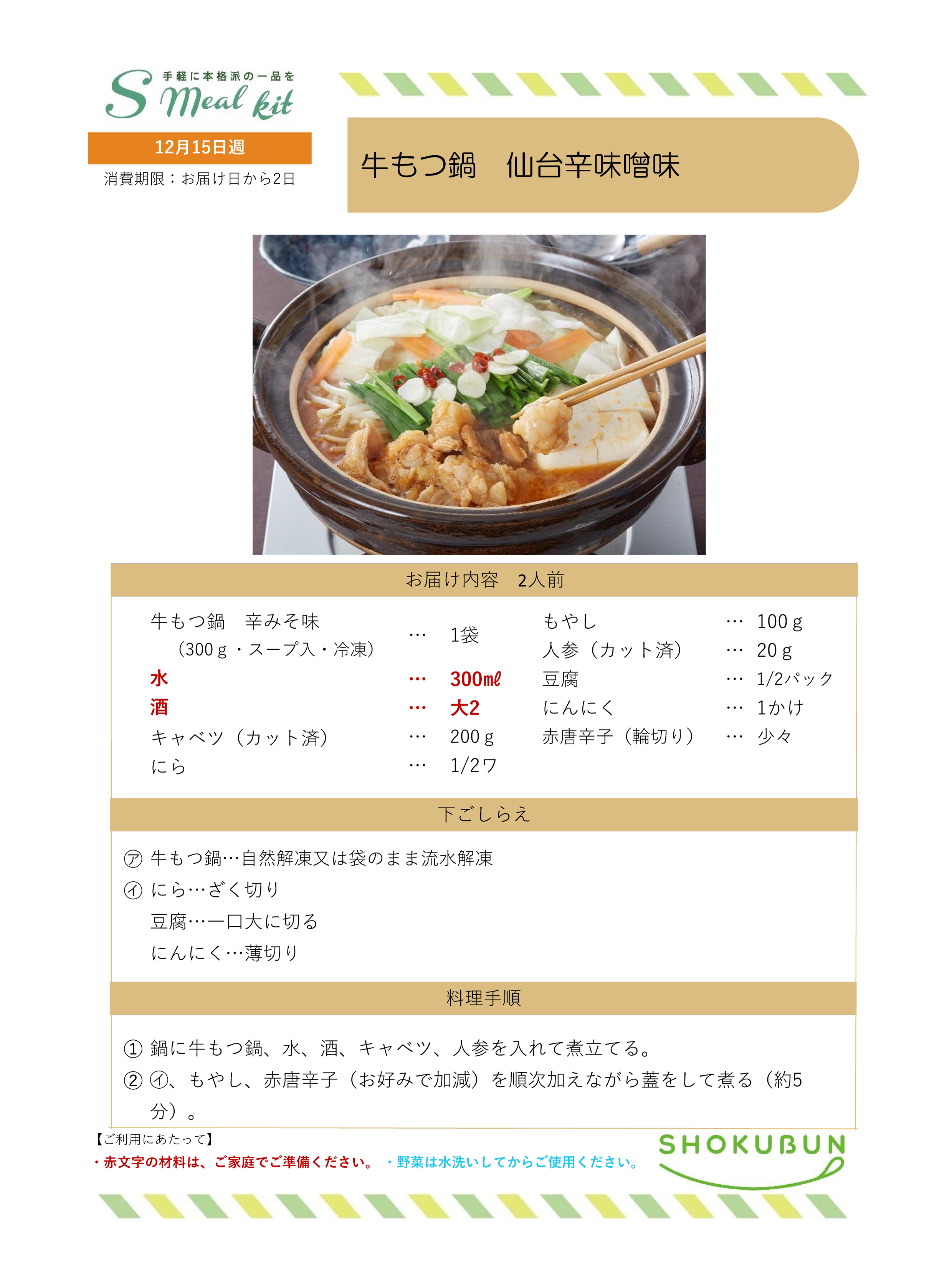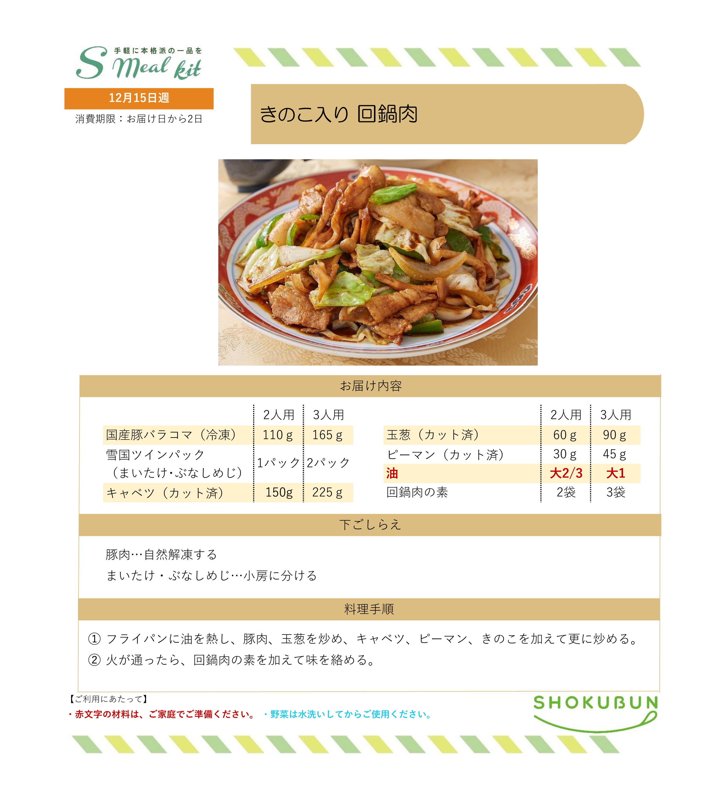 12/15週 Sミールキット・副菜プラス 作り方