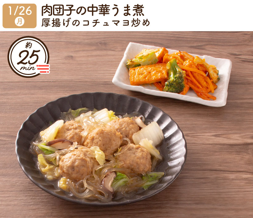 2026/1/26(月) 1week『肉団子の中華うま煮・厚揚げのコチュマヨ炒め』
