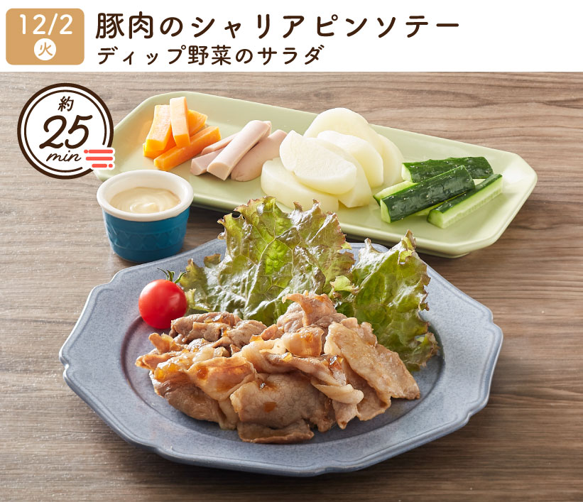 2025/12/2(火) 1week『豚肉のシャリアピンソテー・ディップ野菜のサラダ』
