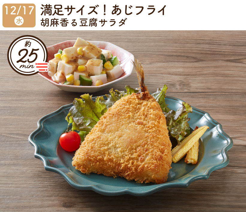 2025/12/17(水) 1week『満足サイズ!あじフライ・胡麻香る豆腐サラダ』