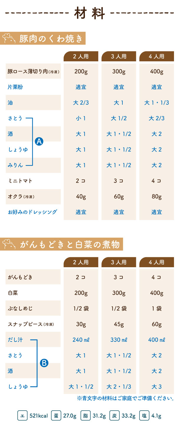 ※豚肉・・・自然解凍する 野菜・・・水洗いする