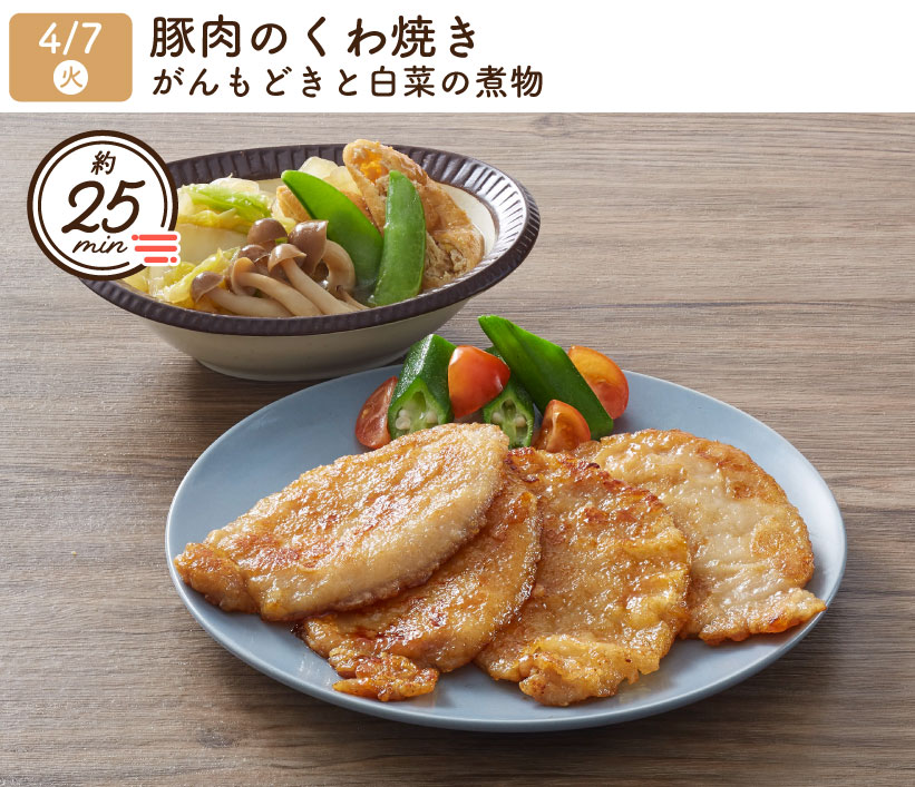 2026/4/7(火) 1week『豚肉のくわ焼き・がんもどきと白菜の煮物』