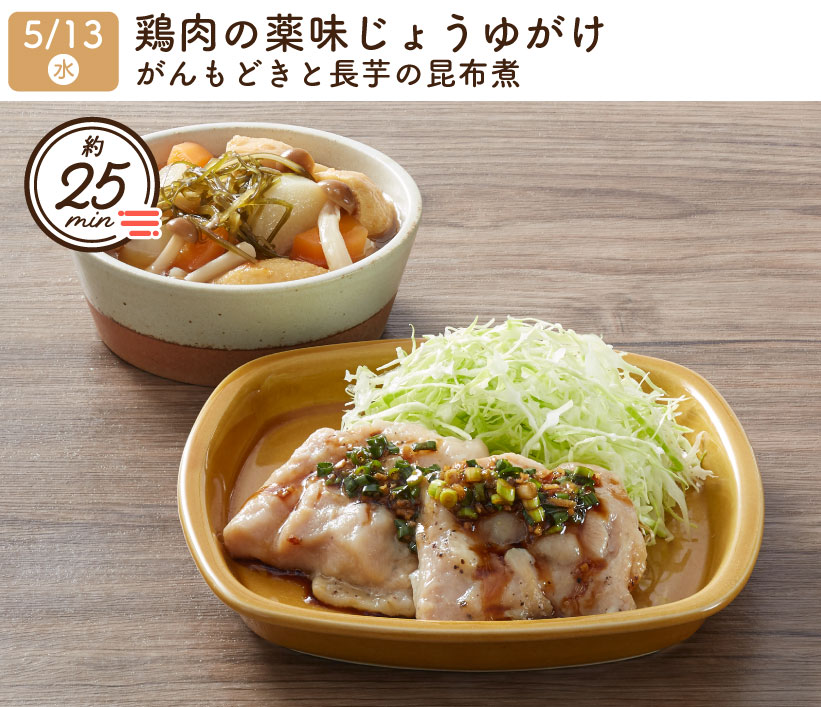 2026/5/13(水) 1week『鶏肉の薬味じょうゆがけ・がんもどきと長芋の昆布煮』