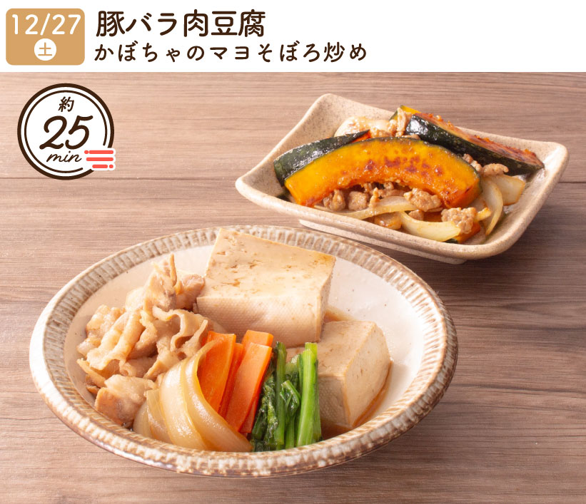 2025/12/27(土) 1week『豚バラ肉豆腐・かぼちゃのマヨそぼろ炒め』