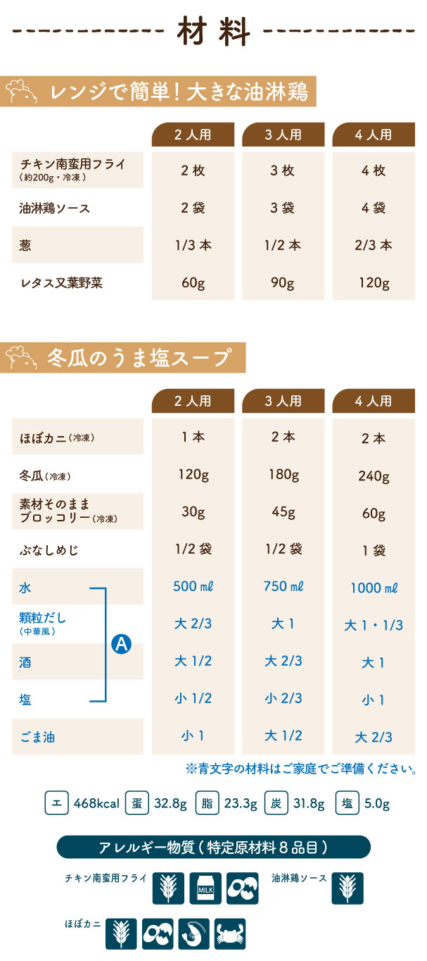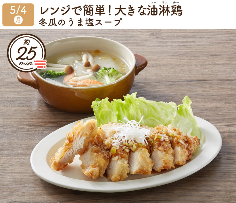 2026/5/4(月) 1week『レンジで簡単!大きな油淋鶏・冬瓜のうま塩スープ』