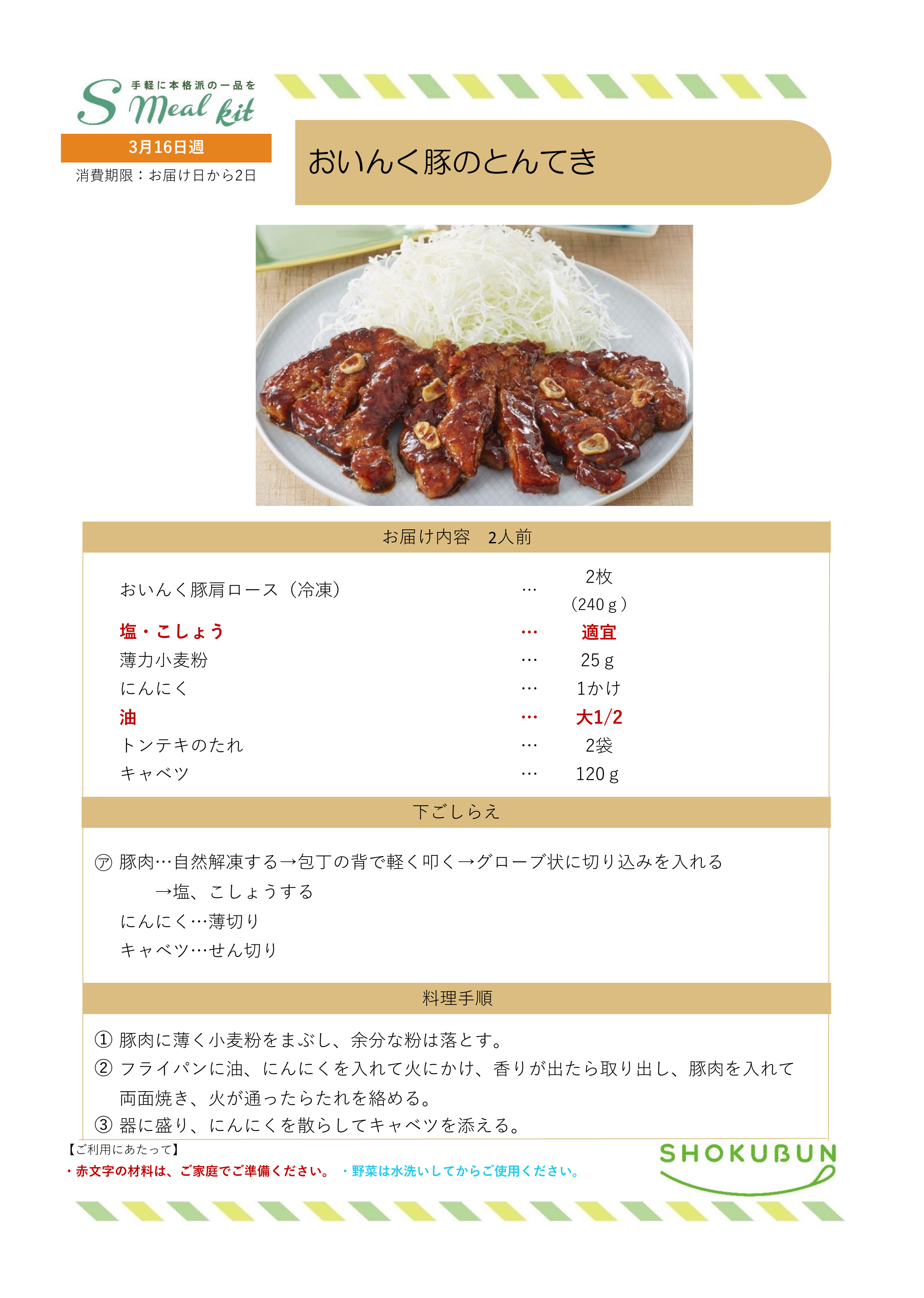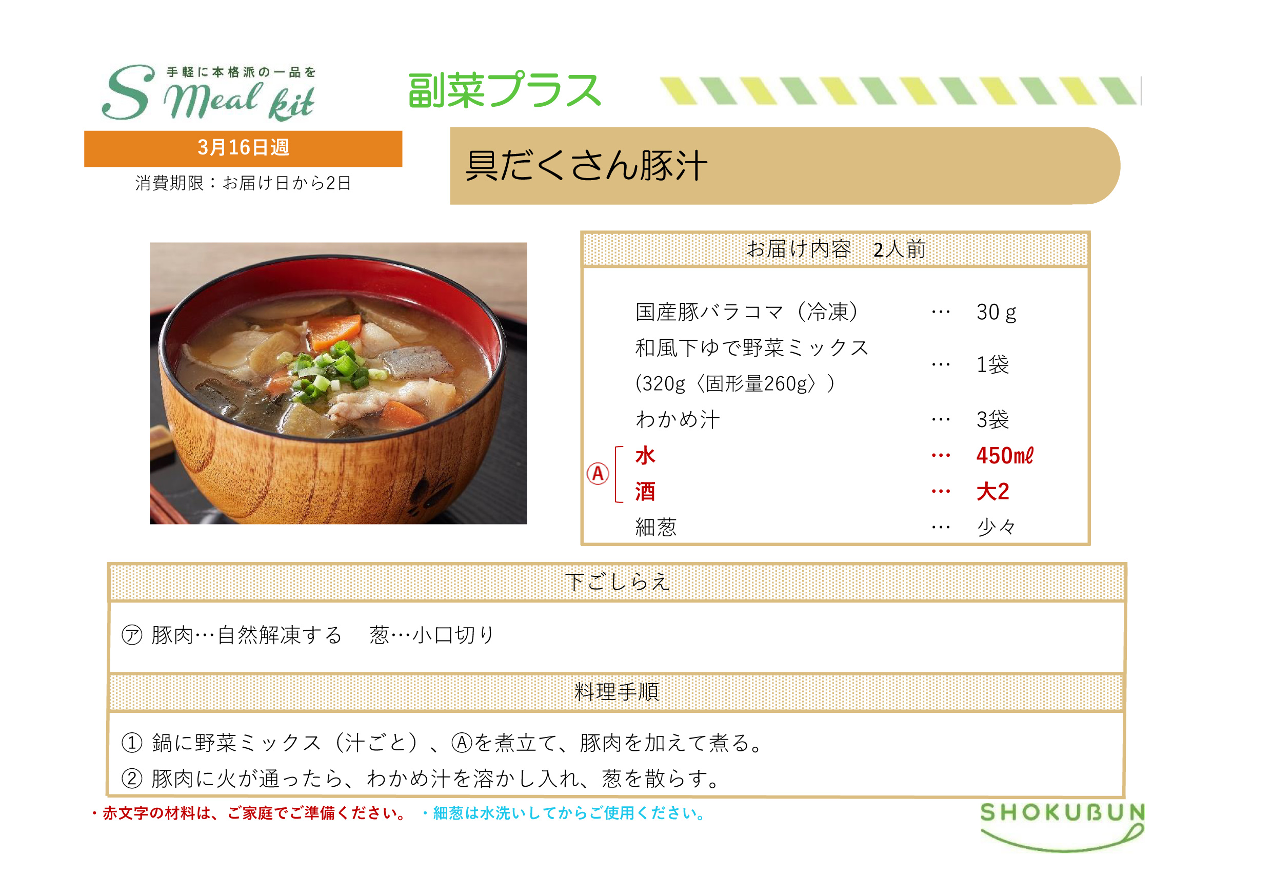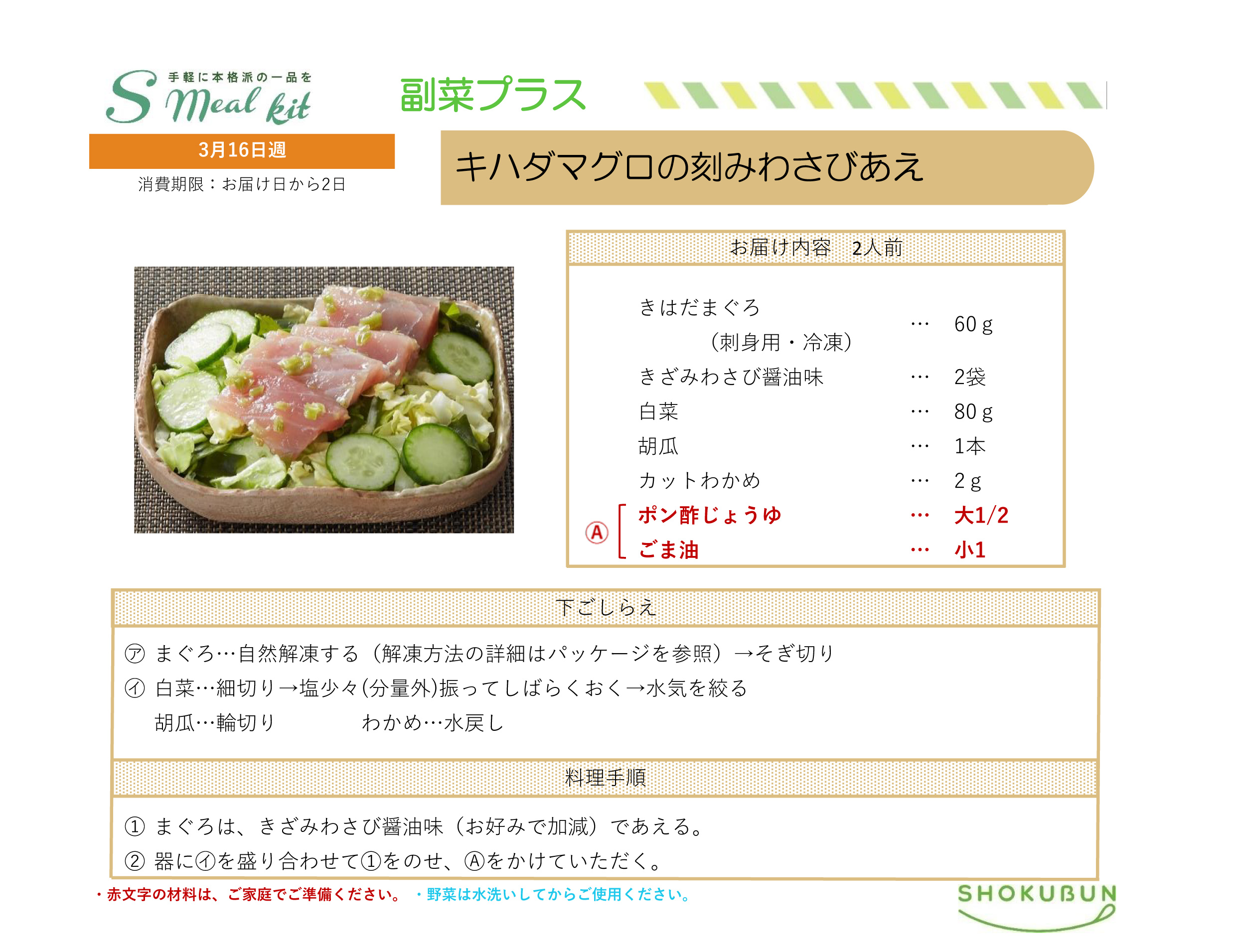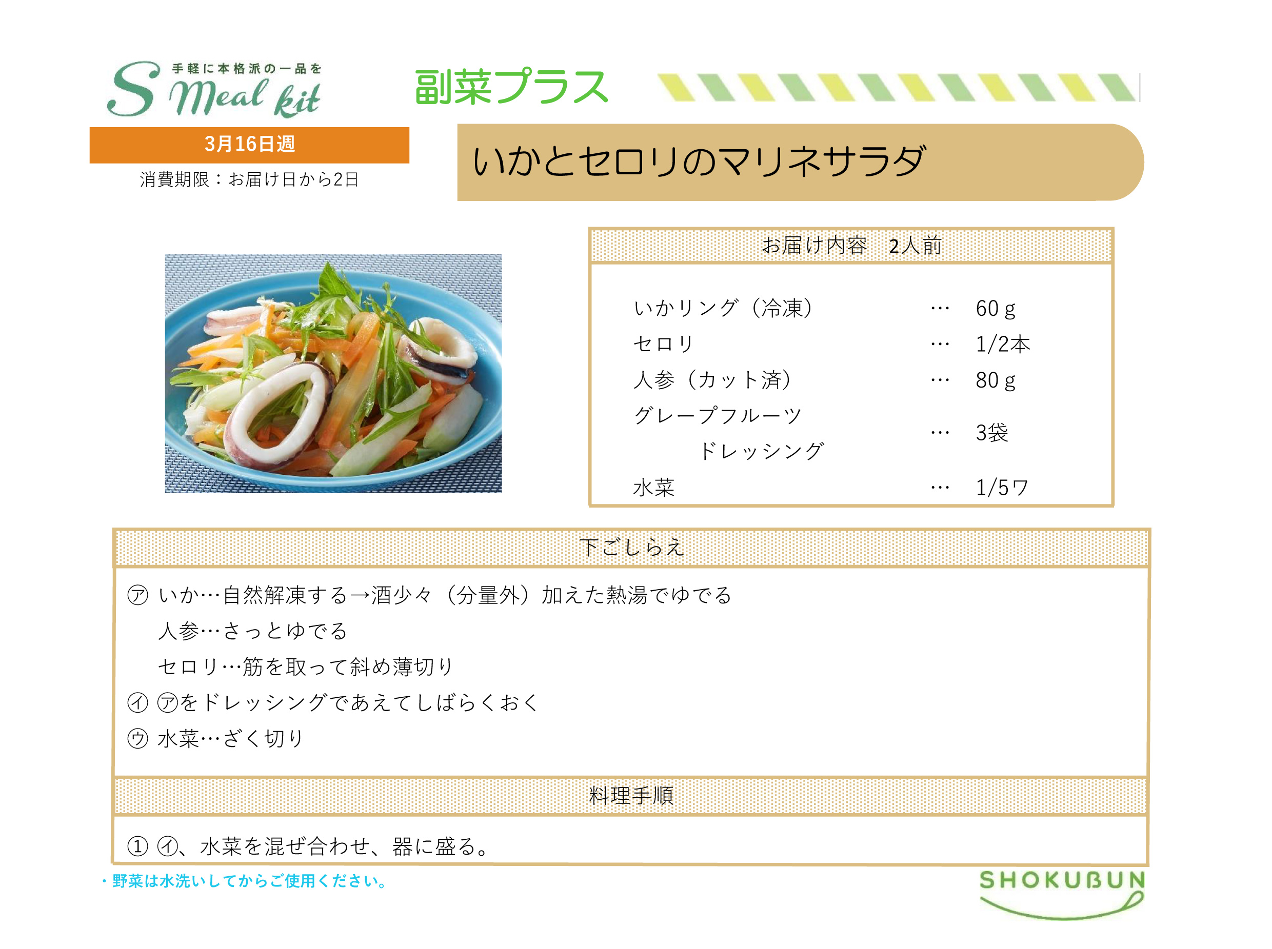 3/16週 Sミールキット・副菜プラス 作り方