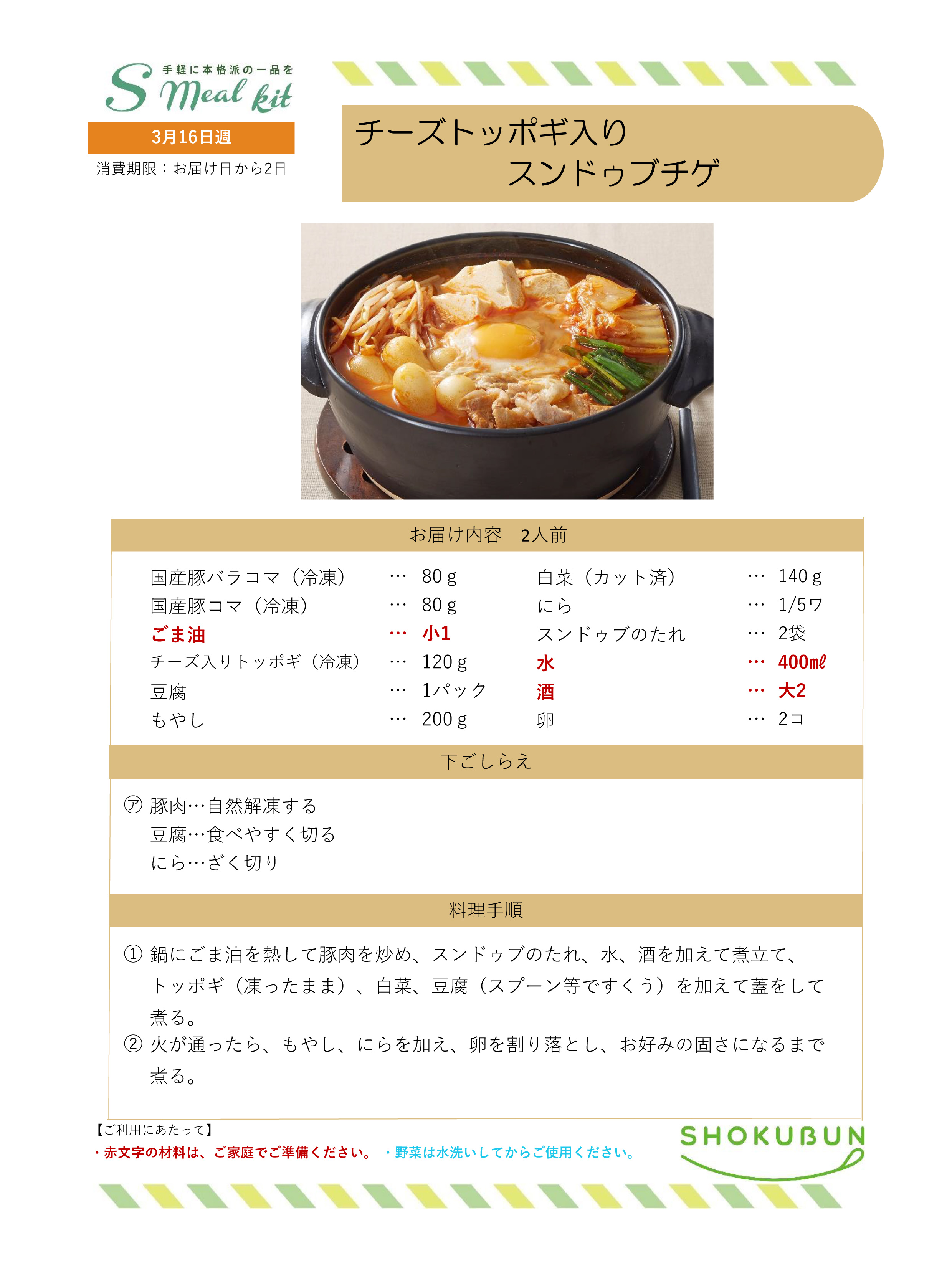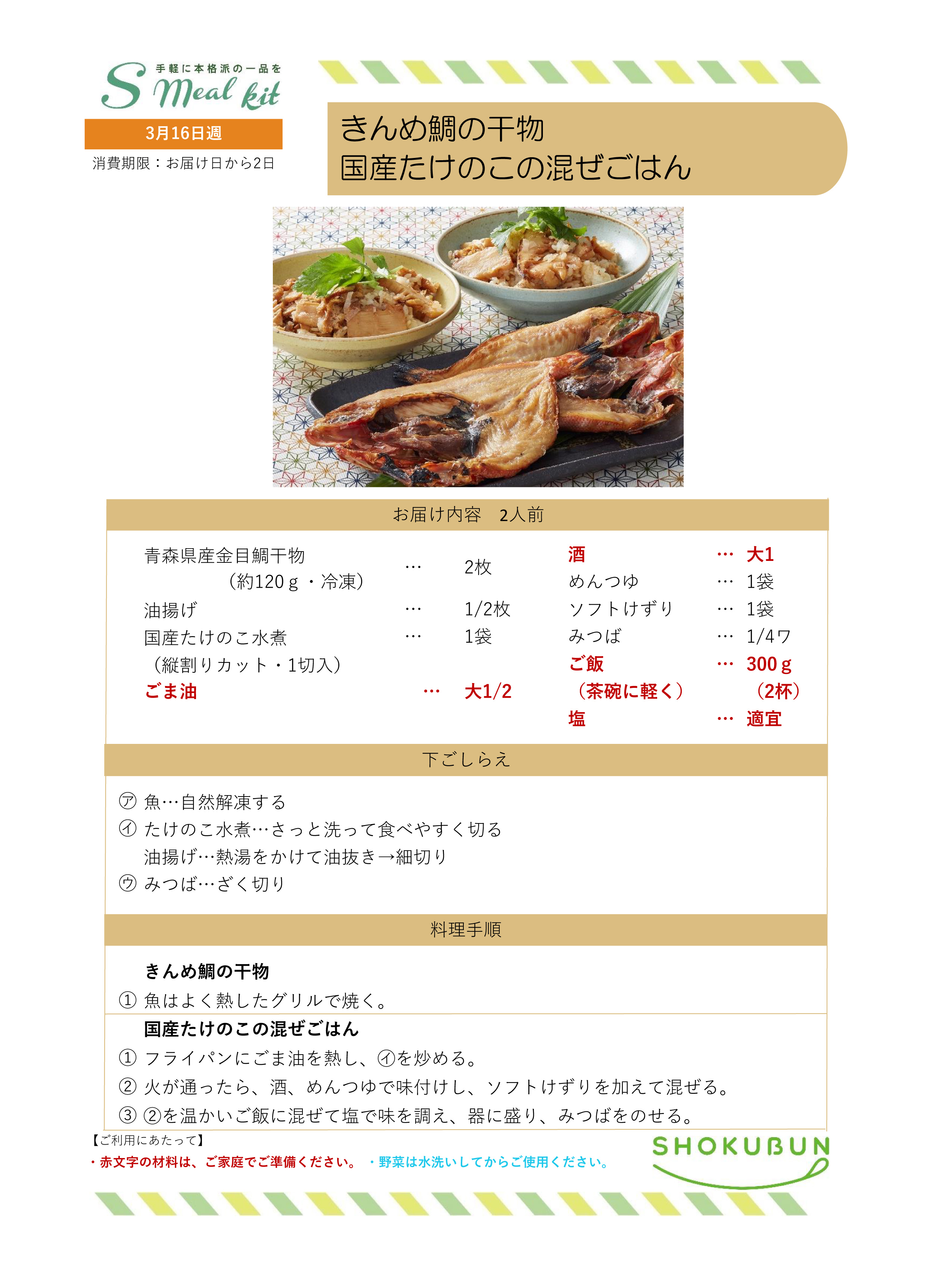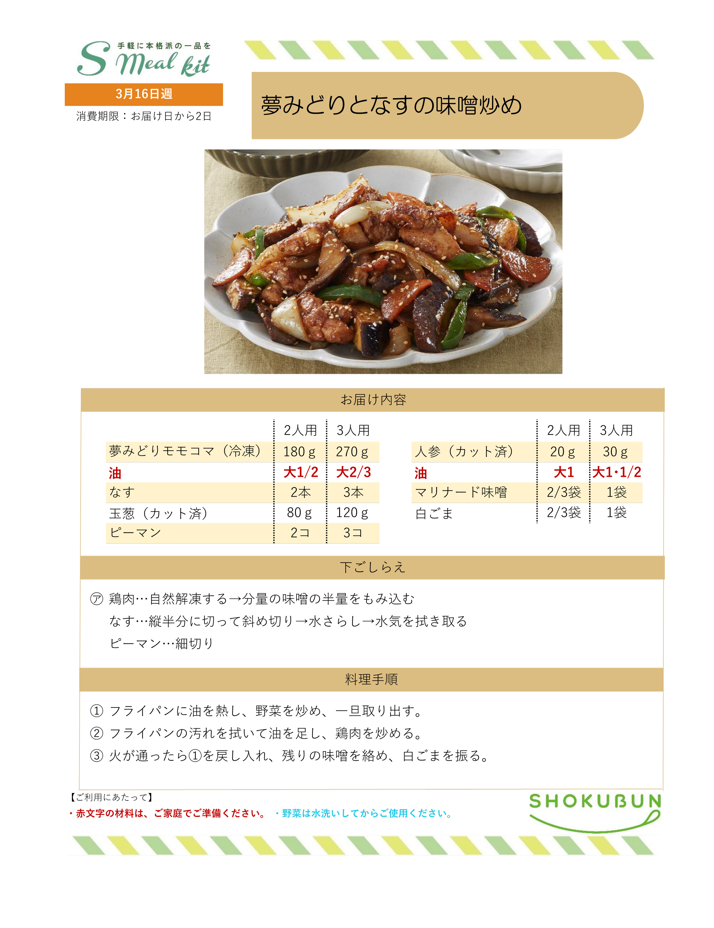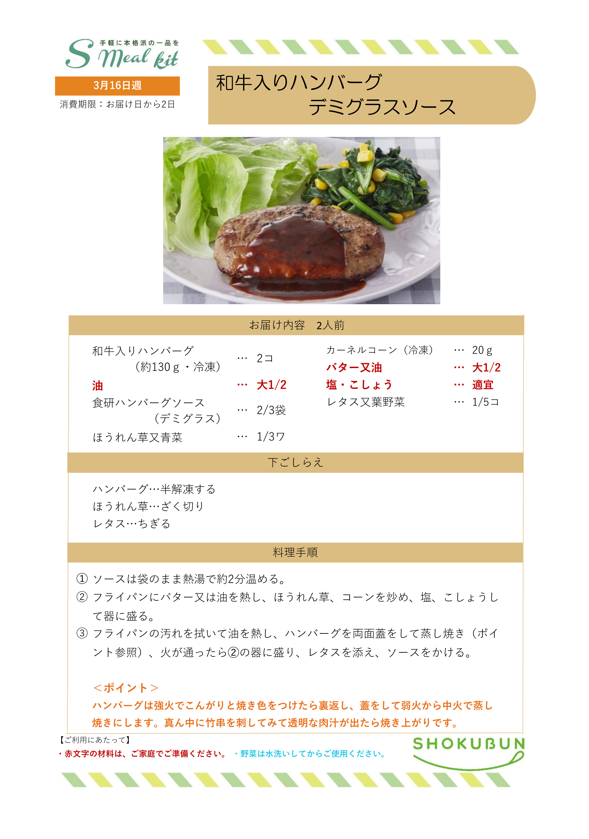 3/16週 Sミールキット・副菜プラス 作り方