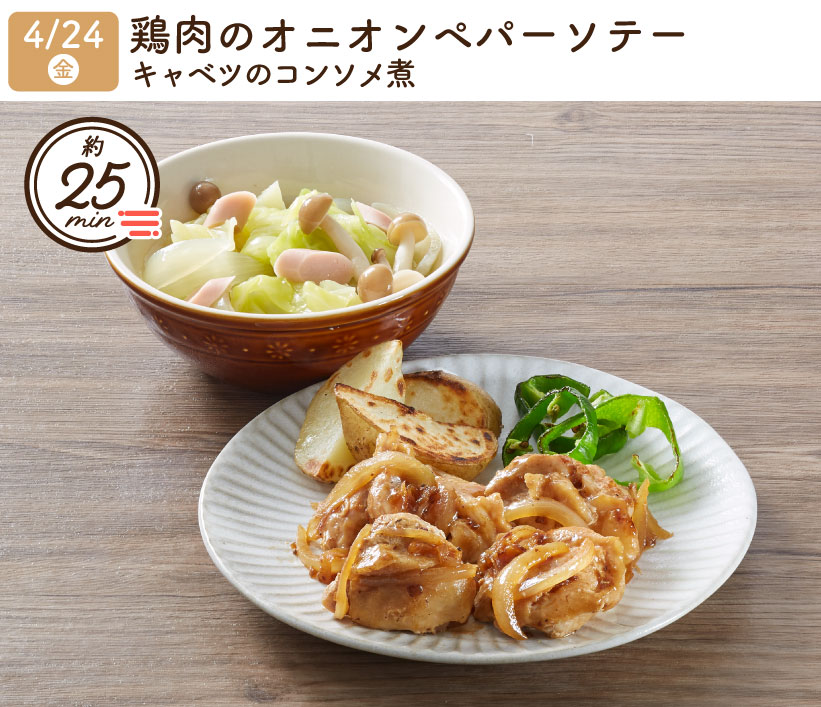 2026/4/24(金) 1week『鶏肉のオニオンペパーソテー・キャベツのコンソメ煮』