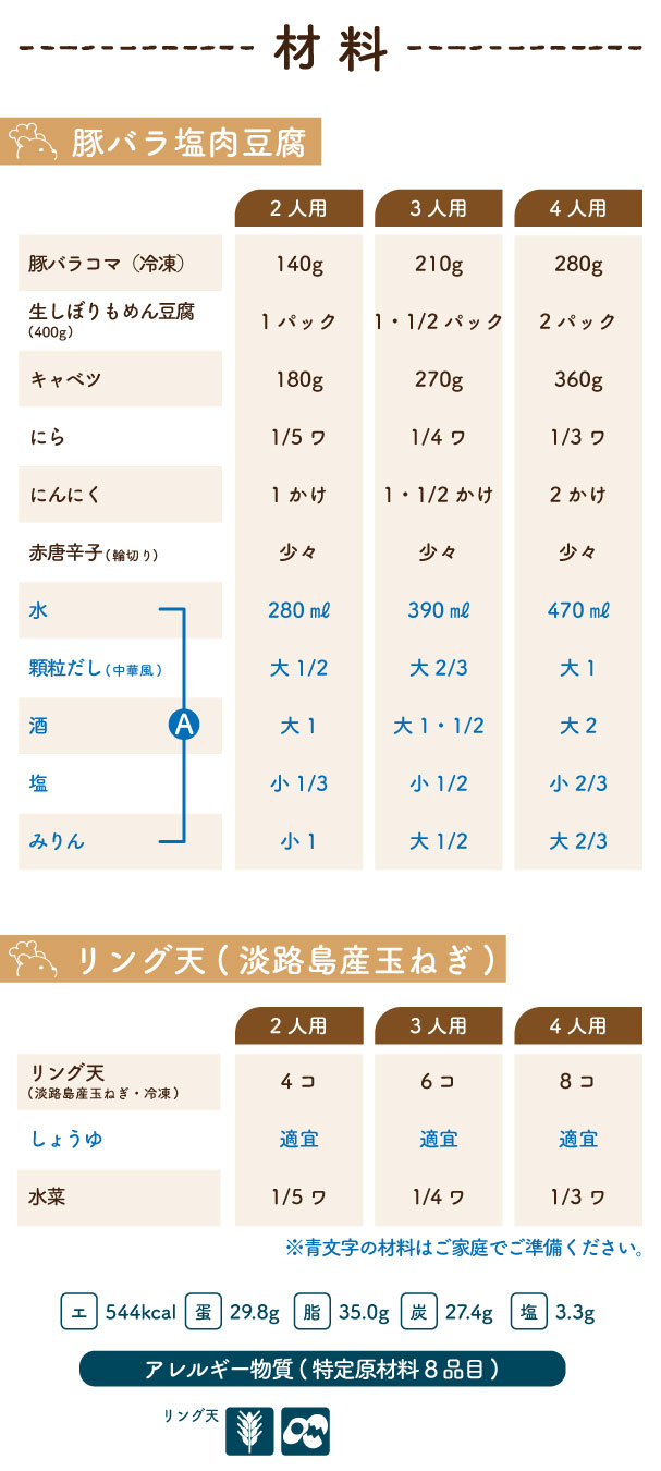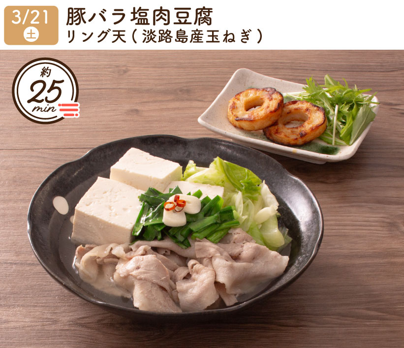 2026/3/21(土) 1week『豚バラ塩肉豆腐・リング天(淡路島産玉ねぎ)』
