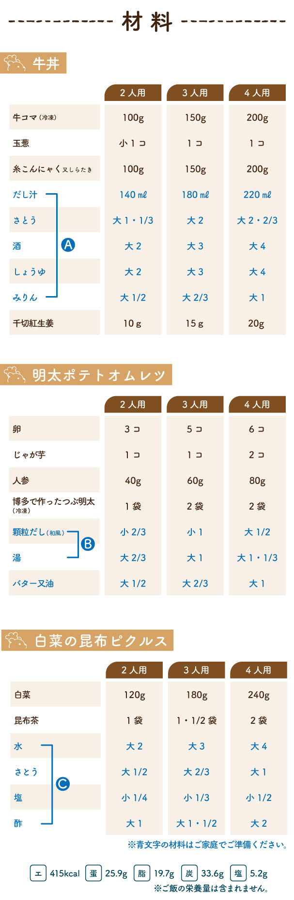 2025/12/16(火) 1week『牛丼・明太ポテトオムレツ・白菜の昆布ピクルス』