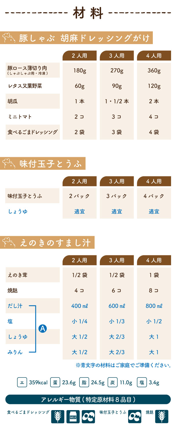 味付玉子とうふ(冷蔵)・・・鶏卵(国産)、食塩、蛋白加水分解物、澱粉分解物、カツオエキス、昆布エキス、酵母エキス/ピロリン酸K、調味料(アミノ酸等)、(一部に卵・さばを含む)