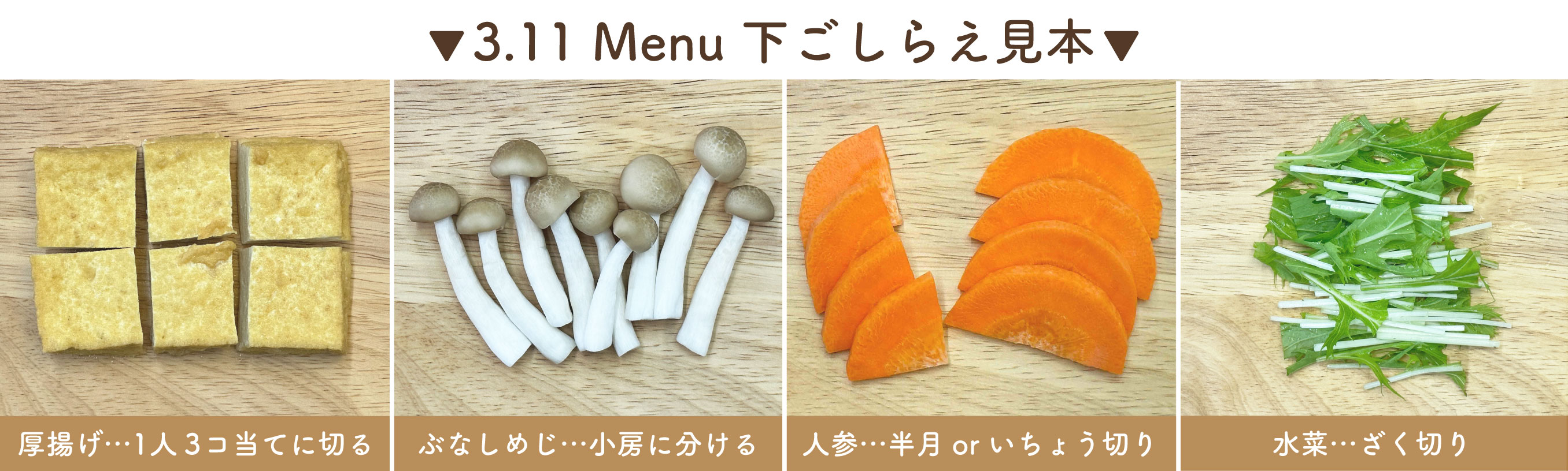 ㋐厚揚げ・・・1人3コ当てに切る
