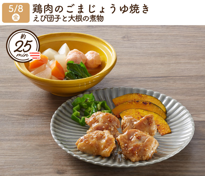 2026/5/8(金) 1week『鶏肉のごまじょうゆ焼き・えび団子と大根の煮物』