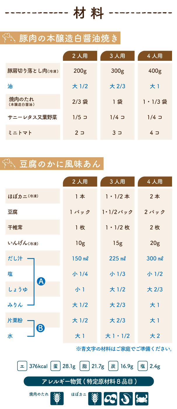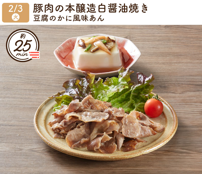 2026/2/3(火) 1week『豚肉の本醸造白醤油焼き・豆腐のかに風味あん』