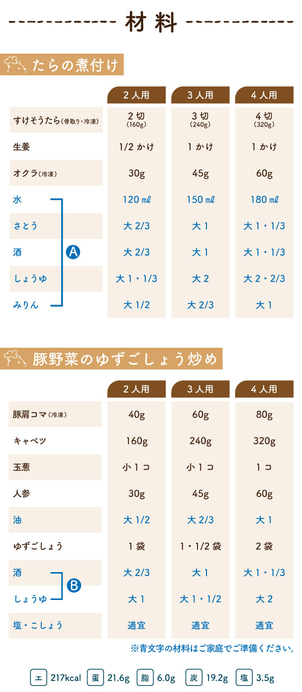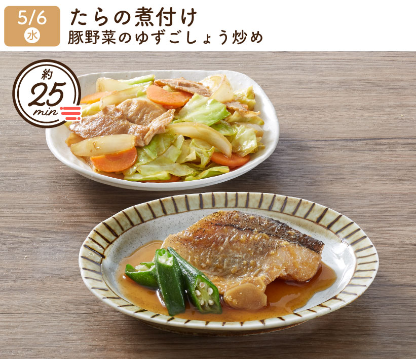 2026/5/6(水) 1week『たらの煮付け・豚野菜のゆずごしょう炒め』