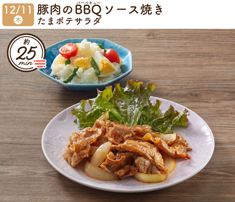 2025/12/11(木) 1week『豚肉のBBQソース焼き・たまポテサラダ』