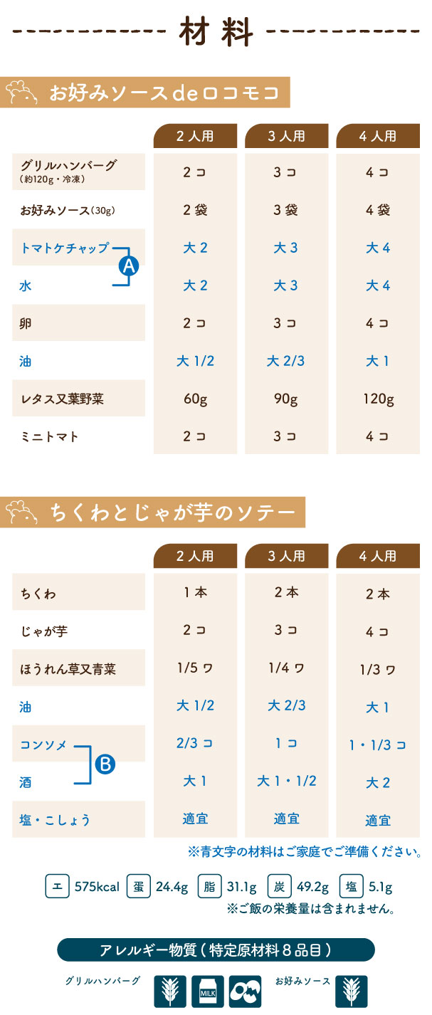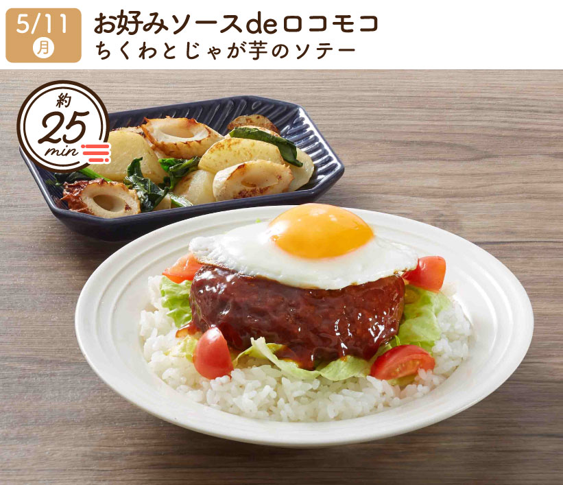 2026/5/11(月) 1week『お好みソースdeロコモコ・ちくわとじゃが芋のソテー』