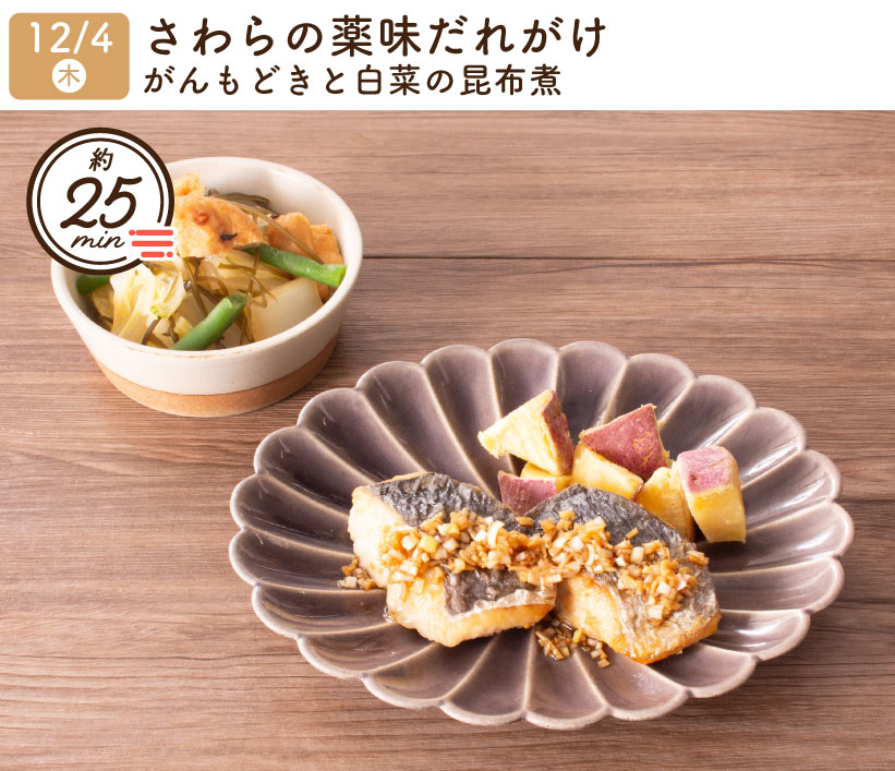 2025/12/4(木) 1week『さわらの薬味だれがけ・がんもどきと白菜の昆布煮』