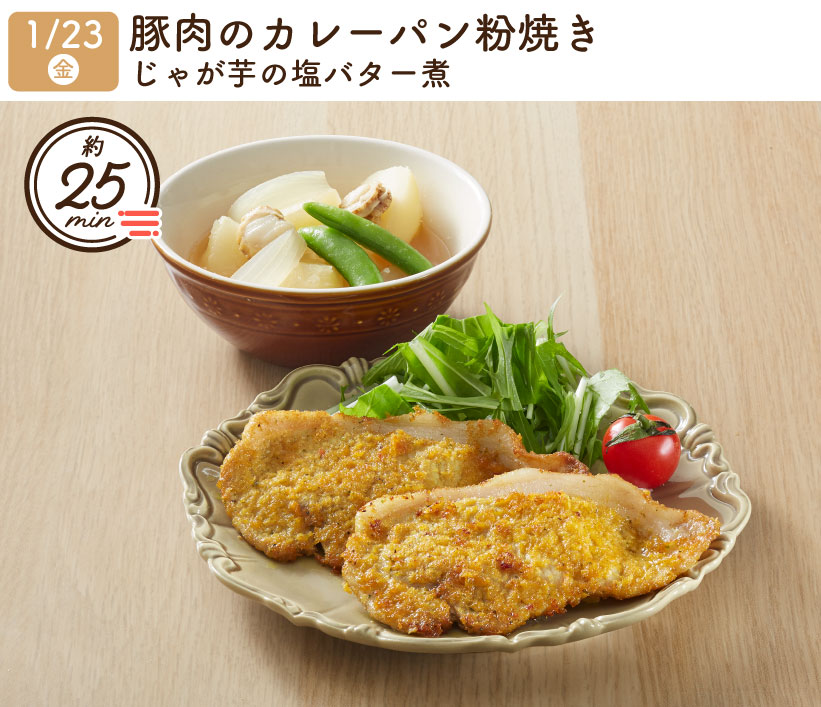 2026/1/23(金) 1week『豚肉のカレーパン粉焼き・じゃが芋の塩バター煮』