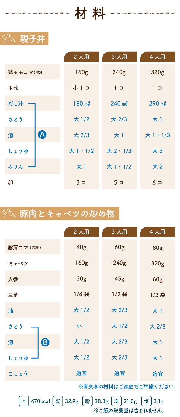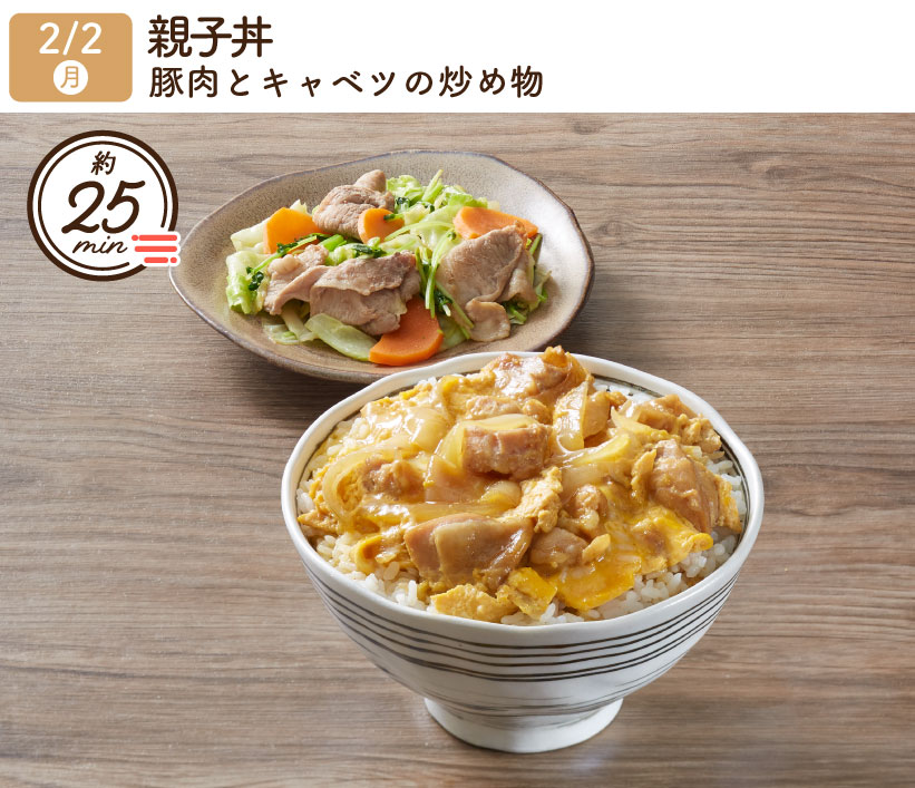 2026/2/2(月) 1week『親子丼・豚肉とキャベツの炒め物』