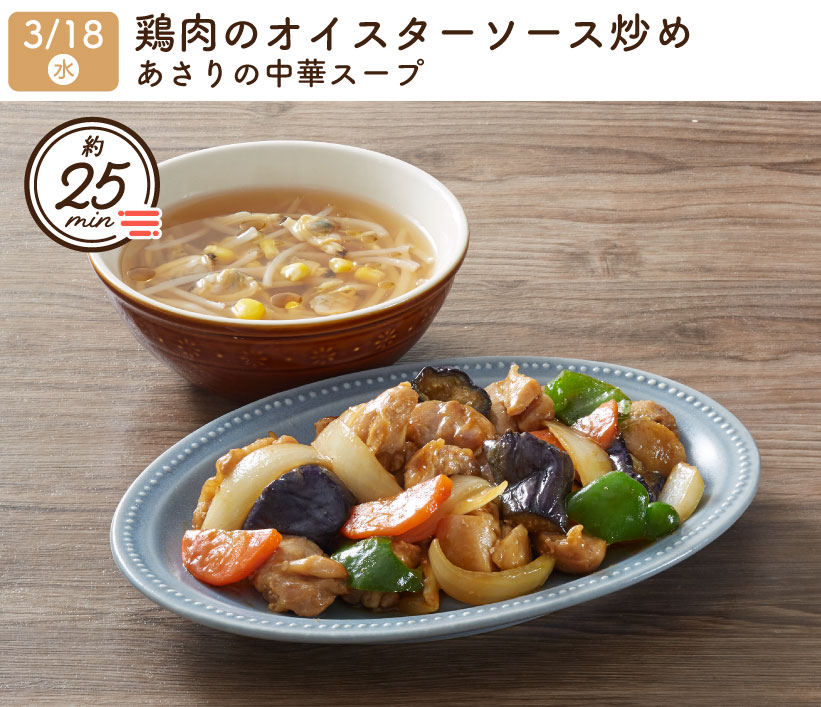 2026/3/18(水) 1week『鶏肉のオイスターソース炒め・あさりの中華スープ』