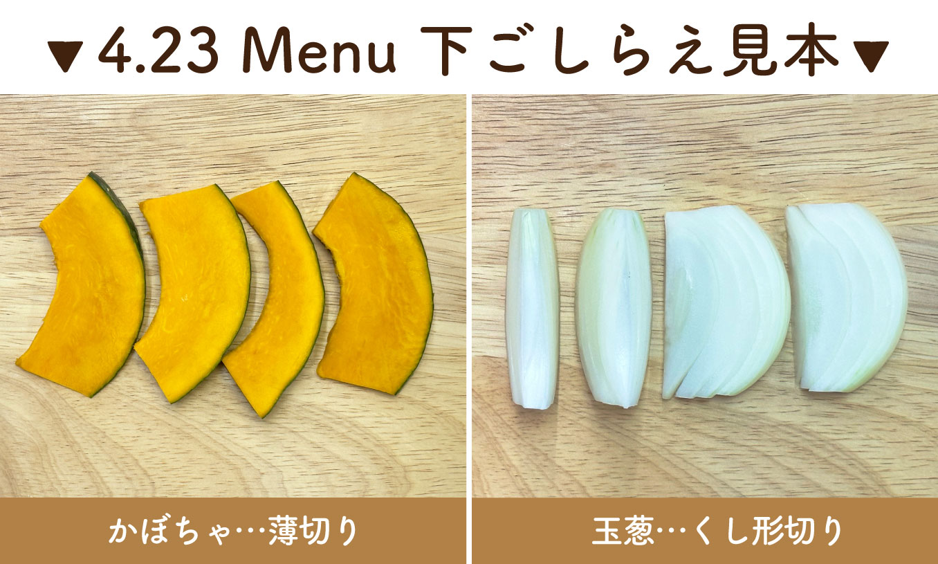 ㋑かぼちゃ・・・薄切り→固めにゆでる
