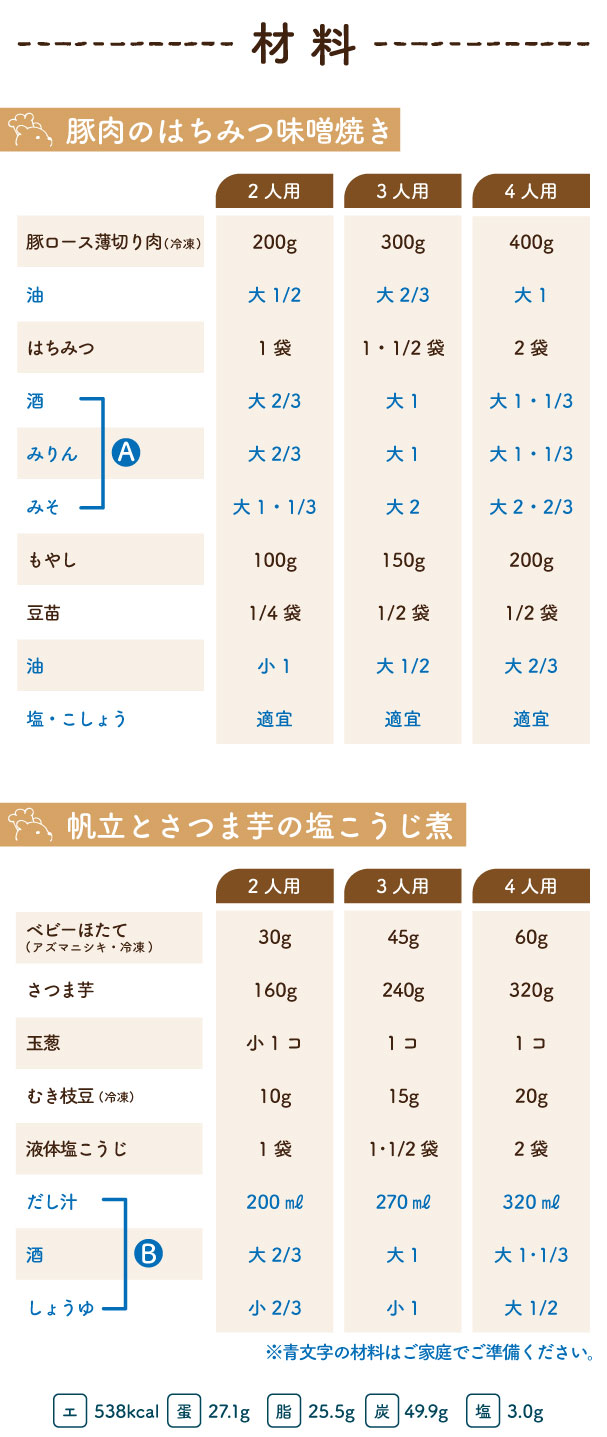 2025/12/20(土) 1week『豚肉のはちみつ味噌焼き・帆立とさつま芋の塩こうじ煮』