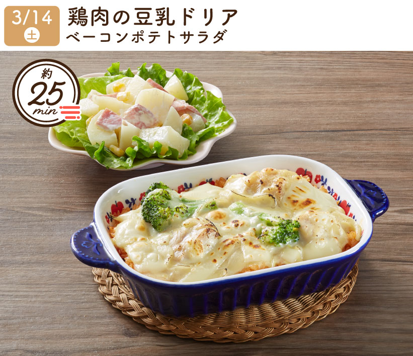 2026/3/14(土) 1week『鶏肉の豆乳ドリア・ベーコンポテトサラダ』