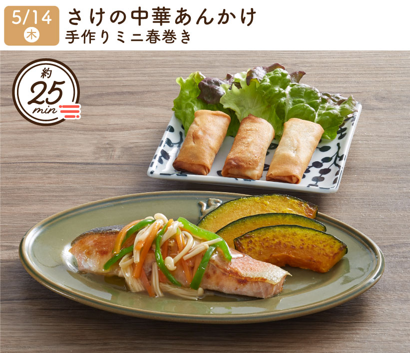 2026/5/14(木) 1week『さけの中華あんかけ・手作りミニ春巻き』
