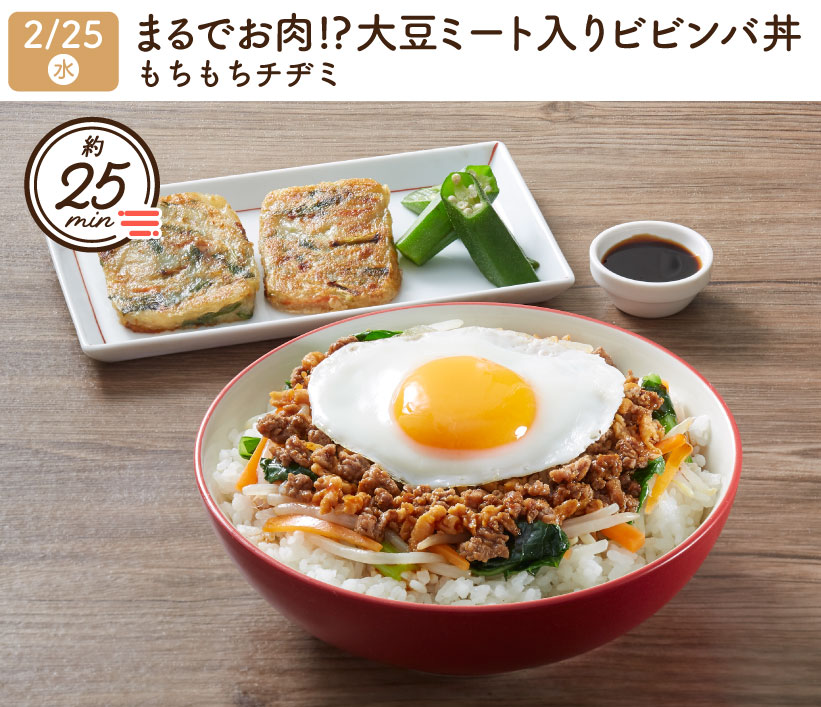 2026/2/25(水) 1week『まるでお肉!?大豆ミート入りビビンバ丼・もちもちチヂミ』